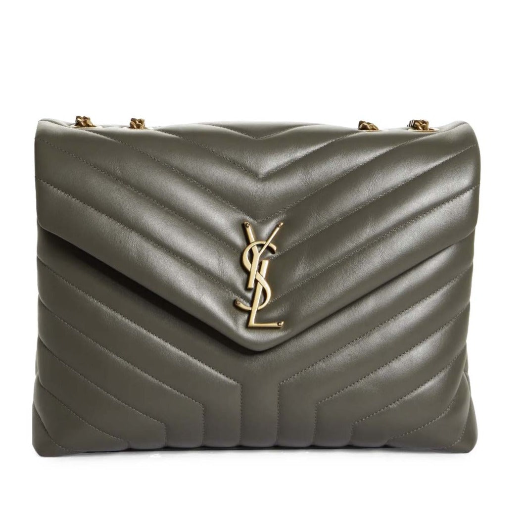 NEW SAINT LAURENT Calfskin Y Quilted Monogram Medium Loulou Chain Satchel Storm