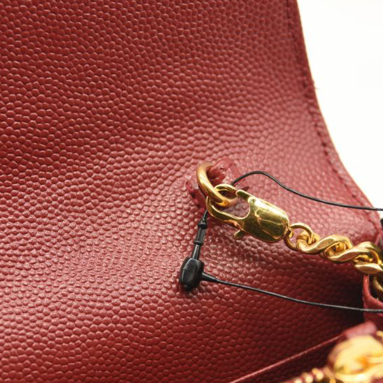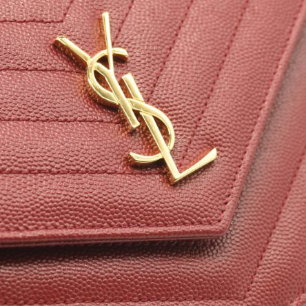 NEW SAINT LAURENT Grain De Poudre Matelasse Chevron Cassandre Envelope Chain Wallet Red