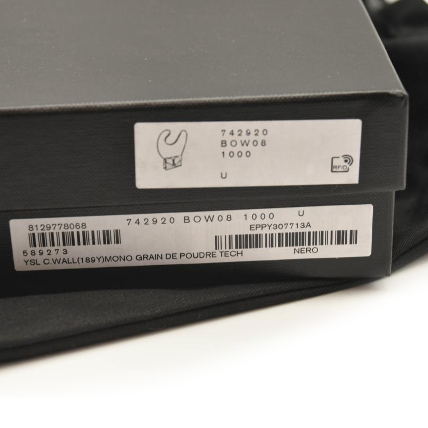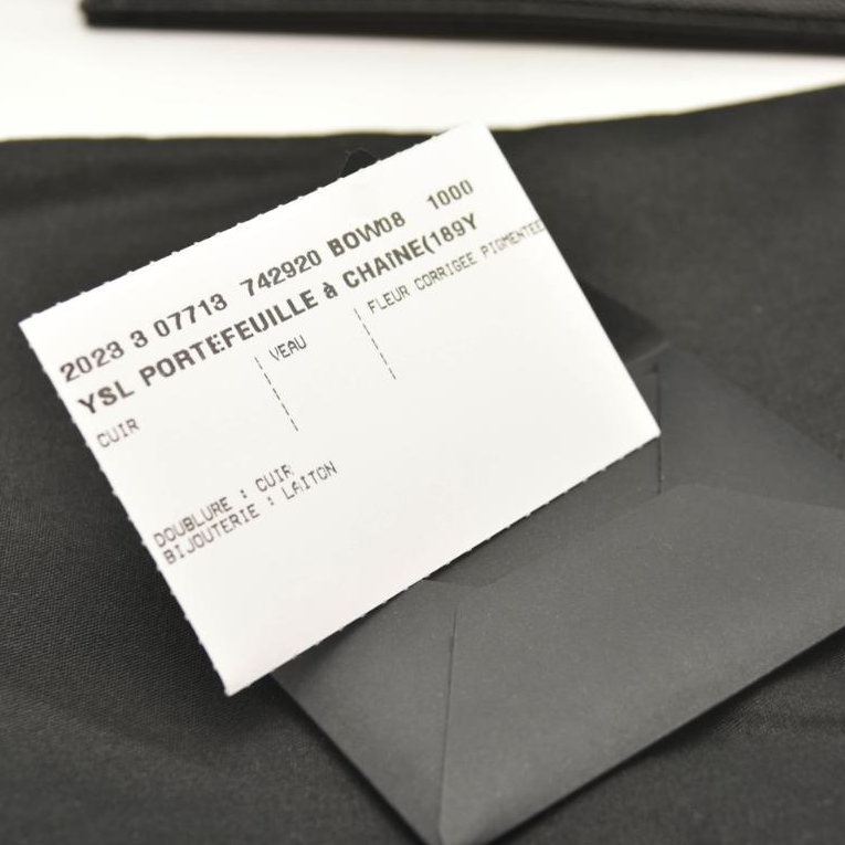 NEW SAINT LAURENT Grain De Poudre Matelasse Chevron Monogram Chain Wallet Black Noir