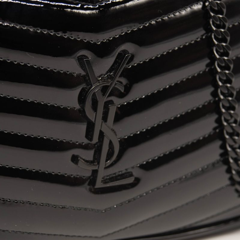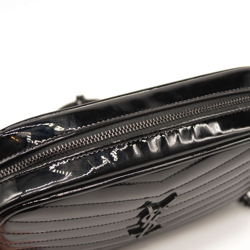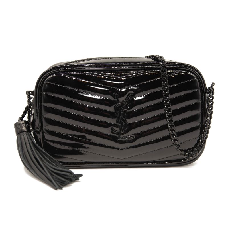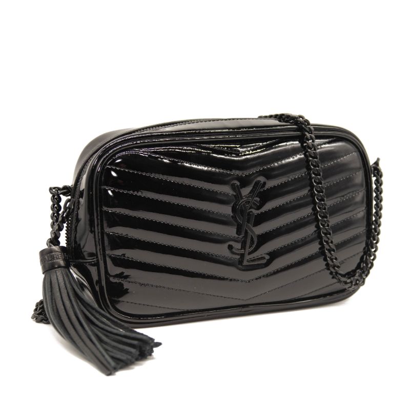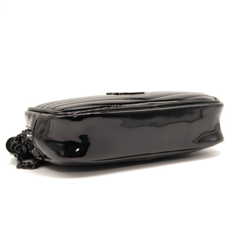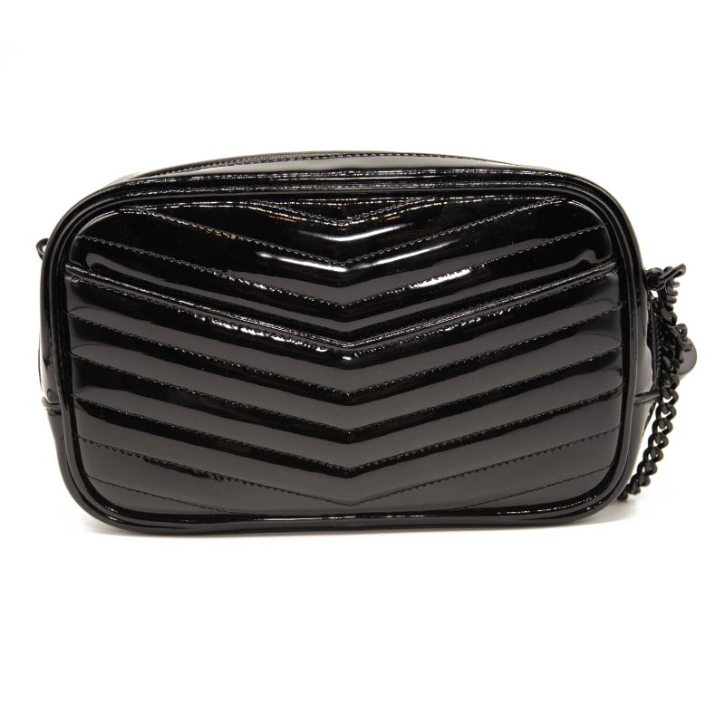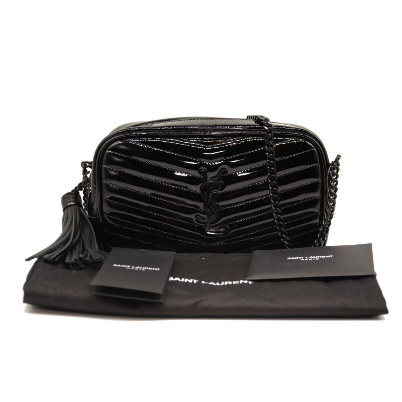 Saint Laurent Matelasse Monogram Mini Lou Camera Bag Black Patent