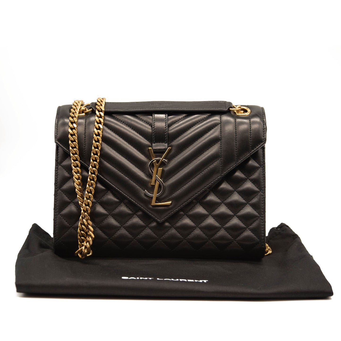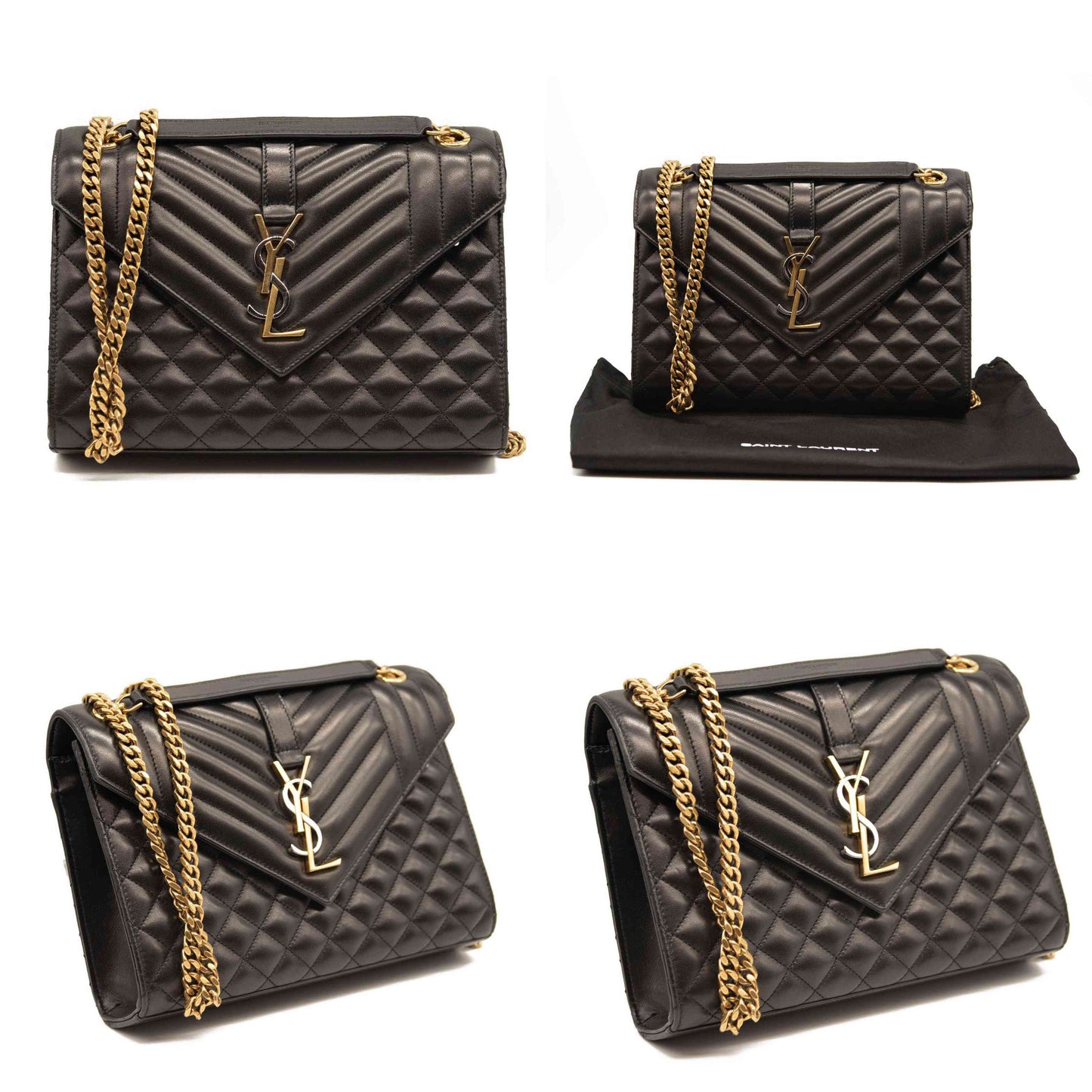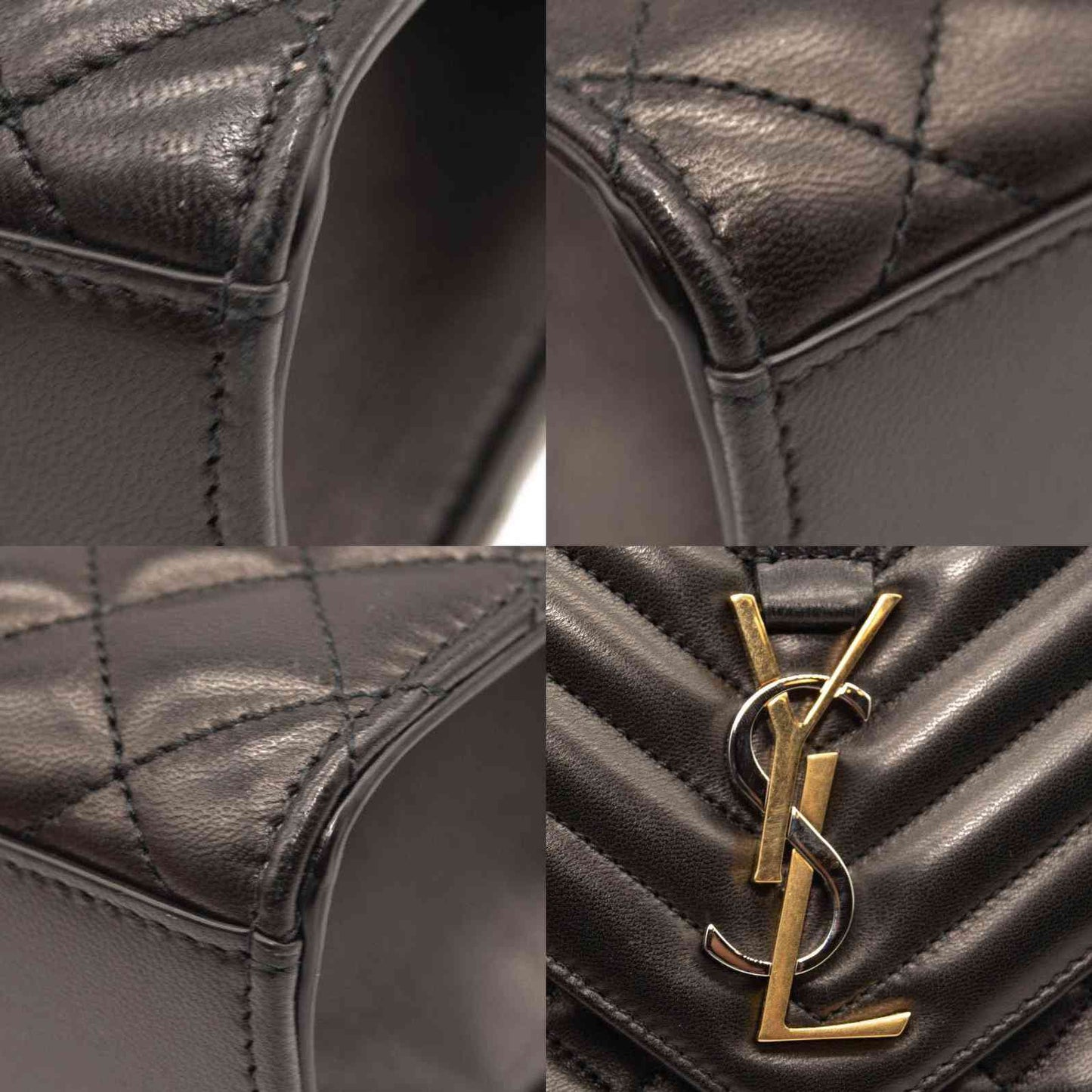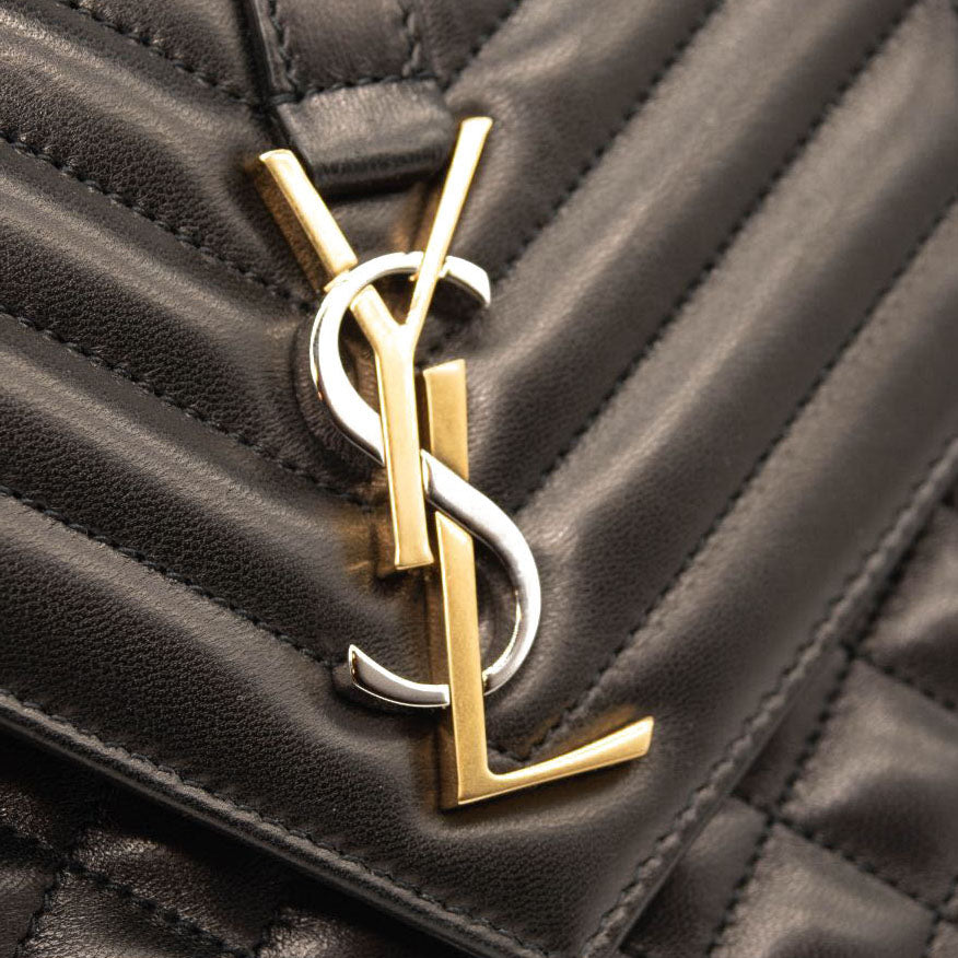 NEW Saint Laurent Smooth Mixed Matelasse Triquilt Medium Monogram Satchel Black