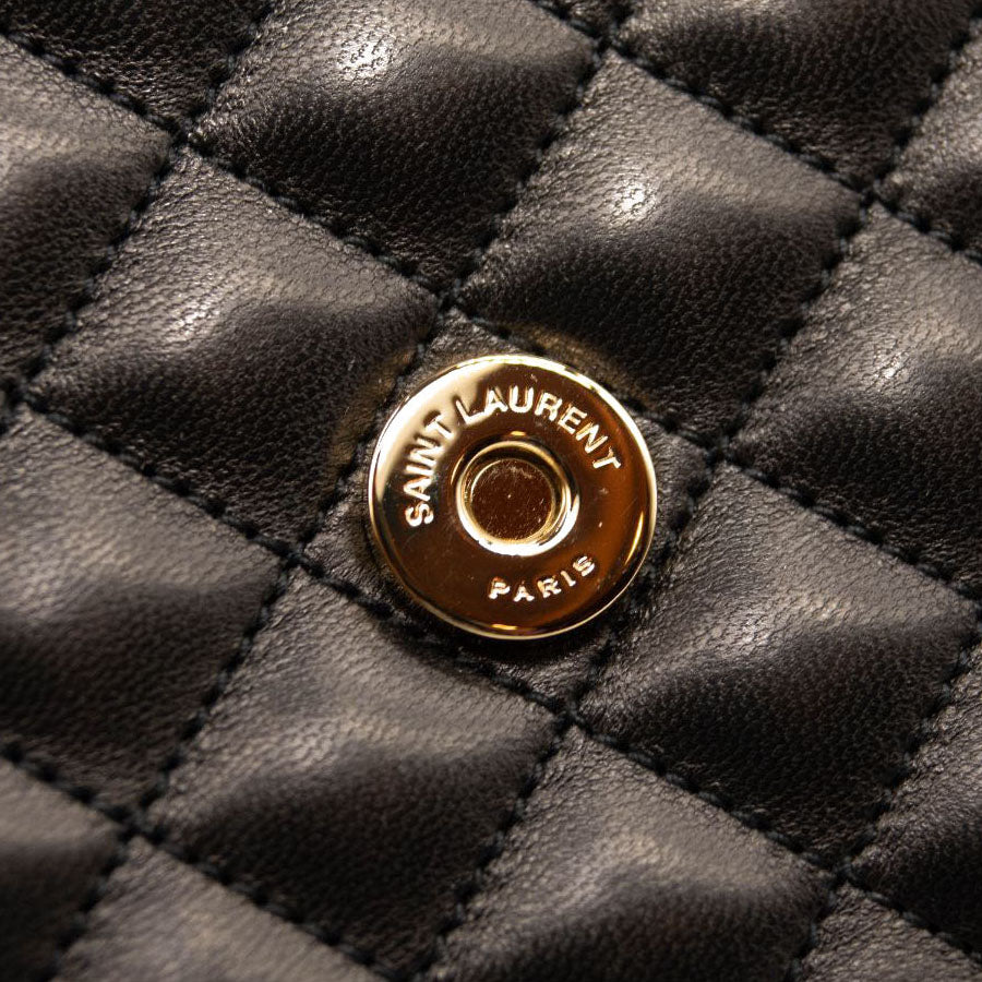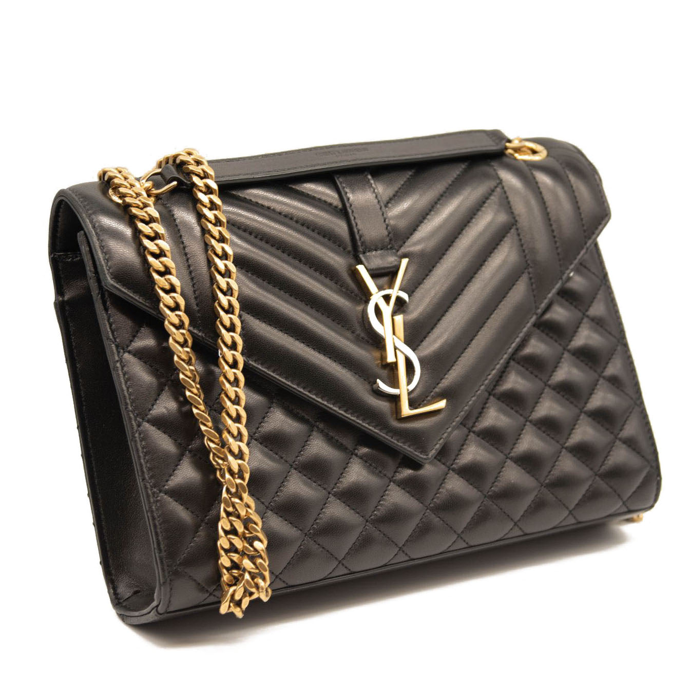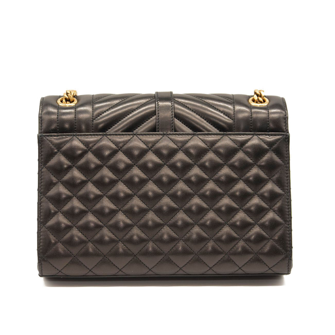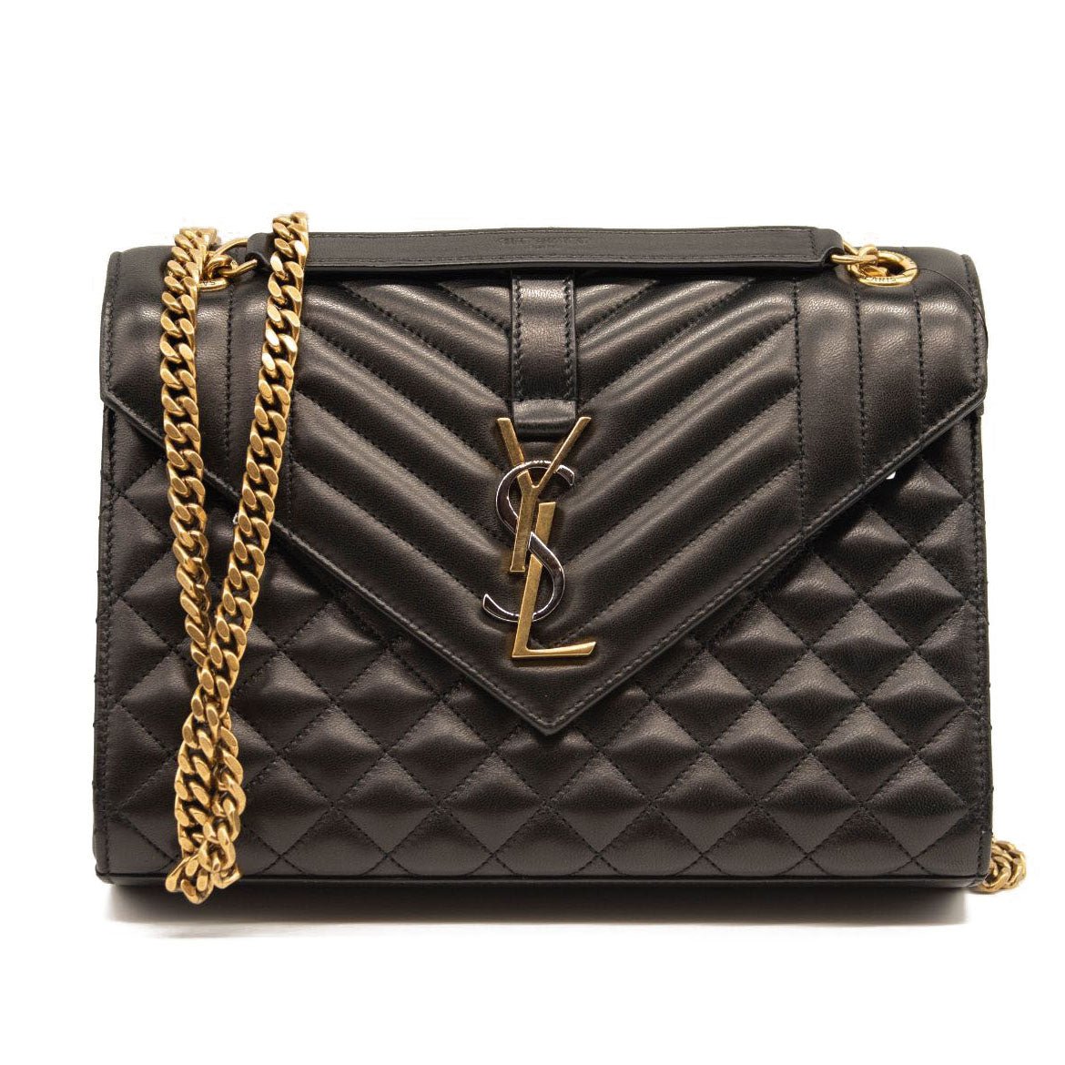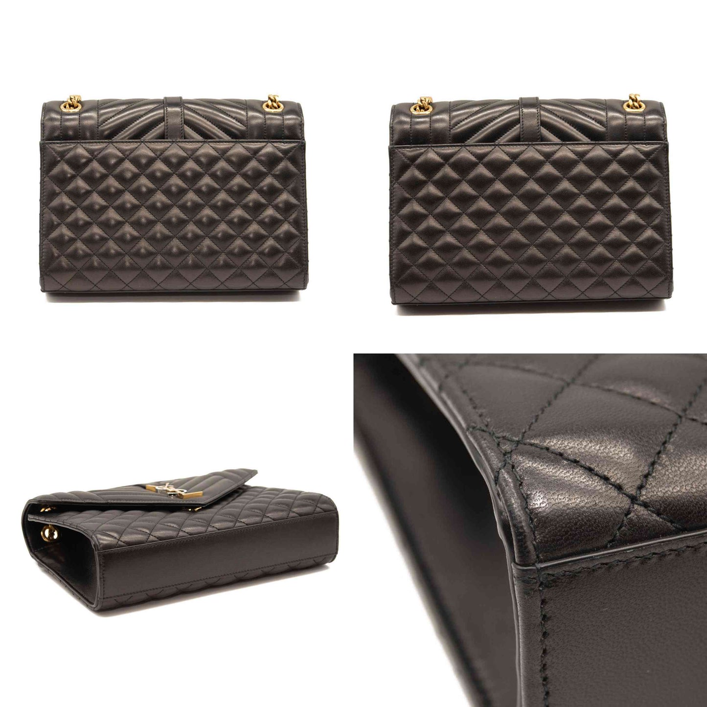 NEW Saint Laurent Smooth Mixed Matelasse Triquilt Medium Monogram Satchel Black