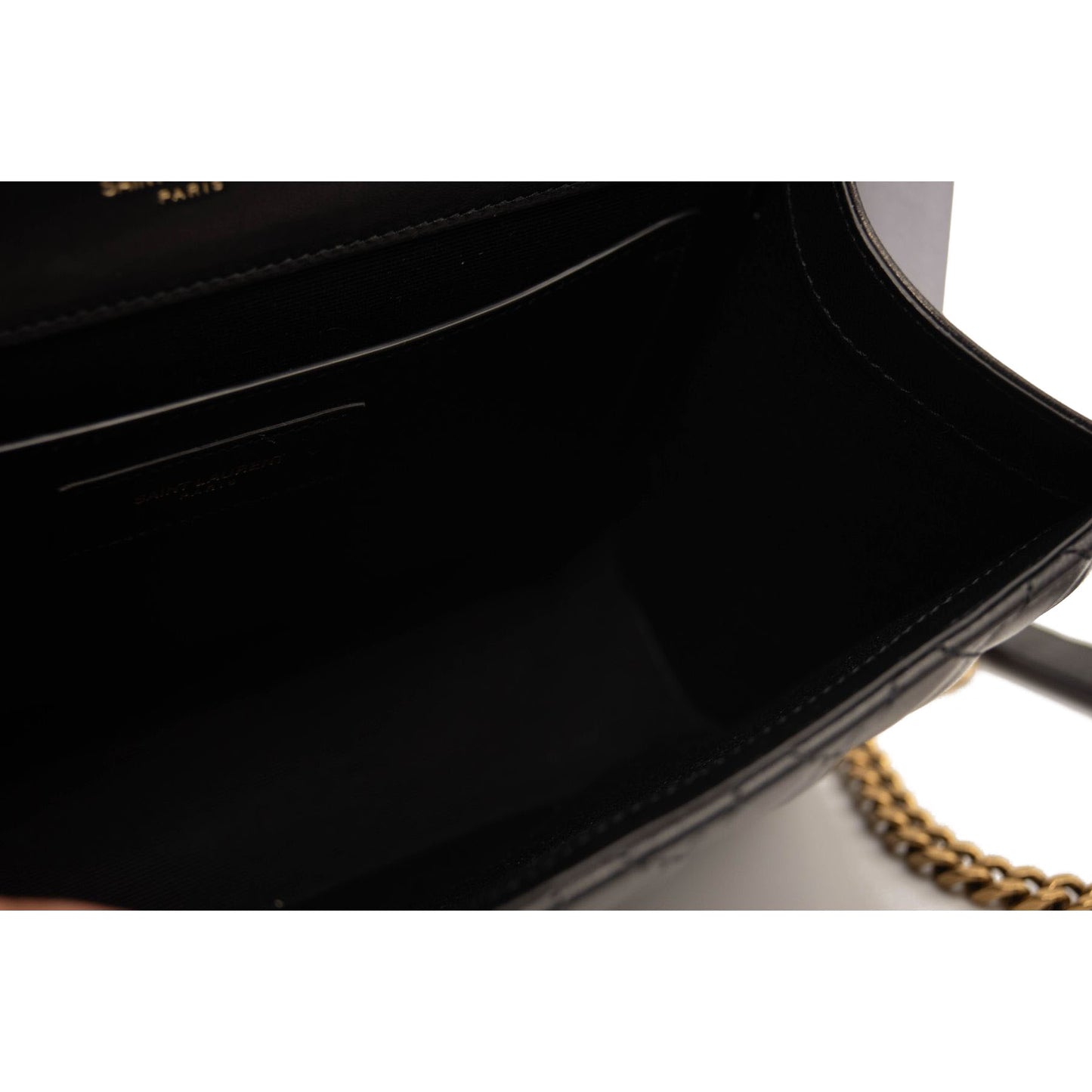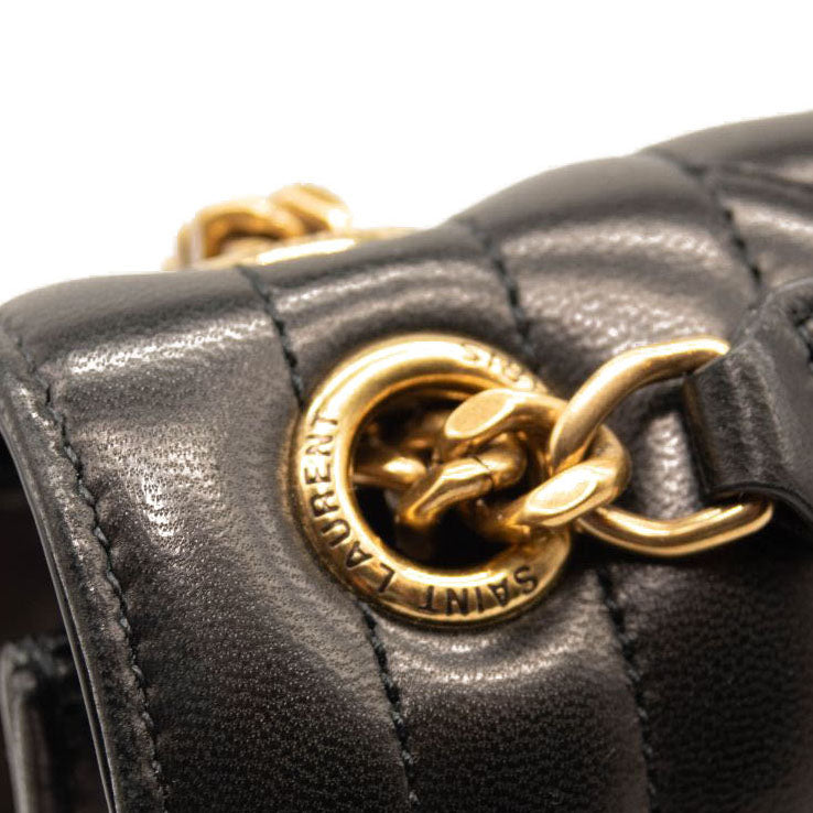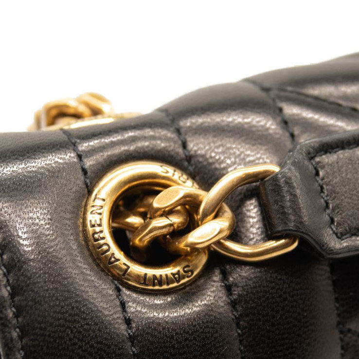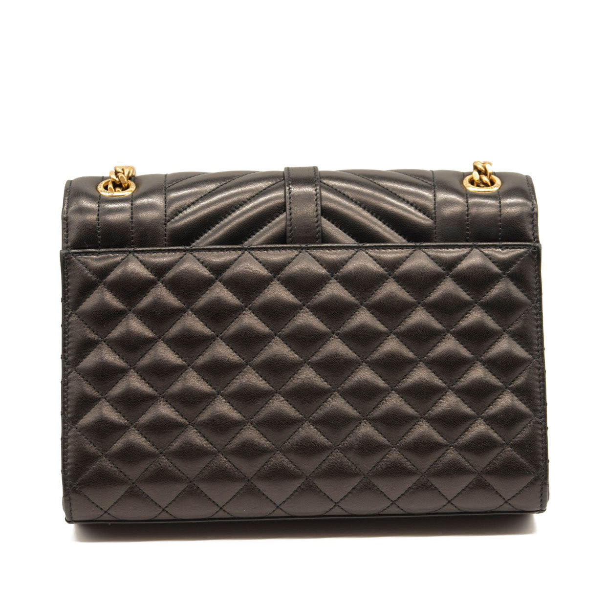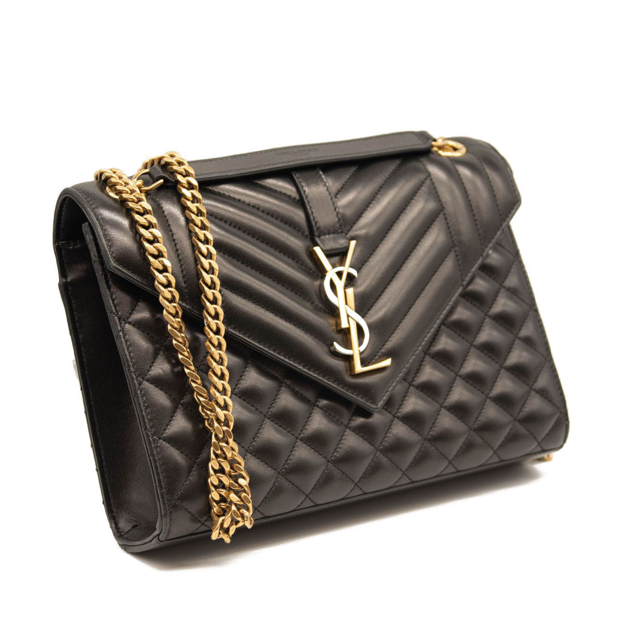 NEW Saint Laurent Smooth Mixed Matelasse Triquilt Medium Monogram Satchel Black
