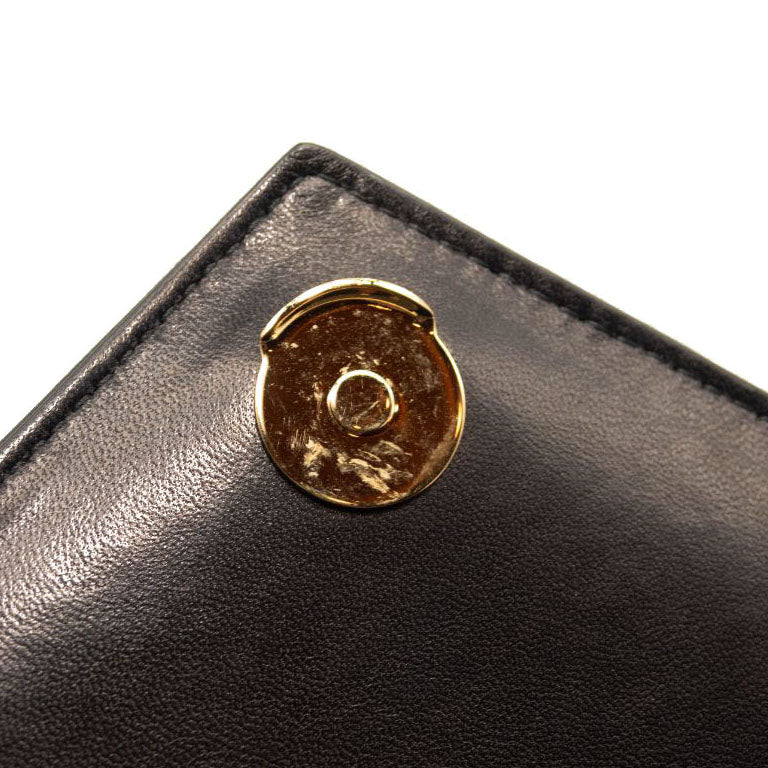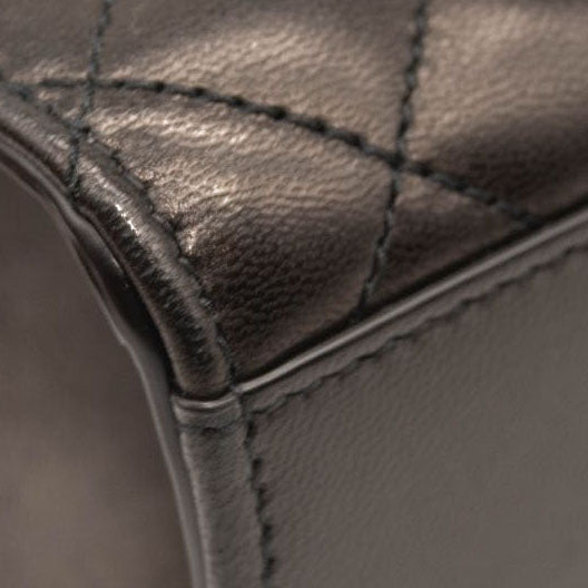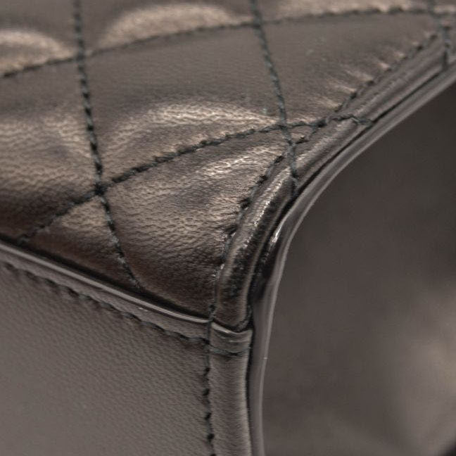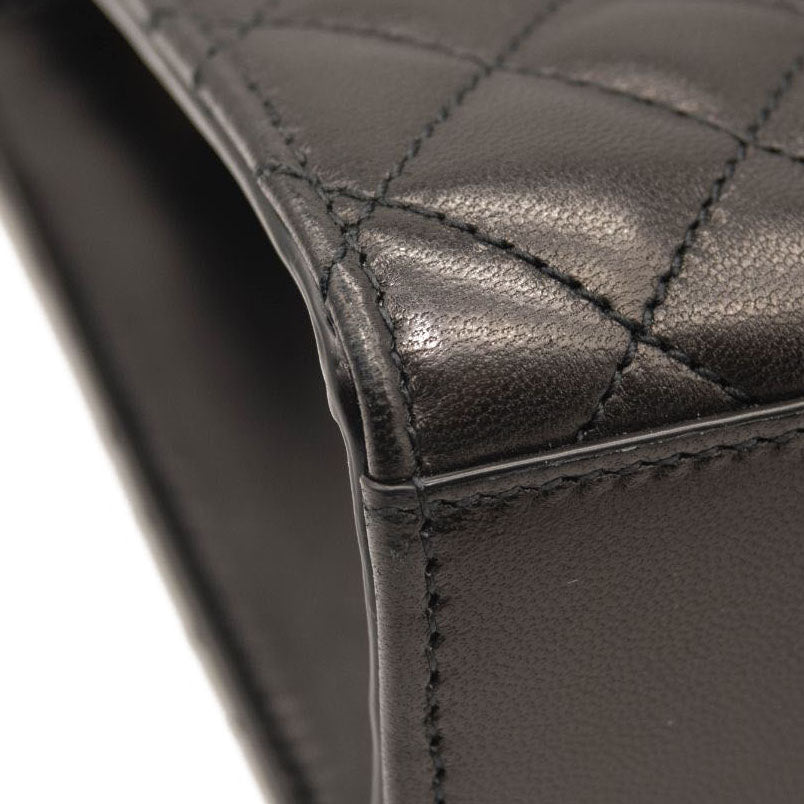 Embossed calfskin shoulder bag in black. Alternating quilted pattern throughout.