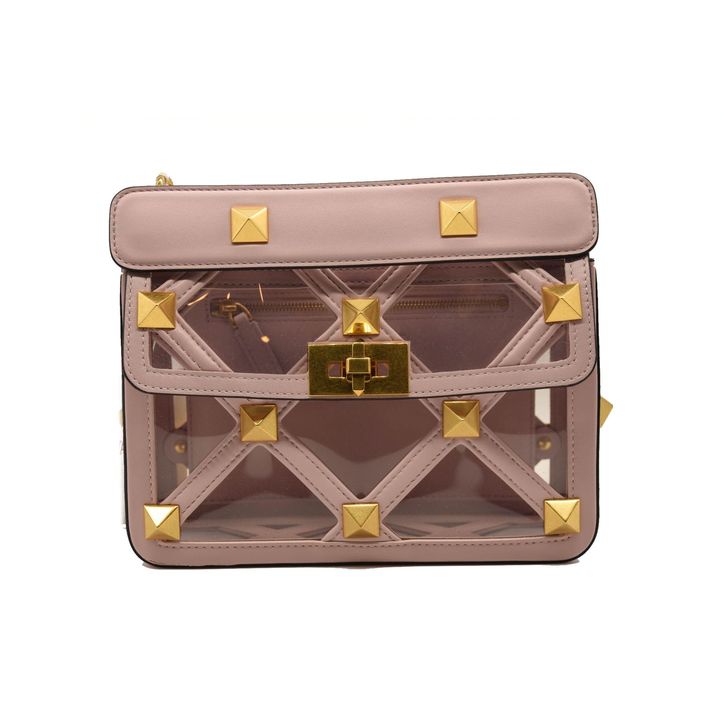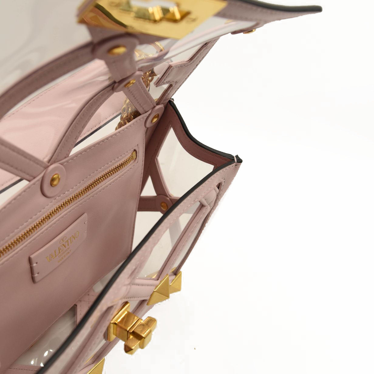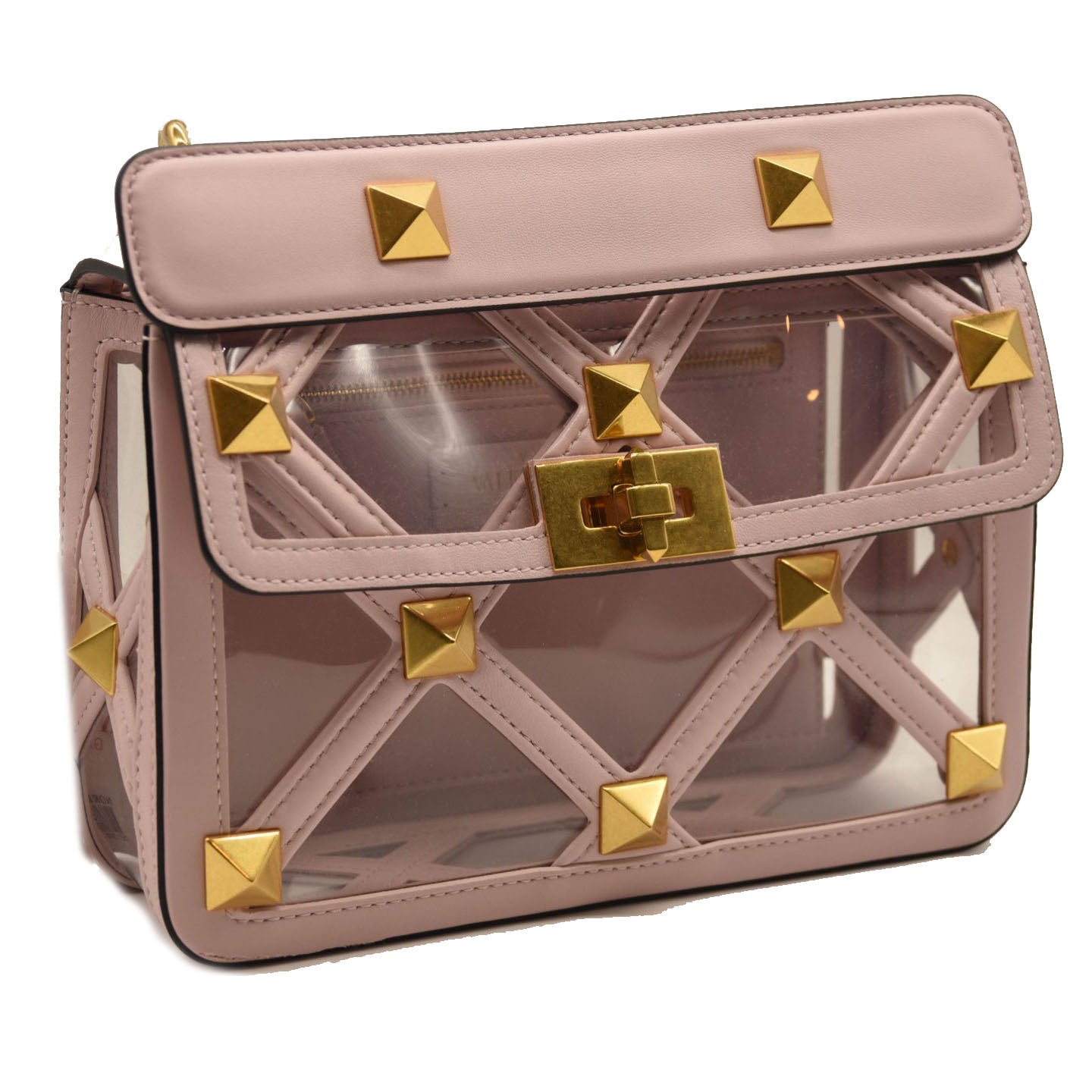 NEW Valentino Roman Stud Transparent Shoulder Bag Pink
