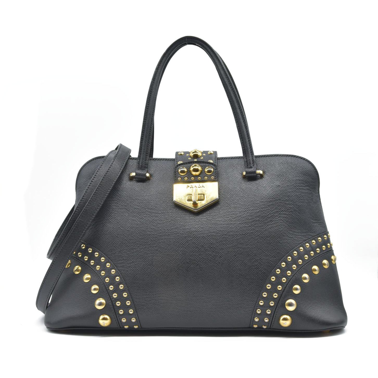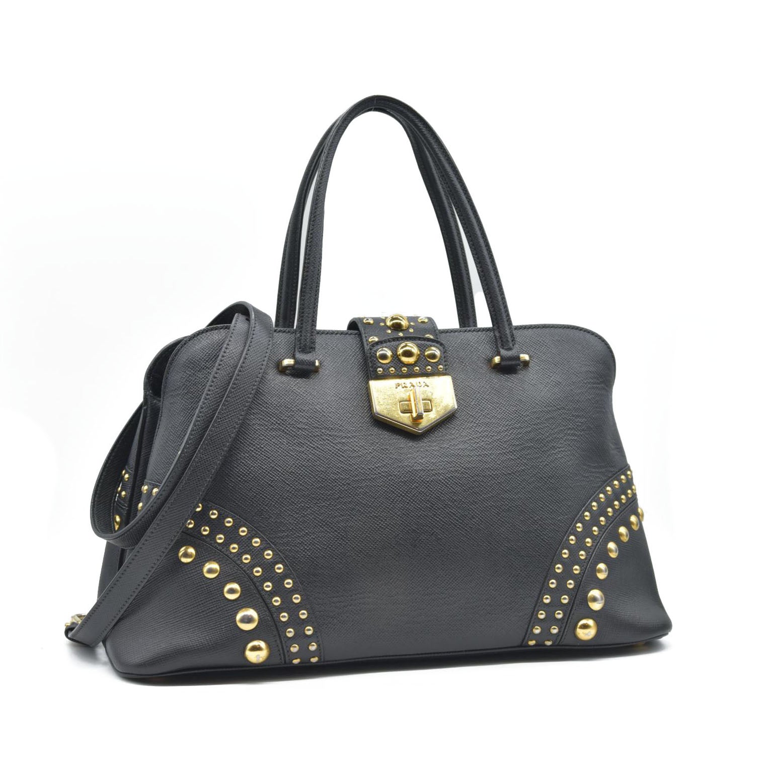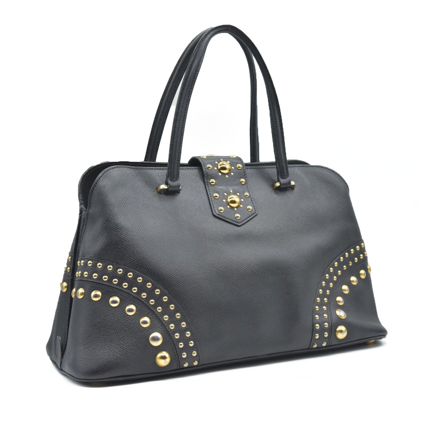 AUCTION $3450 Prada Black Leather Promenade Studded Satchel
