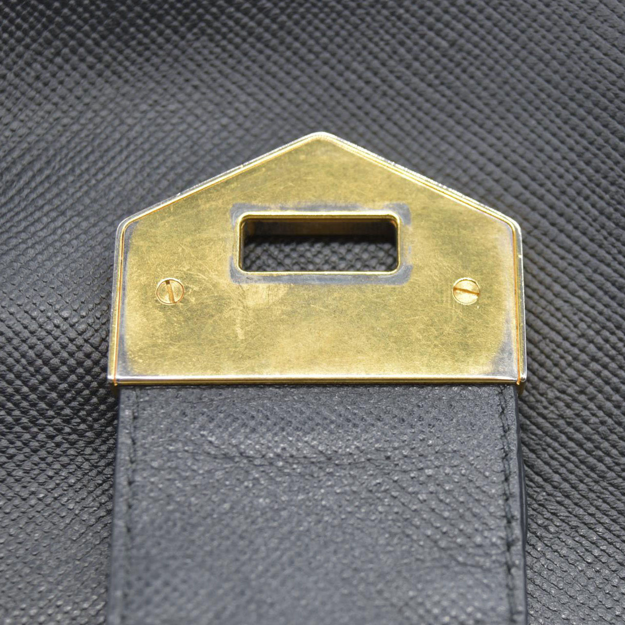 This stunning Promenade bag is high in appeal and style. Dazzling in a classy shade, the bag is crafted from leather and features two handles, a shoulder strap, and a turn lock on the front. For those who love eye-catching luxury, this Prada bag is perfect.
