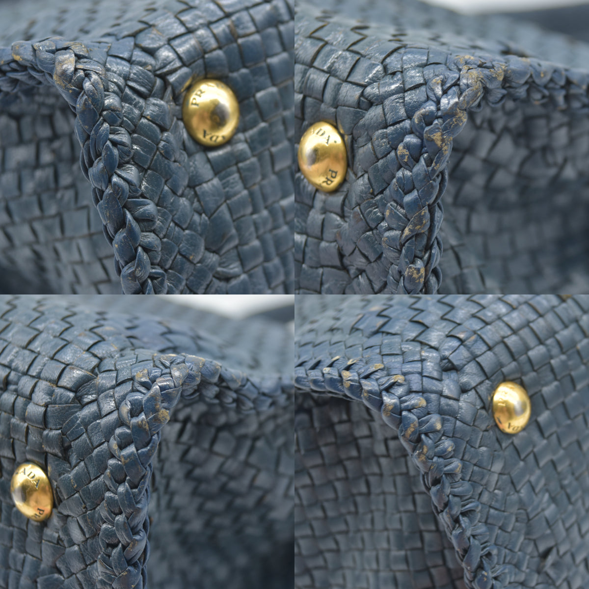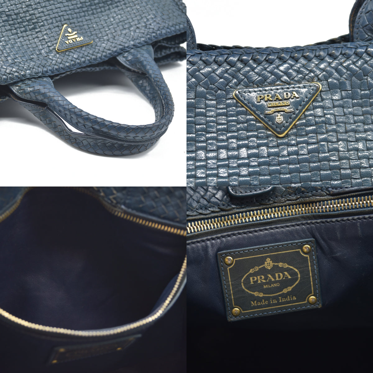 AUCTION $3900 Prada Goatskin Woven Shopping Tote Blue Leather