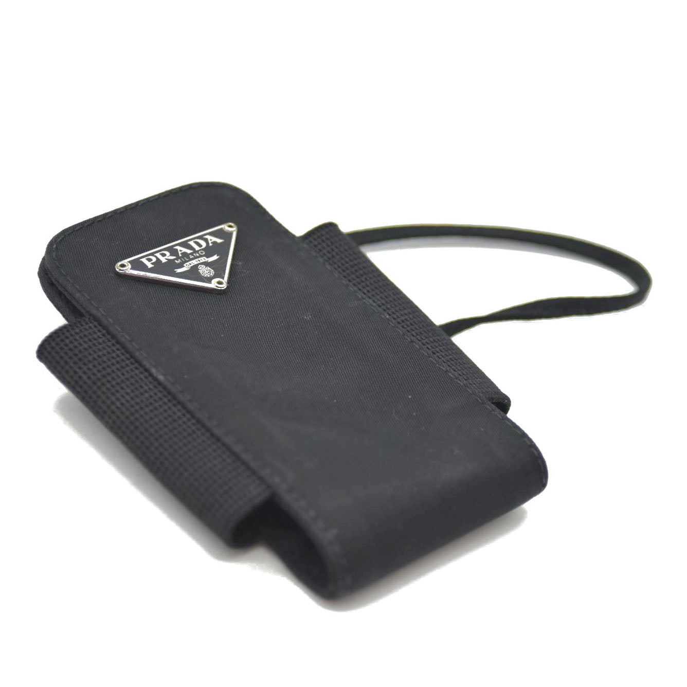 PRADA Logo Plate Nylon Strap Cigaretto Case Black