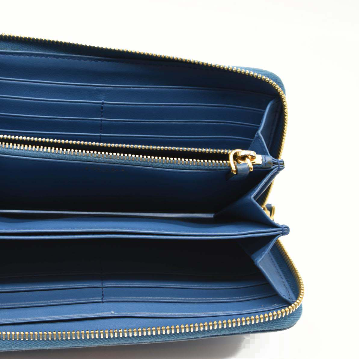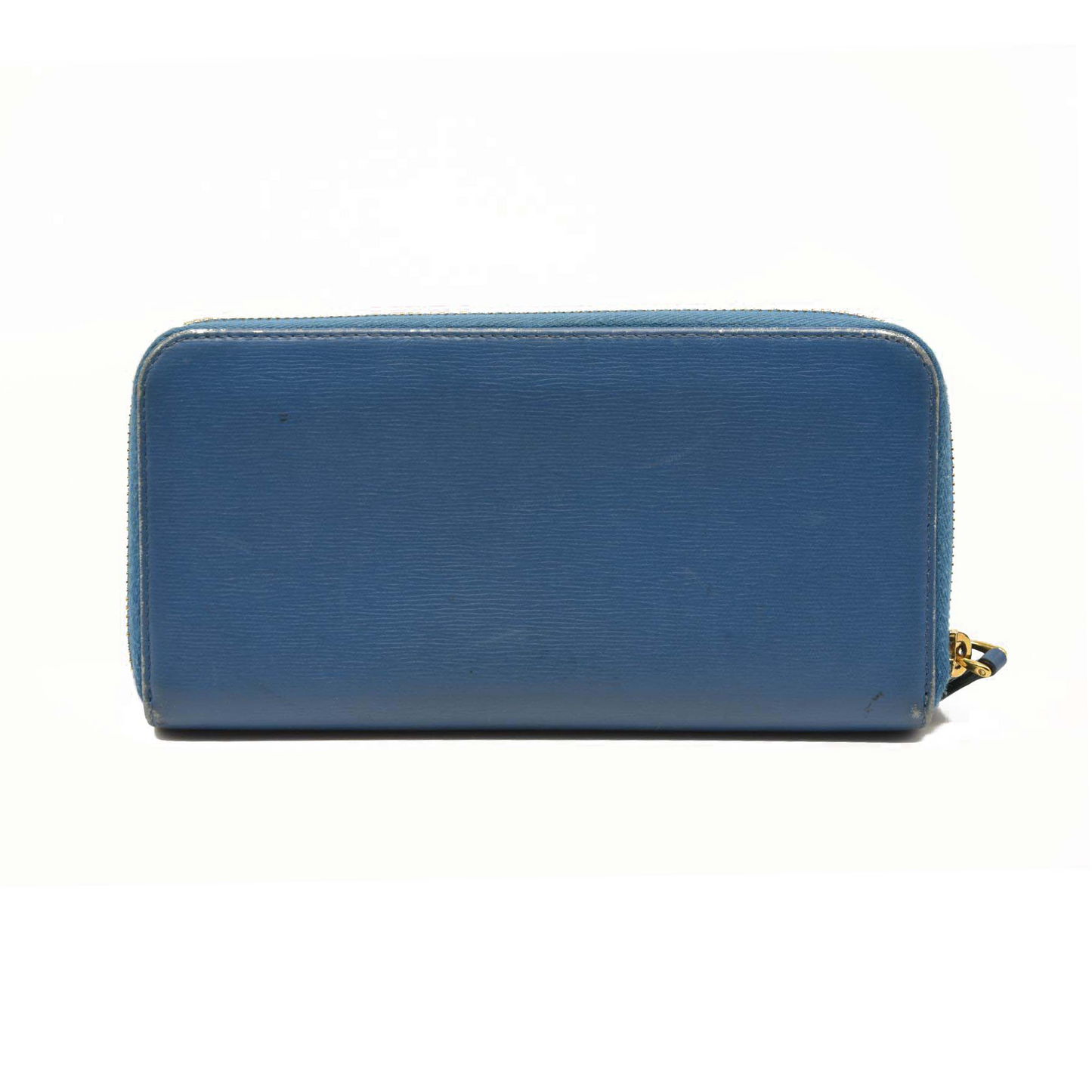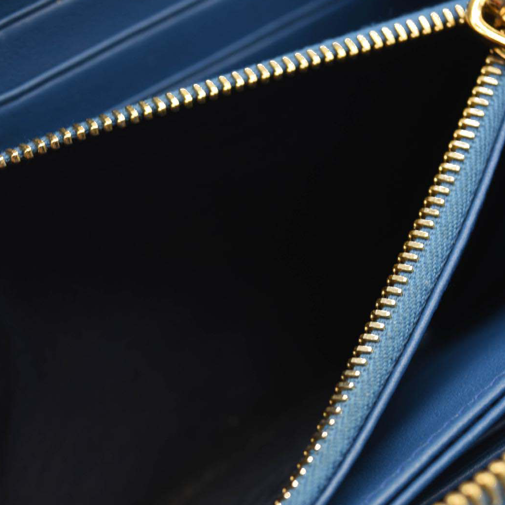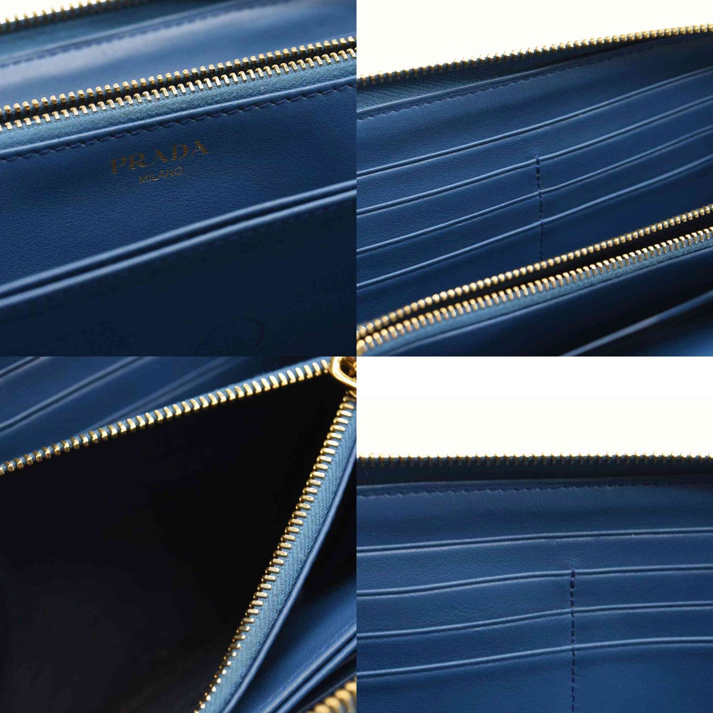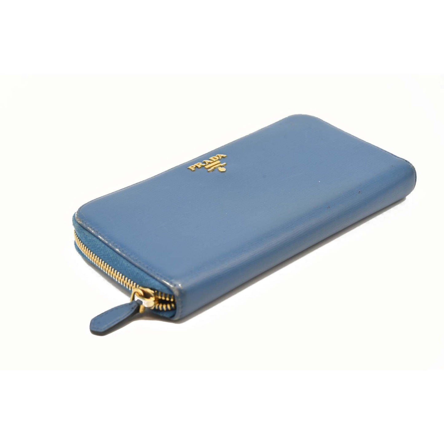 PRADA Saffiano Metal Continental Zippy Zip Around Wallet Blue