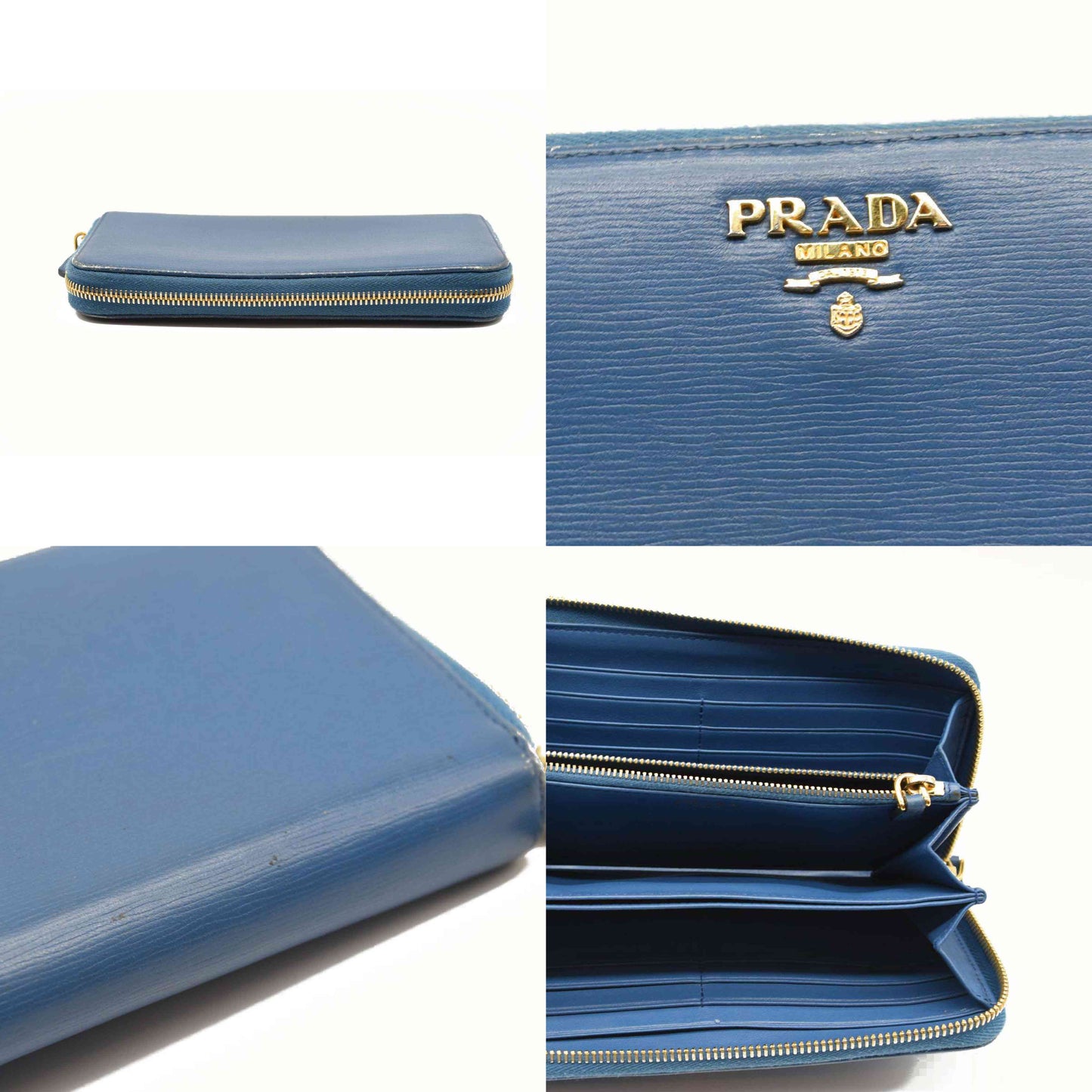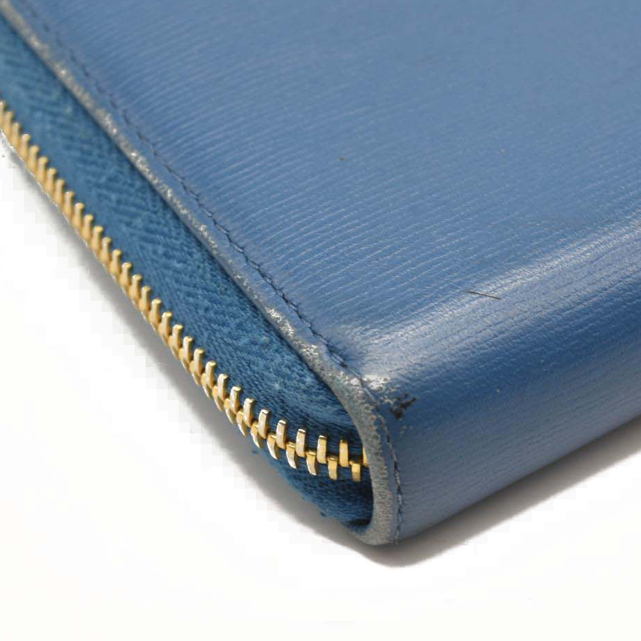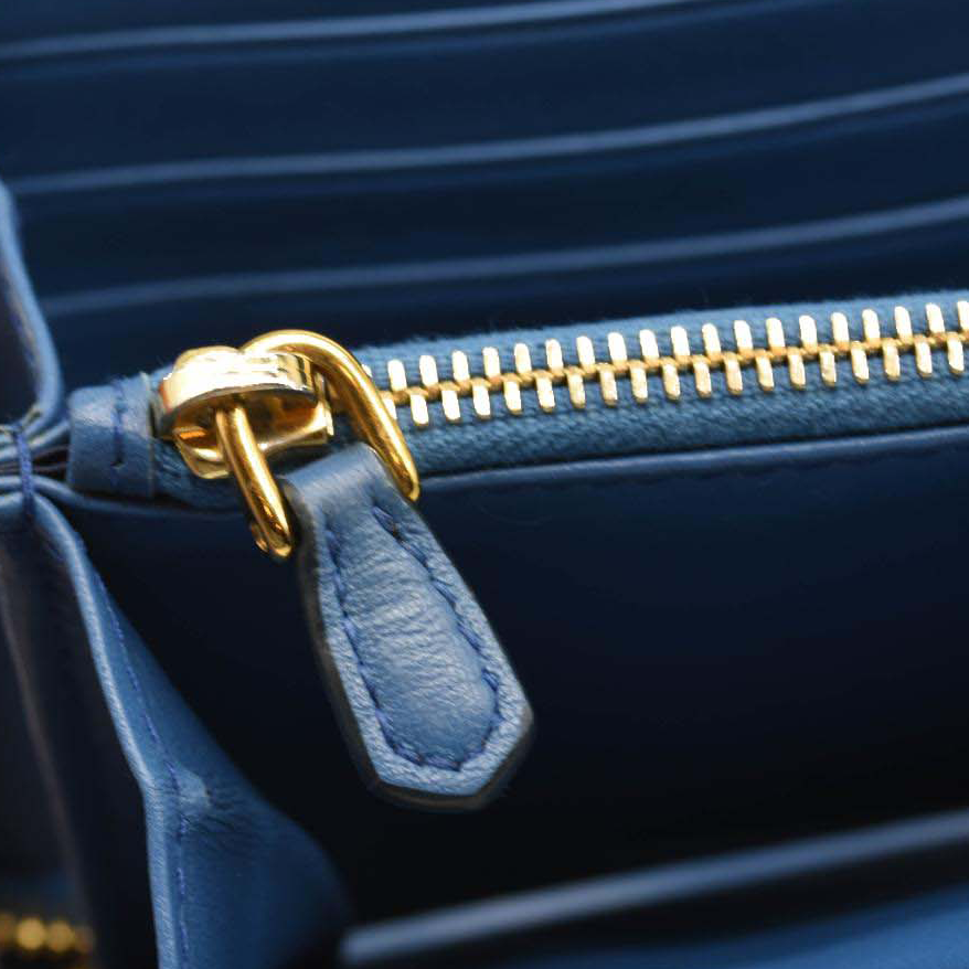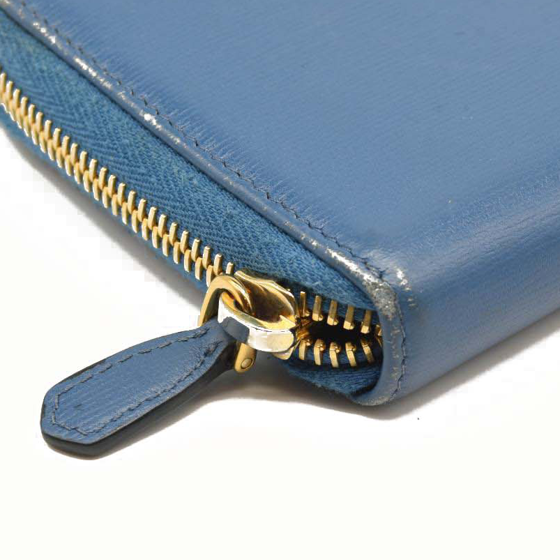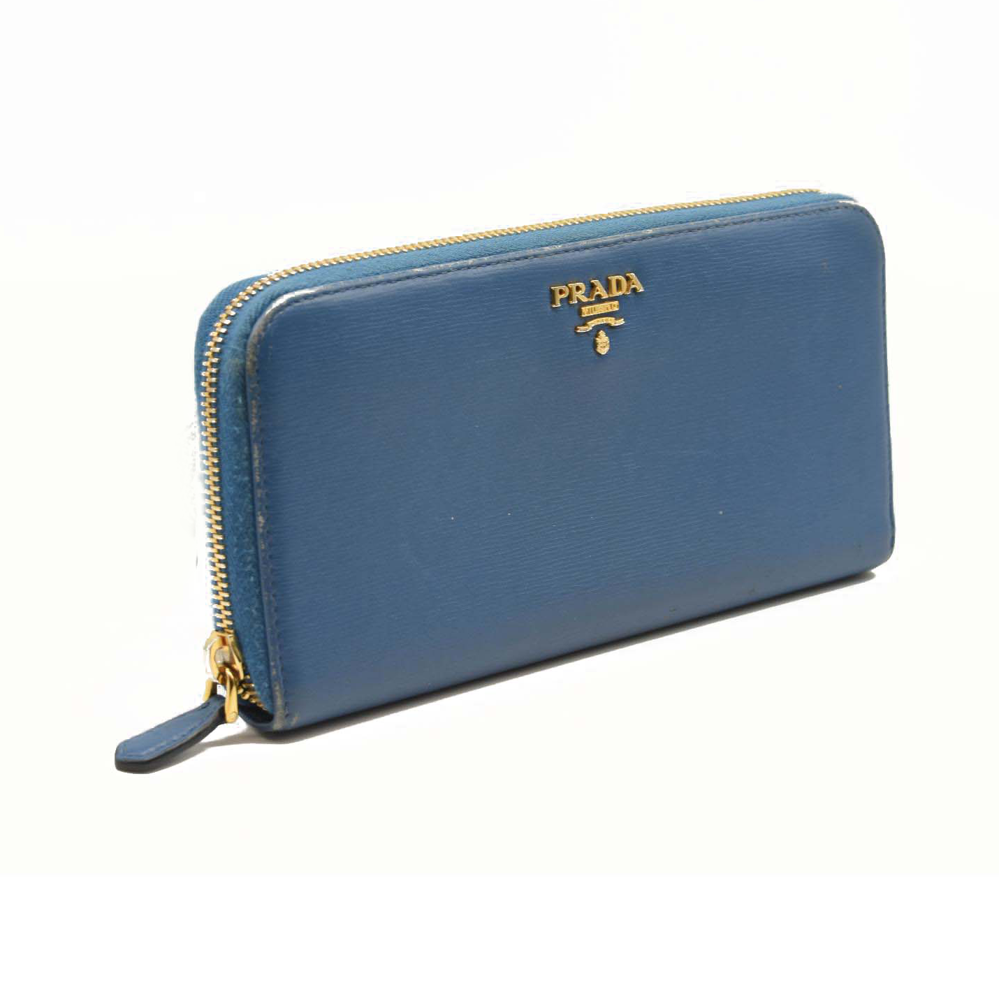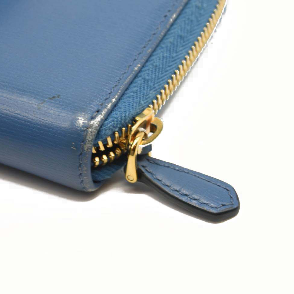 PRADA Saffiano Metal Continental Zippy Zip Around Wallet Blue