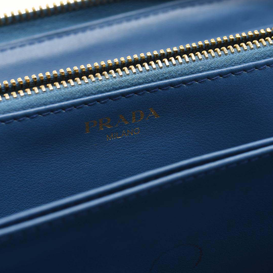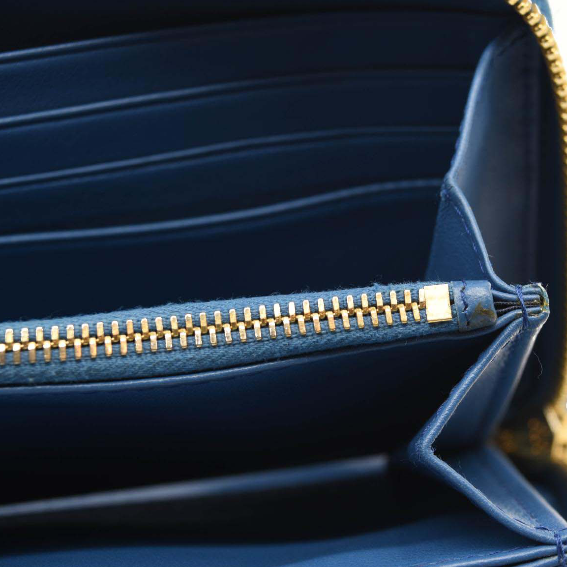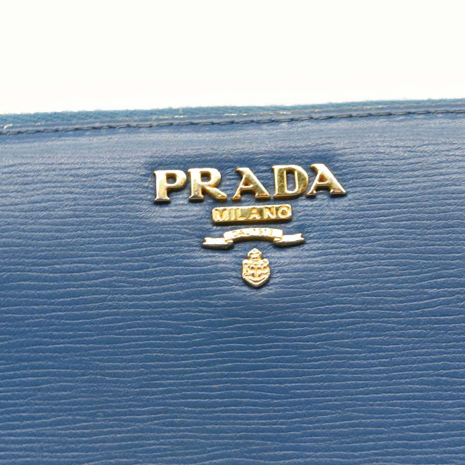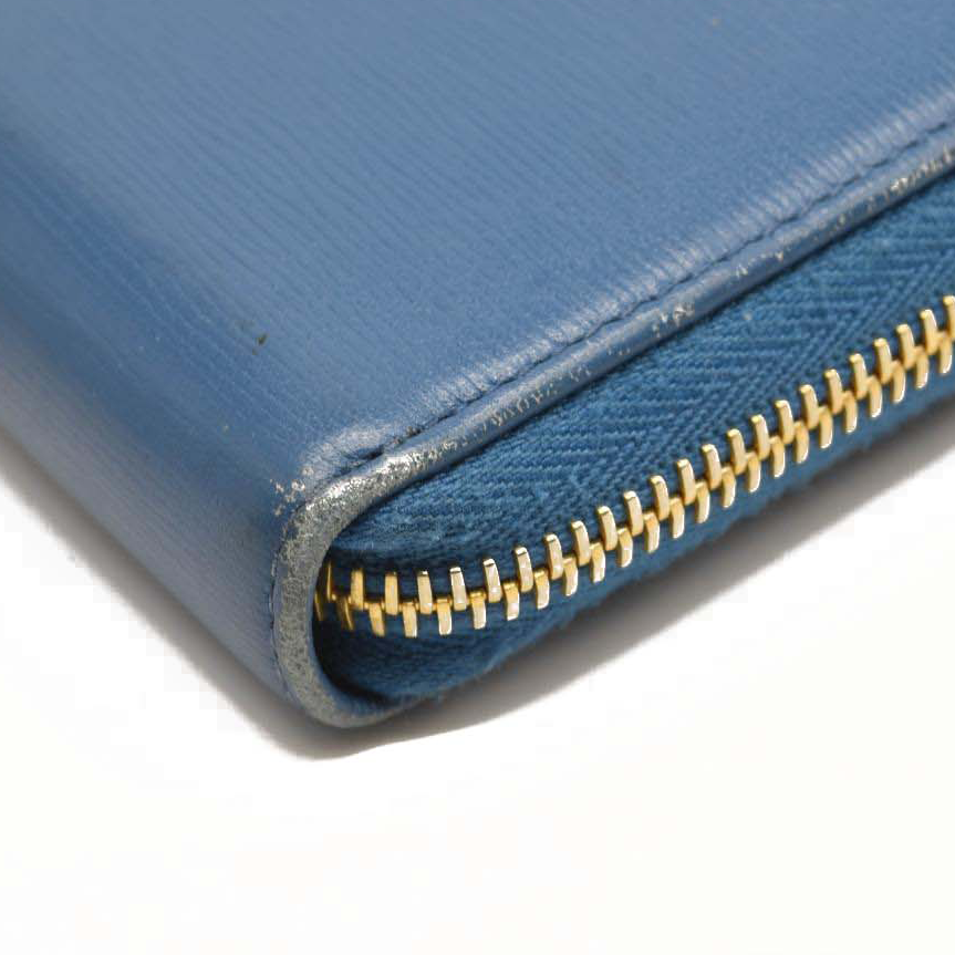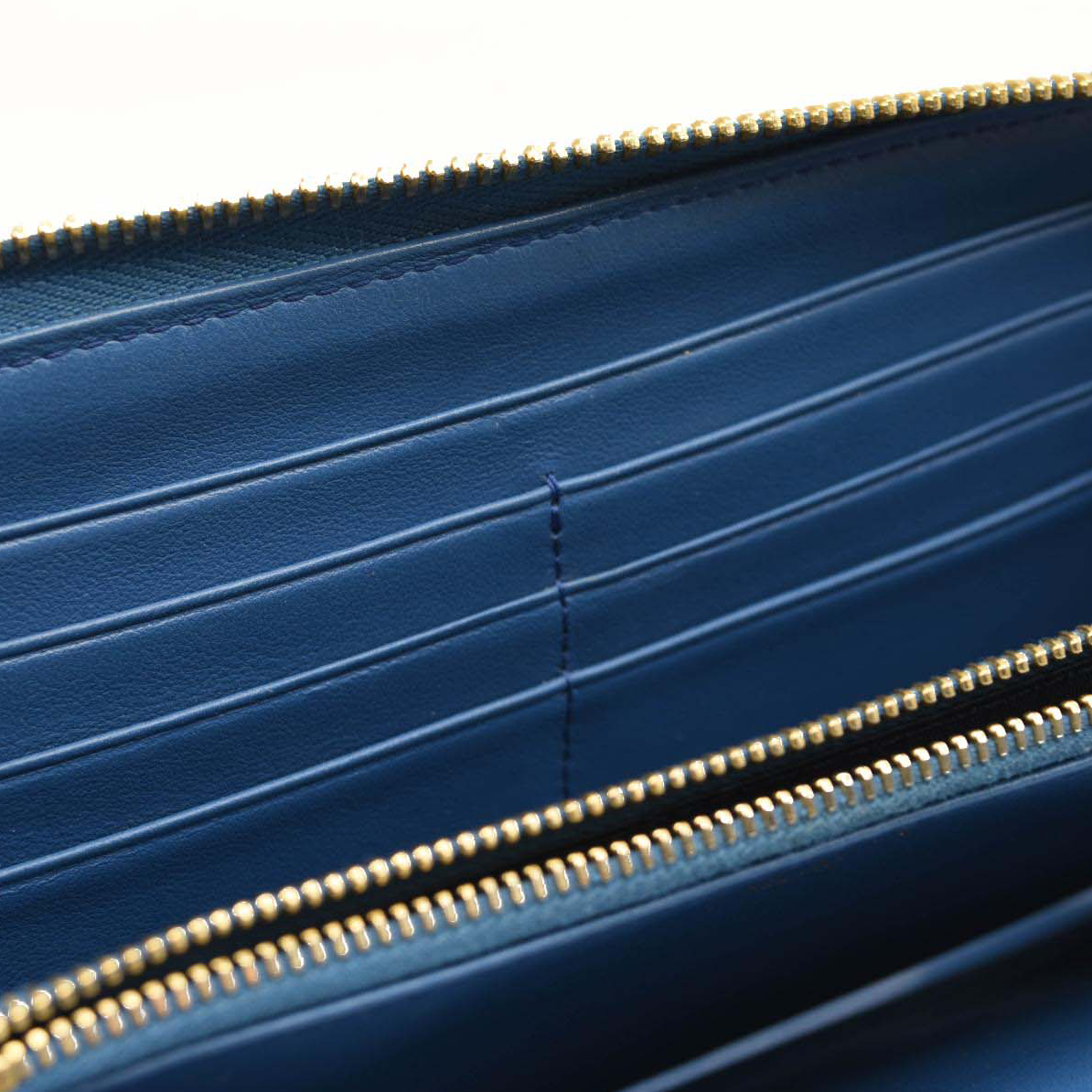 PRADA Saffiano Metal Continental Zippy Zip Around Wallet Blue