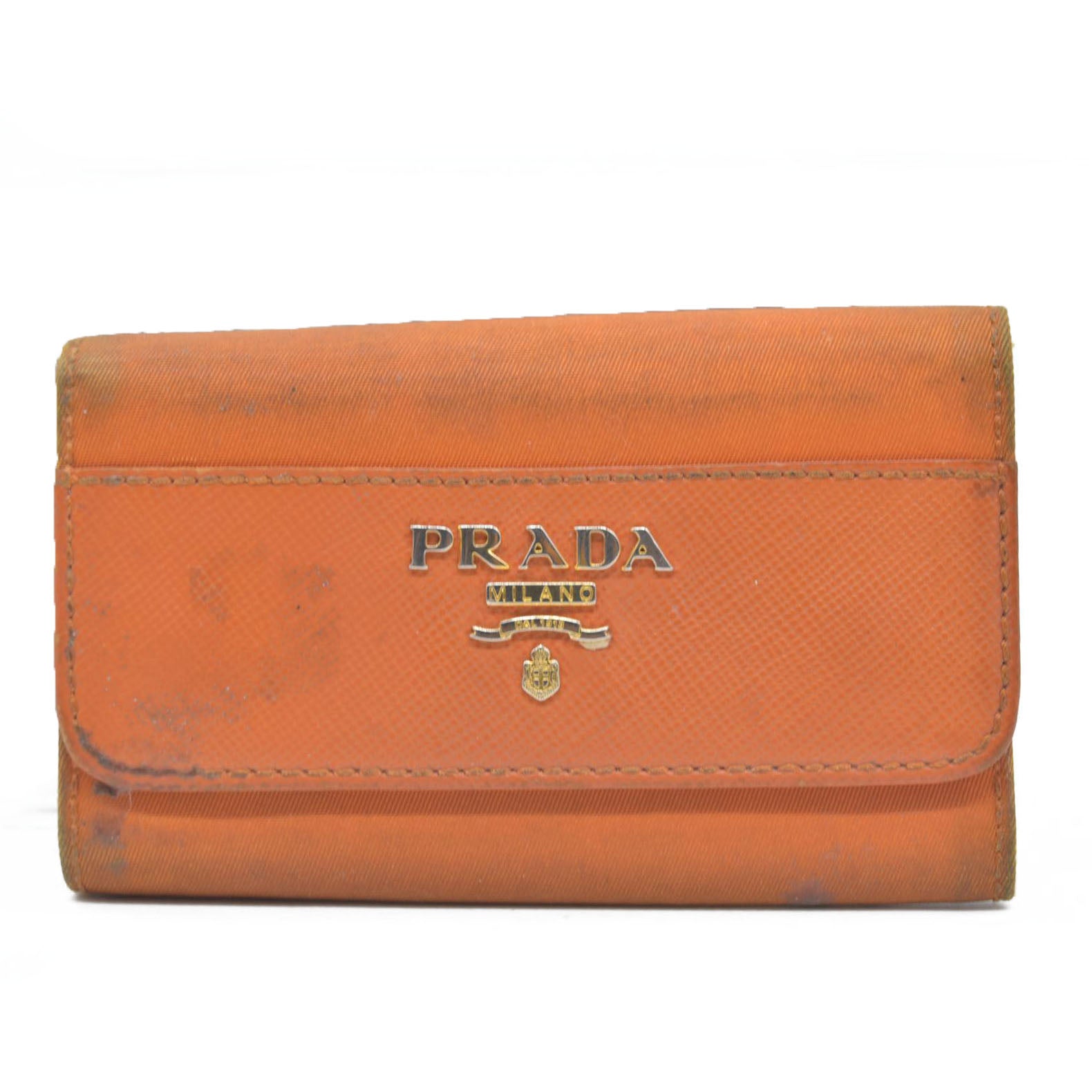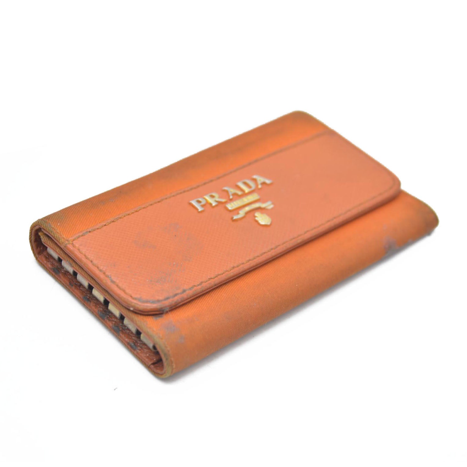 Prada Saffiano Nylon Metal 6 Key Holder Orange