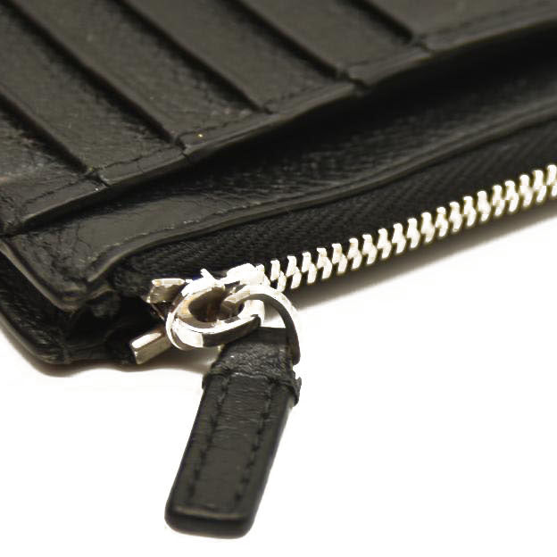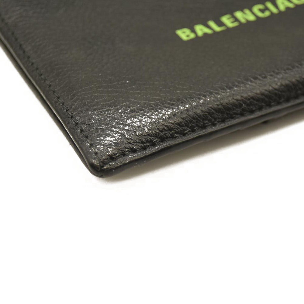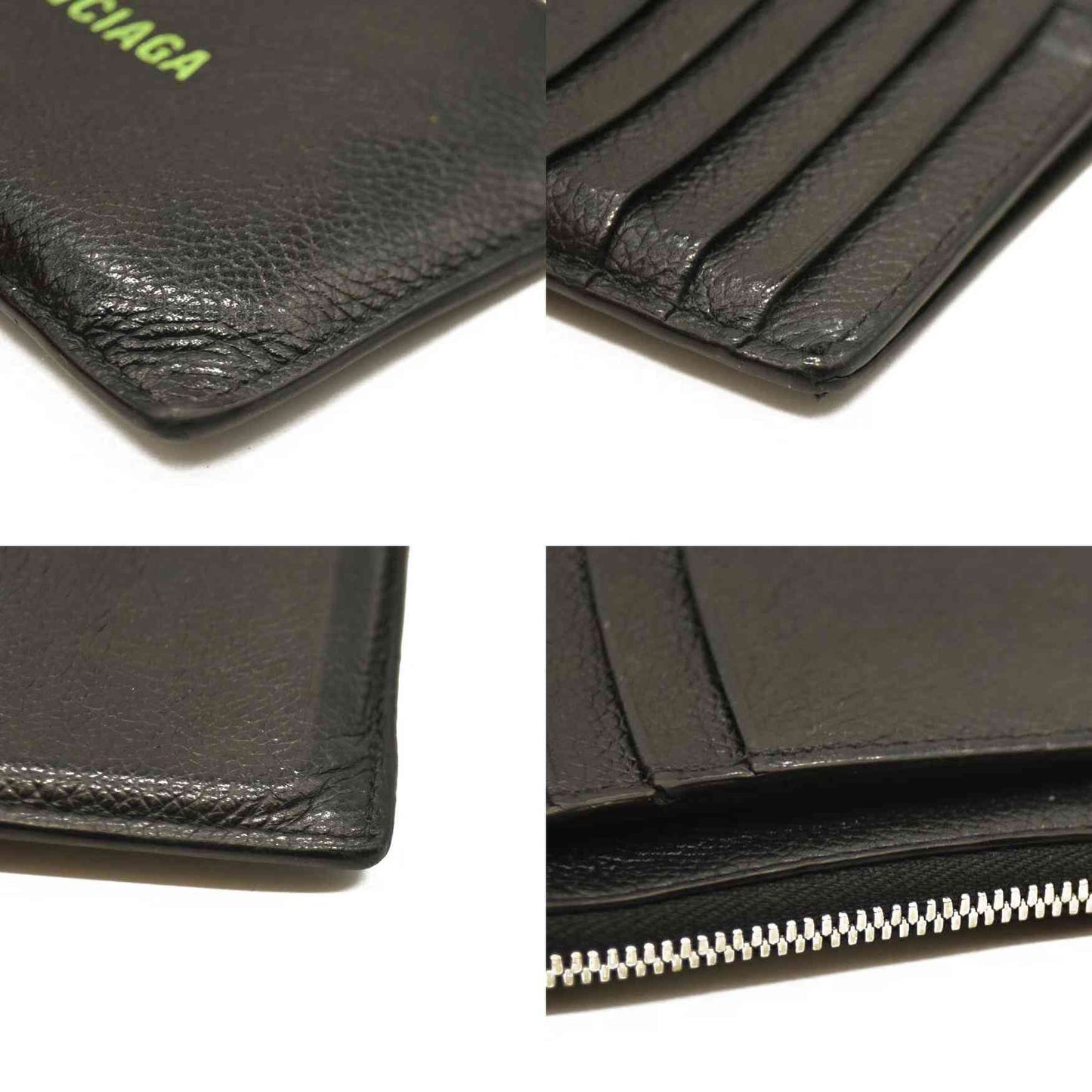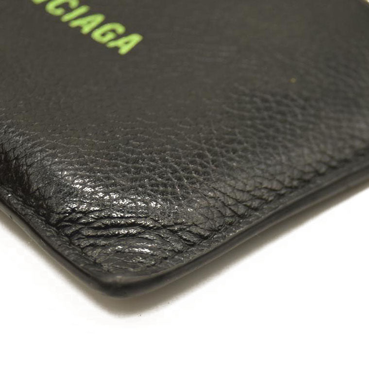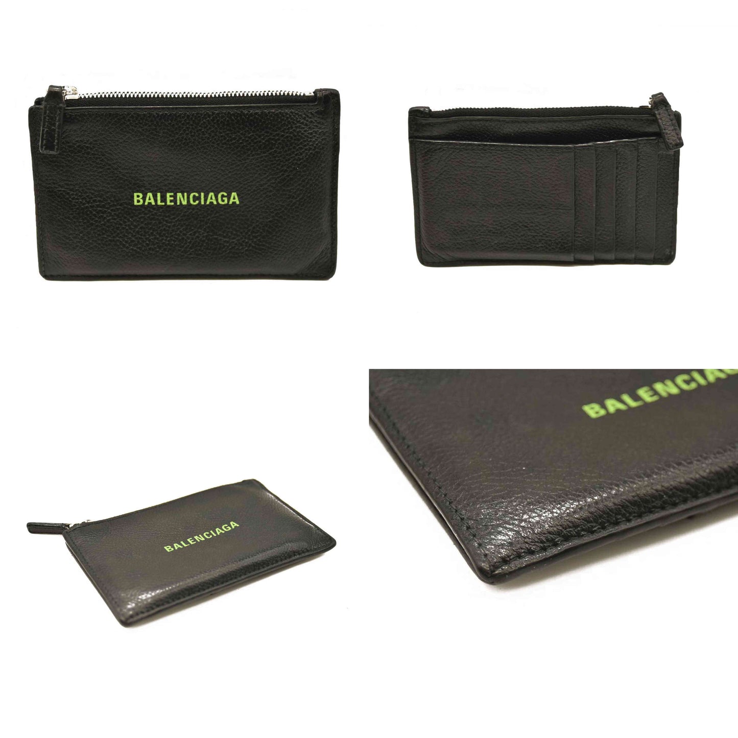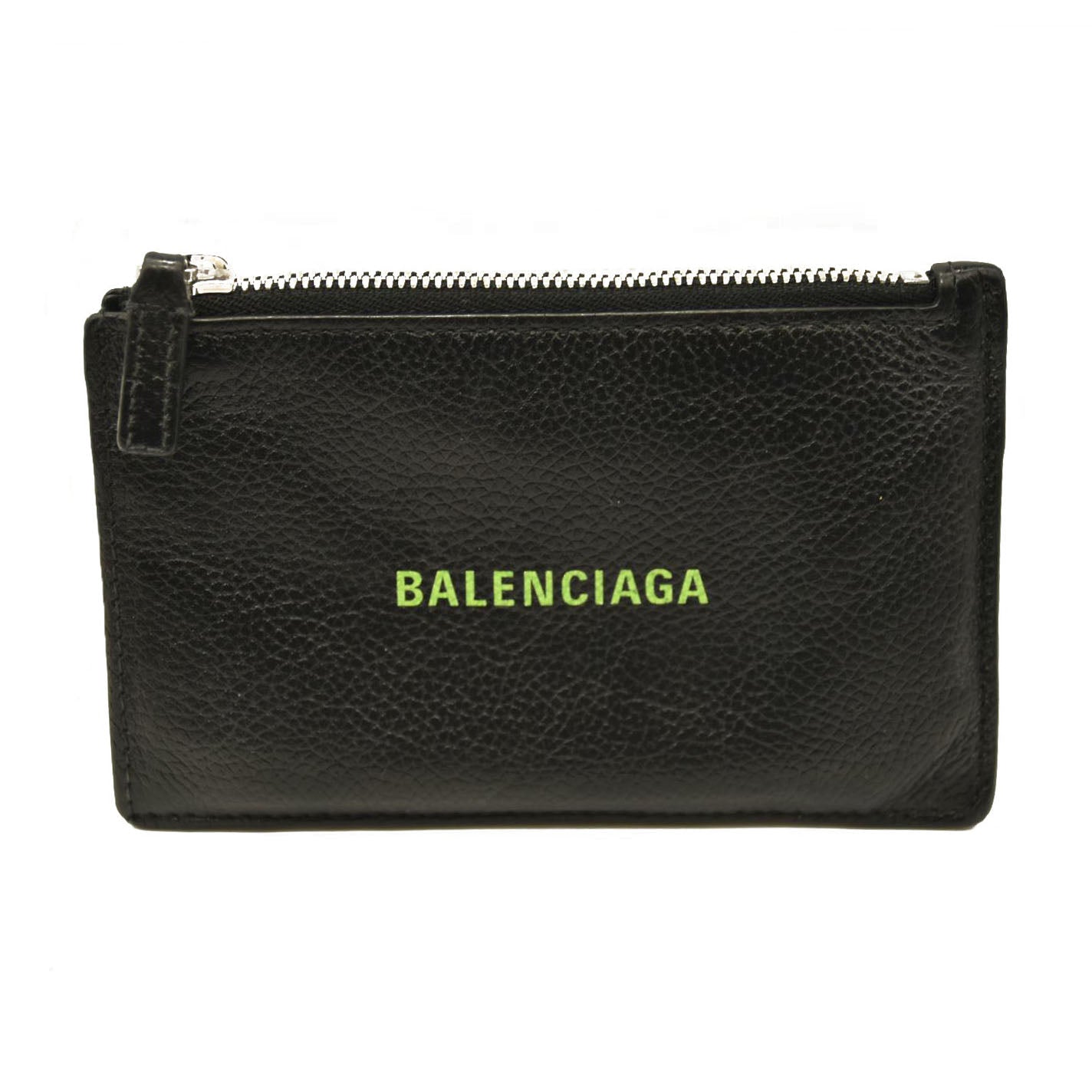 Balenciaga Signature Grained Calfskin Logo Cash Long Coin Card Holder Black Green