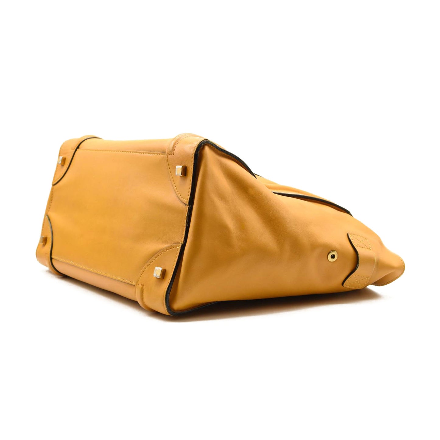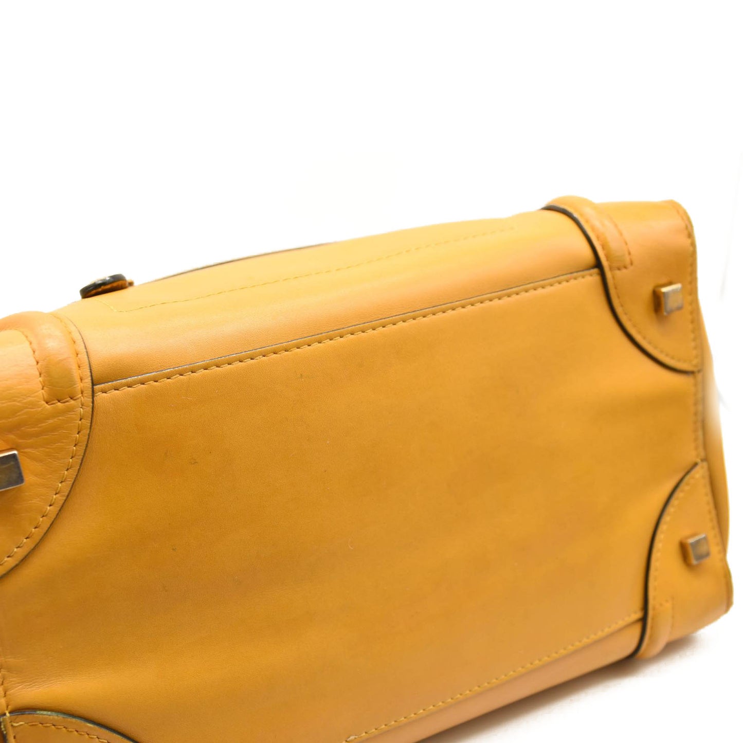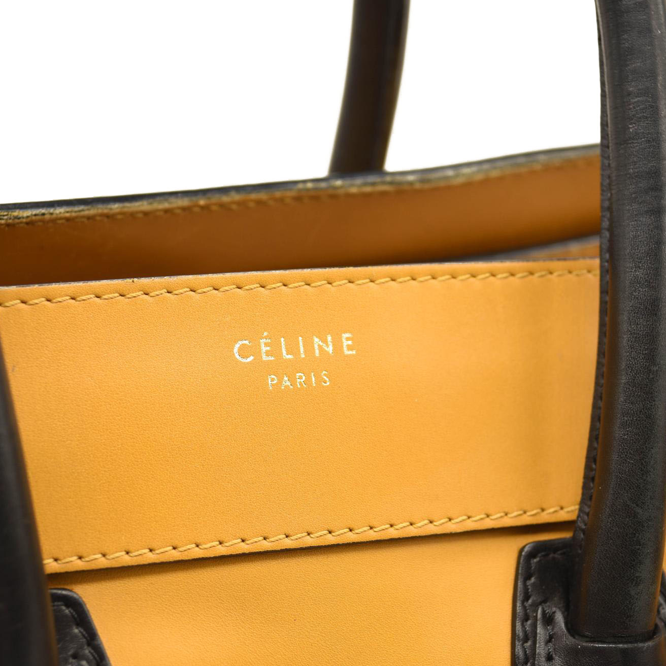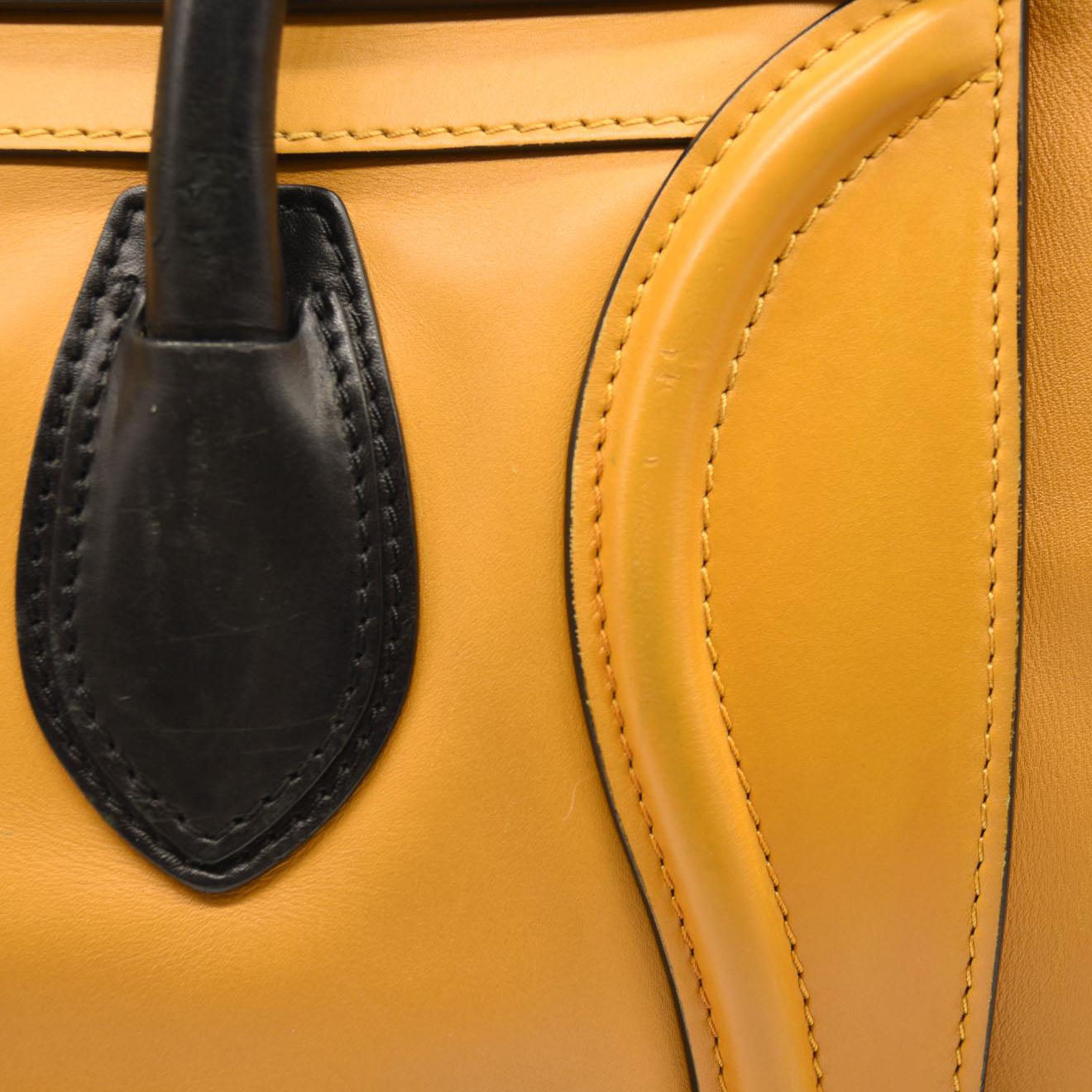 CELINE Drummed Calfskin Mini Luggage Ocre Black