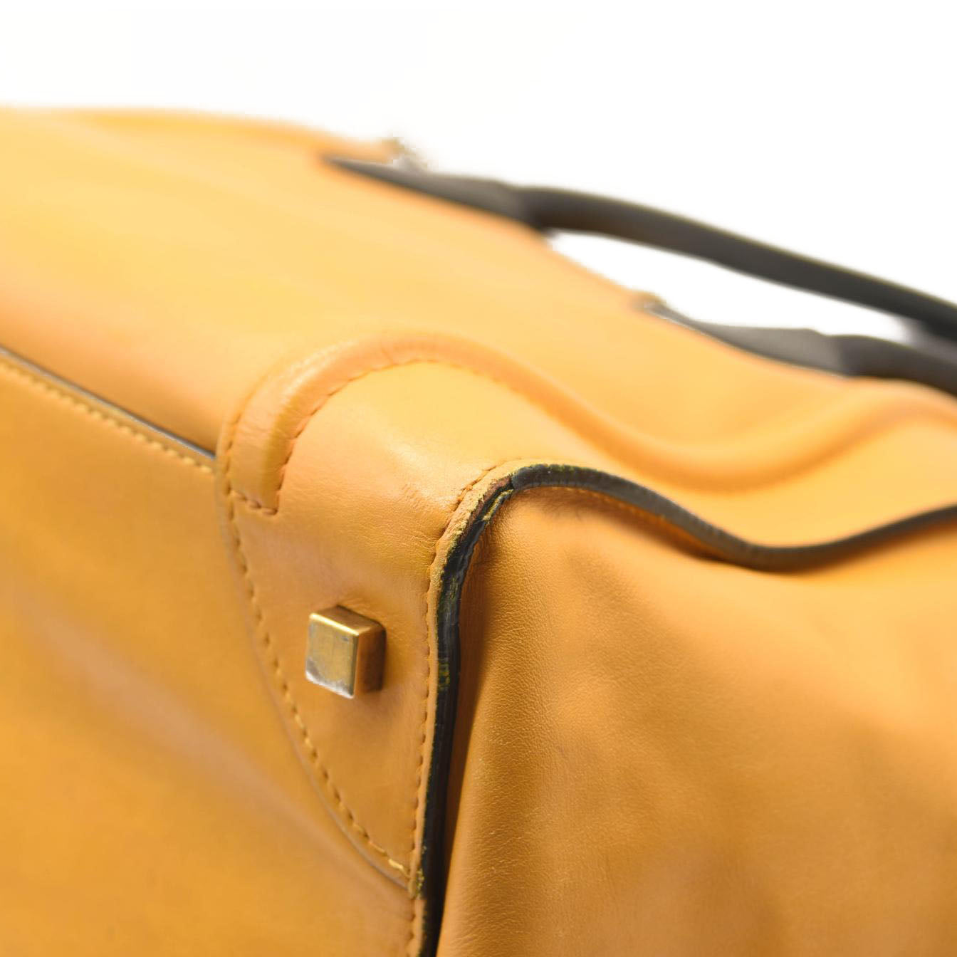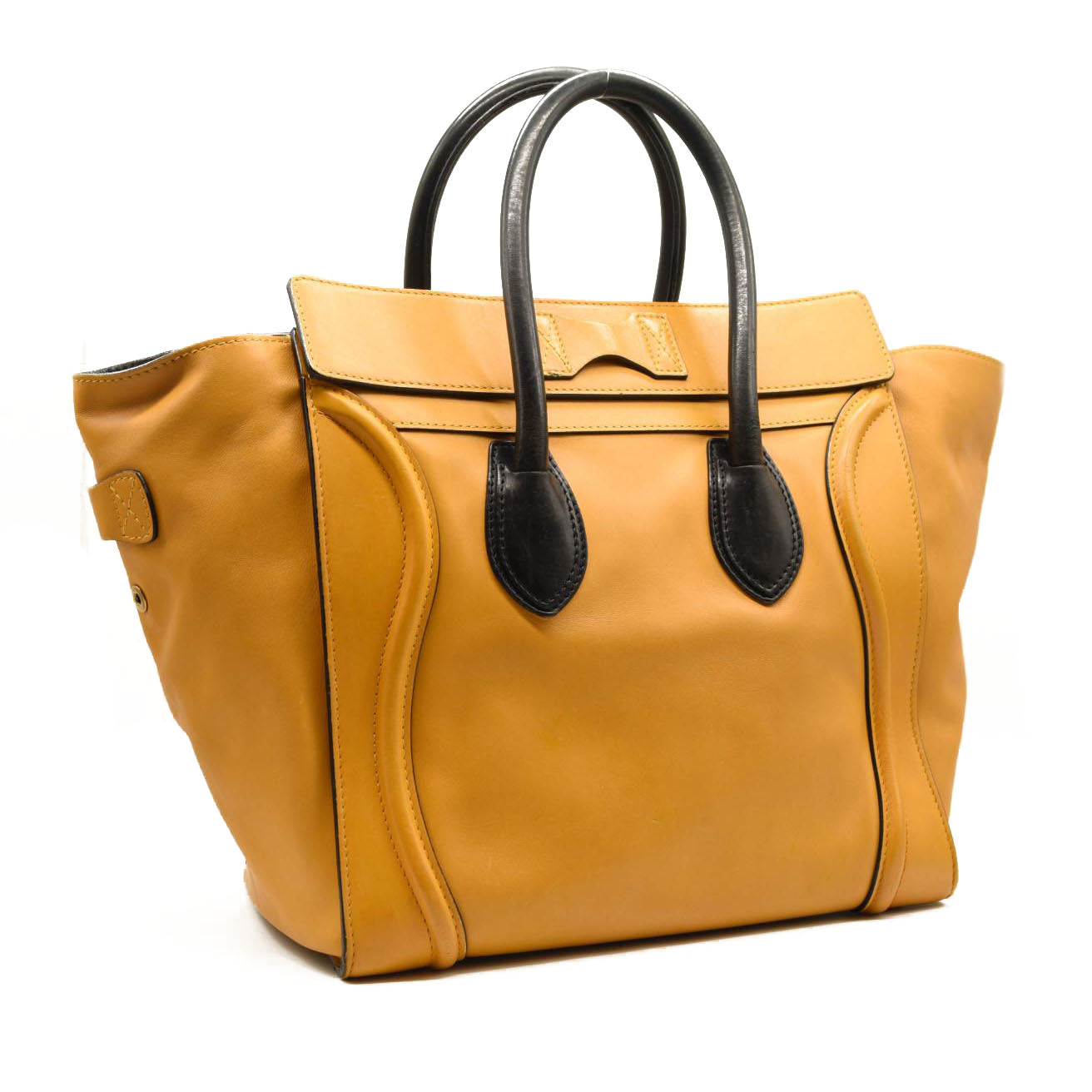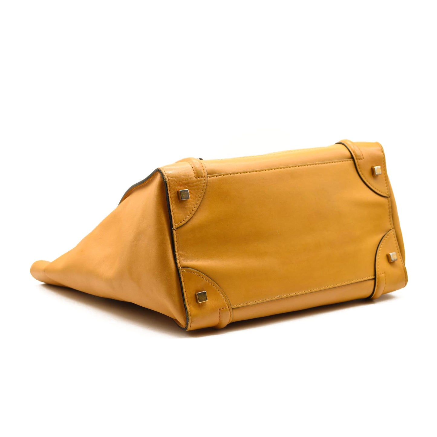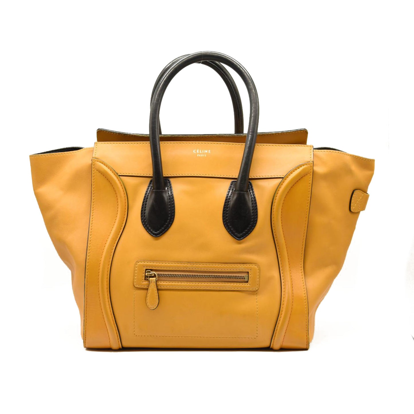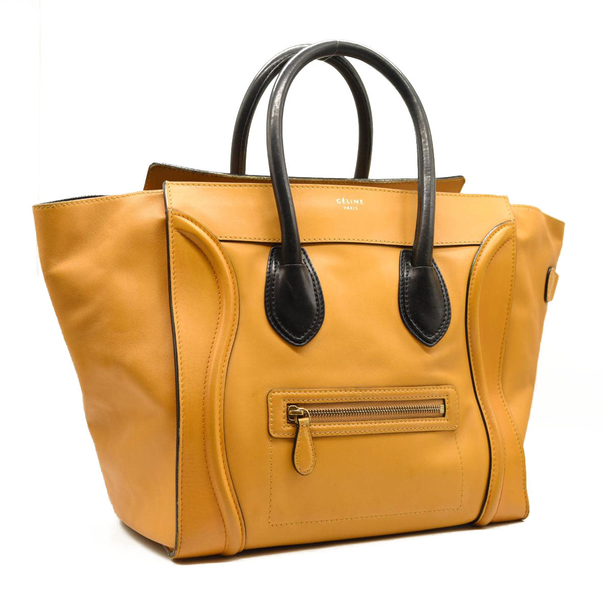 CELINE Drummed Calfskin Mini Luggage Ocre Black