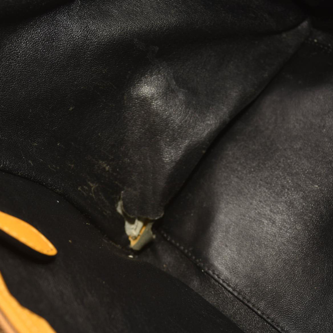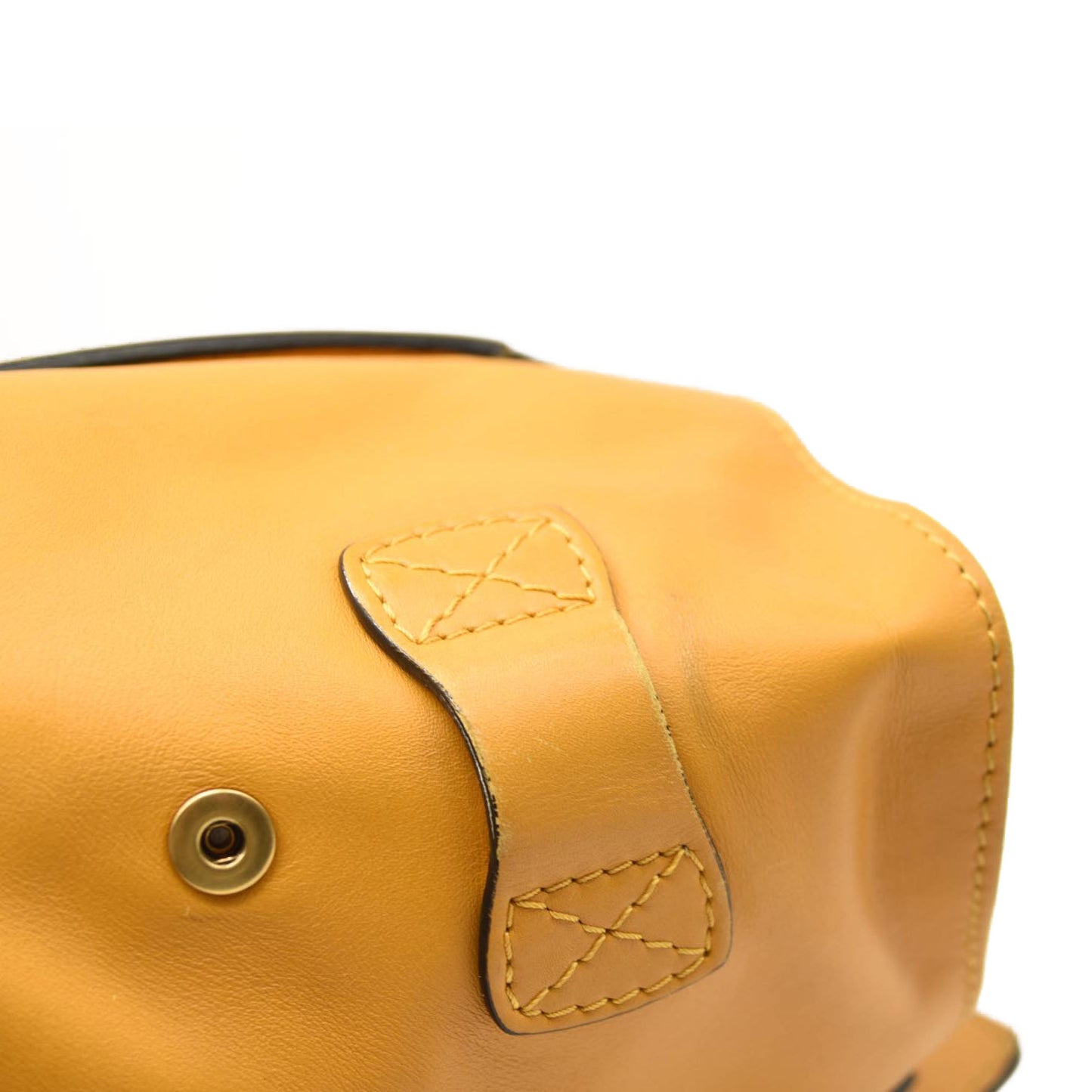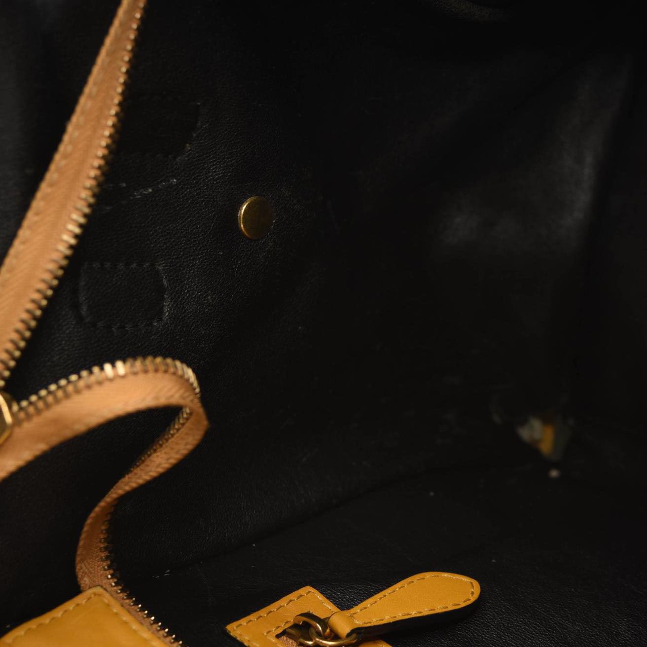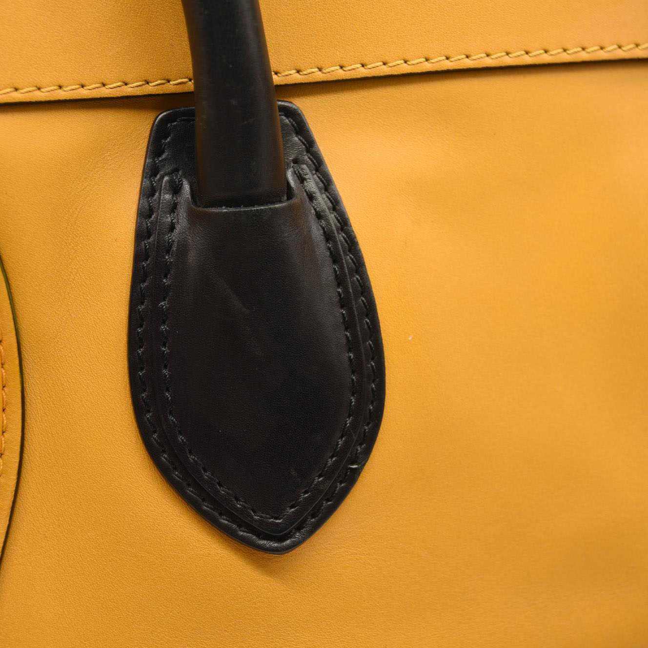 This is an authentic CELINE Drummed Calfskin Mini Luggage in Ocre. This chic travel tote is crafted of luxurious finely grained calfskin leather in yellow and black. The bag features rolled leather top handles, expandable sides, a facing zipper pocket, and a top overextended zipper. This opens to a spacious yellow fabric interior with a zipper and patch pockets. Tote your necessities in style with the sophisticated quality of Celine!