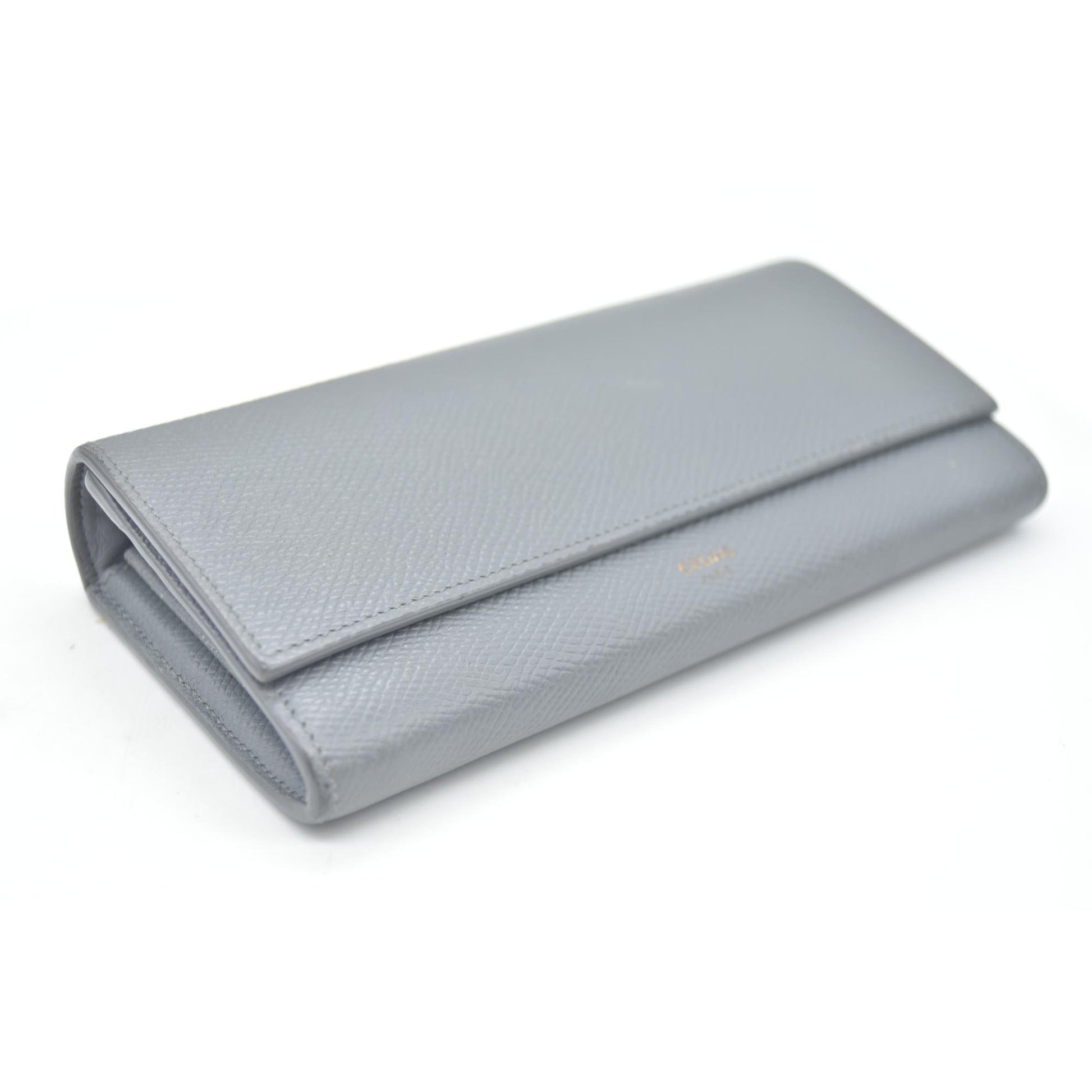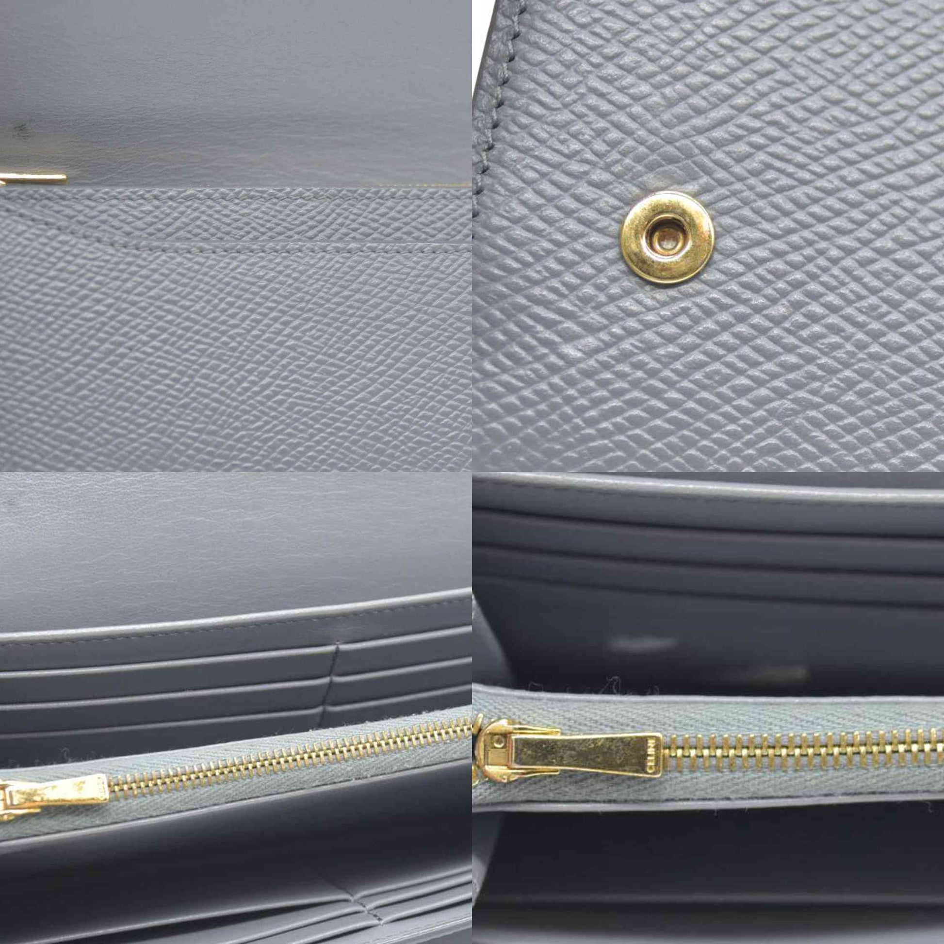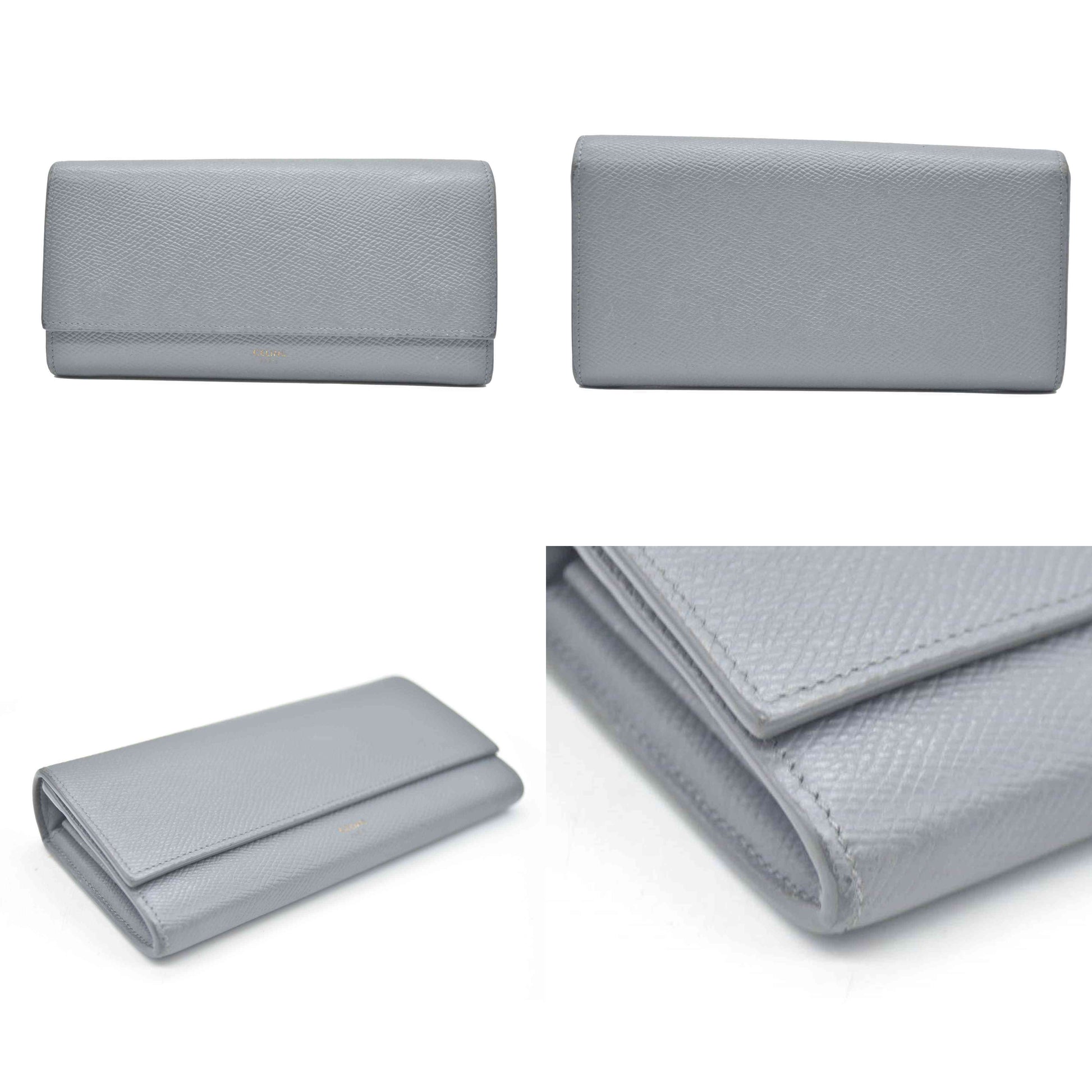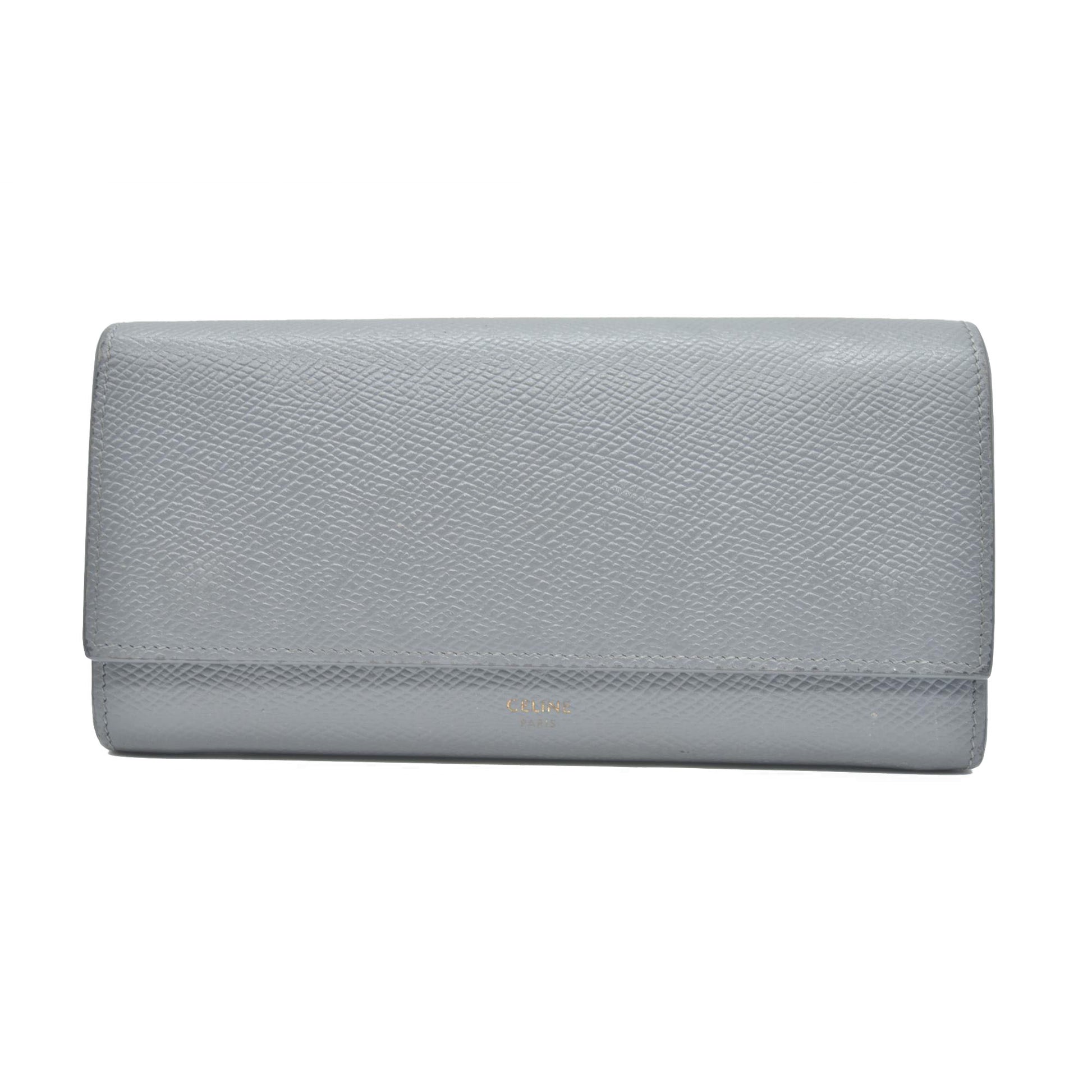 AUCTION $750 CELINE Large Flap MultiFunction Leather Long Bifold Wallet Gray