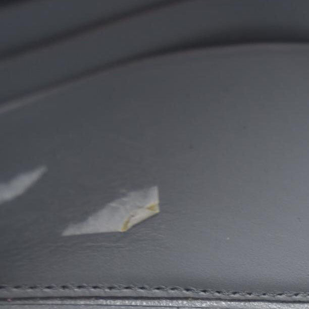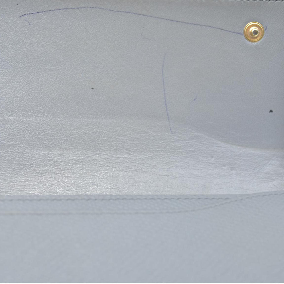The exterior is rubbed with scratches. There are rubbed marks on the inside. There are pen marks on the inside. The clip button is loose and cannot be closed.
