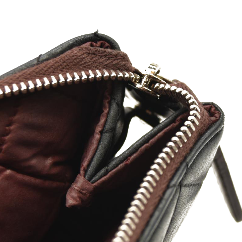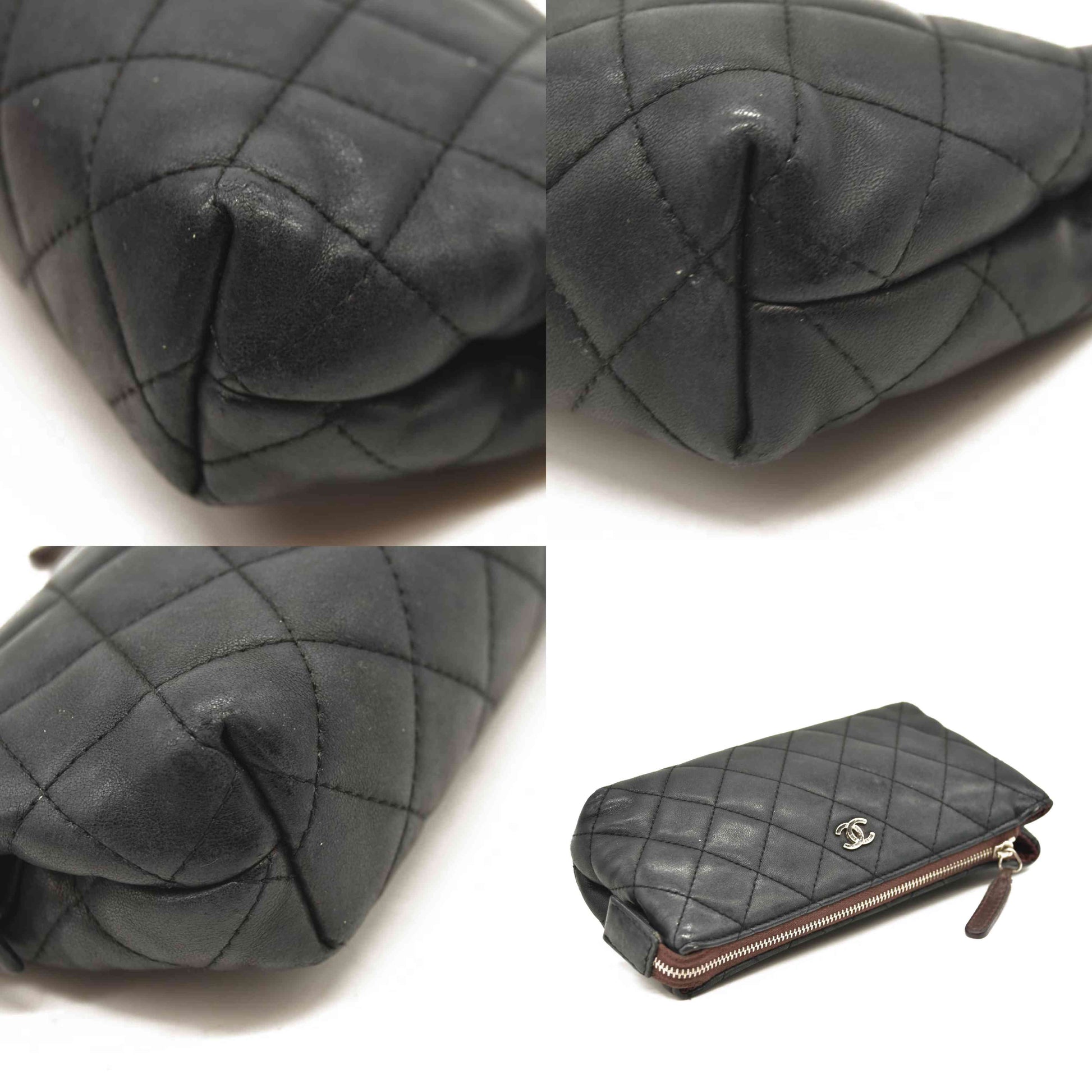 This is an authentic CHANEL Lambskin Quilted Cosmetic Case in Black. This pouch is crafted of diamond quilted lambskin leather in black with a small polished gold Chanel CC logo on the front. The top zipper opens to a burgudy fabric interior.