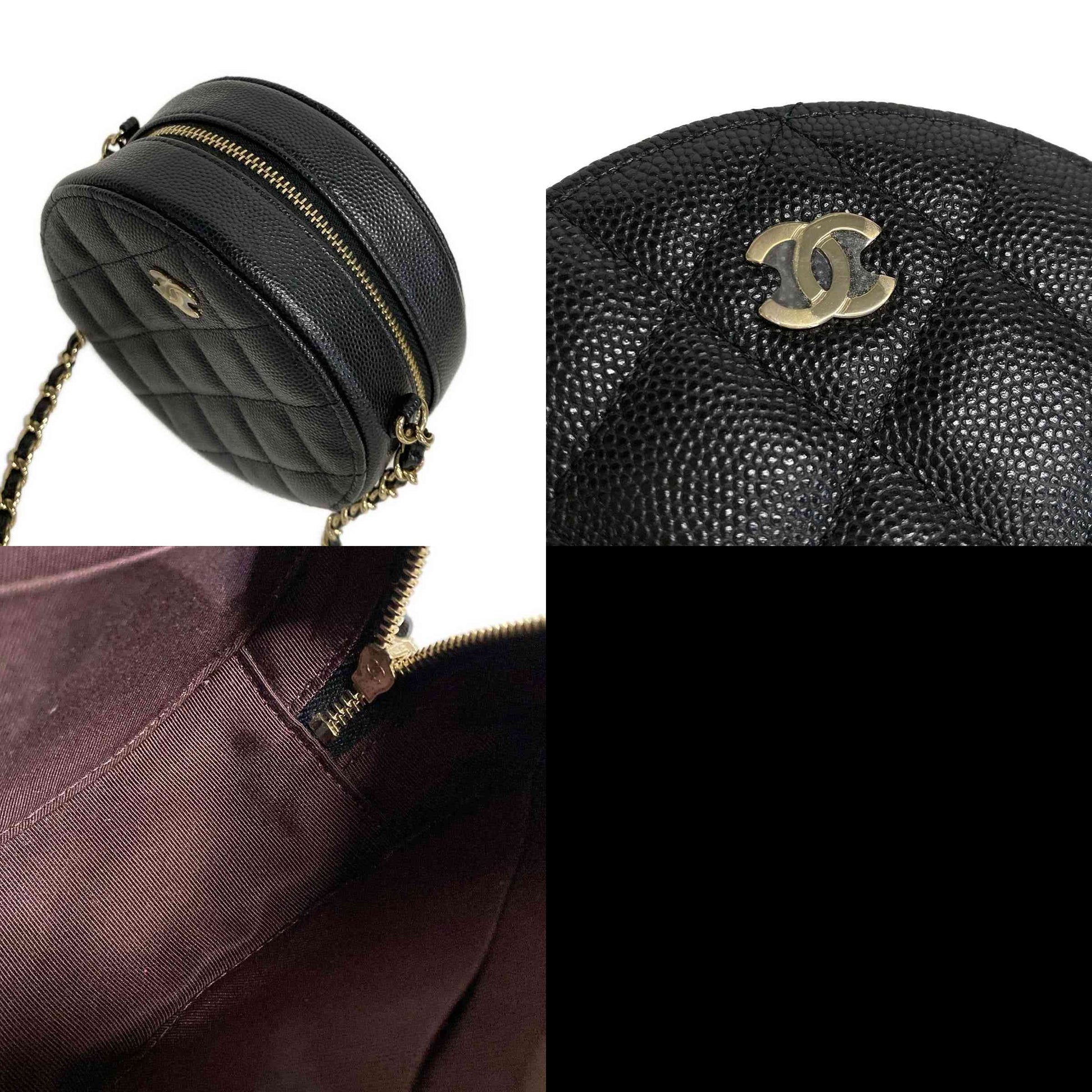 Chanel Caviar Quilted Round Clutch With Chain Black 30*