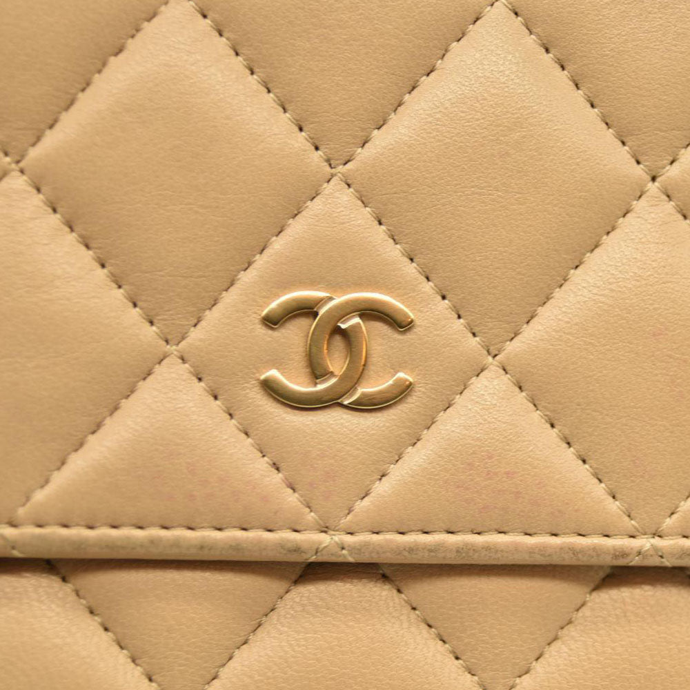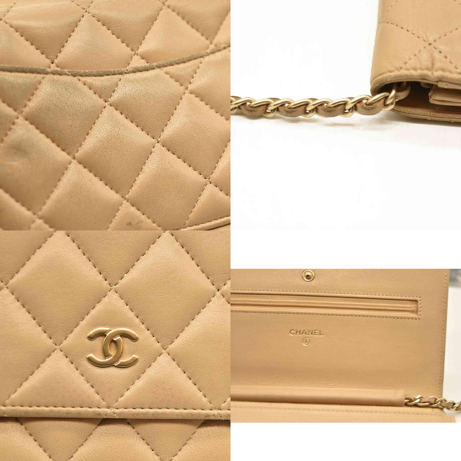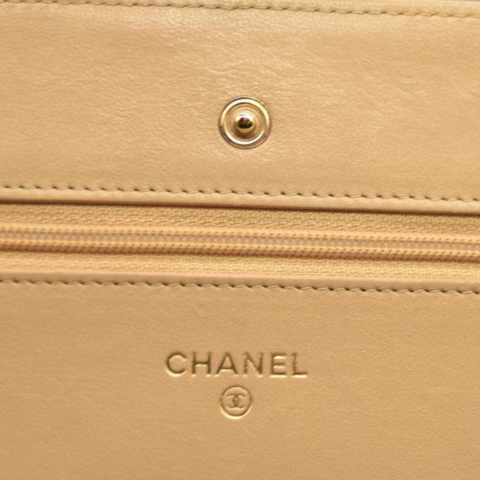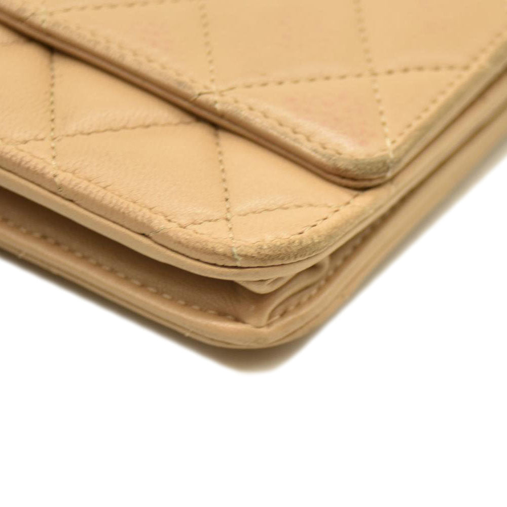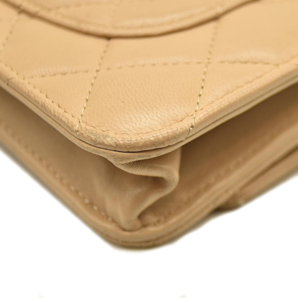 Chanel Cloudy Pearly Goatskin Quilted Wallet on Chain WOC Beige 18*