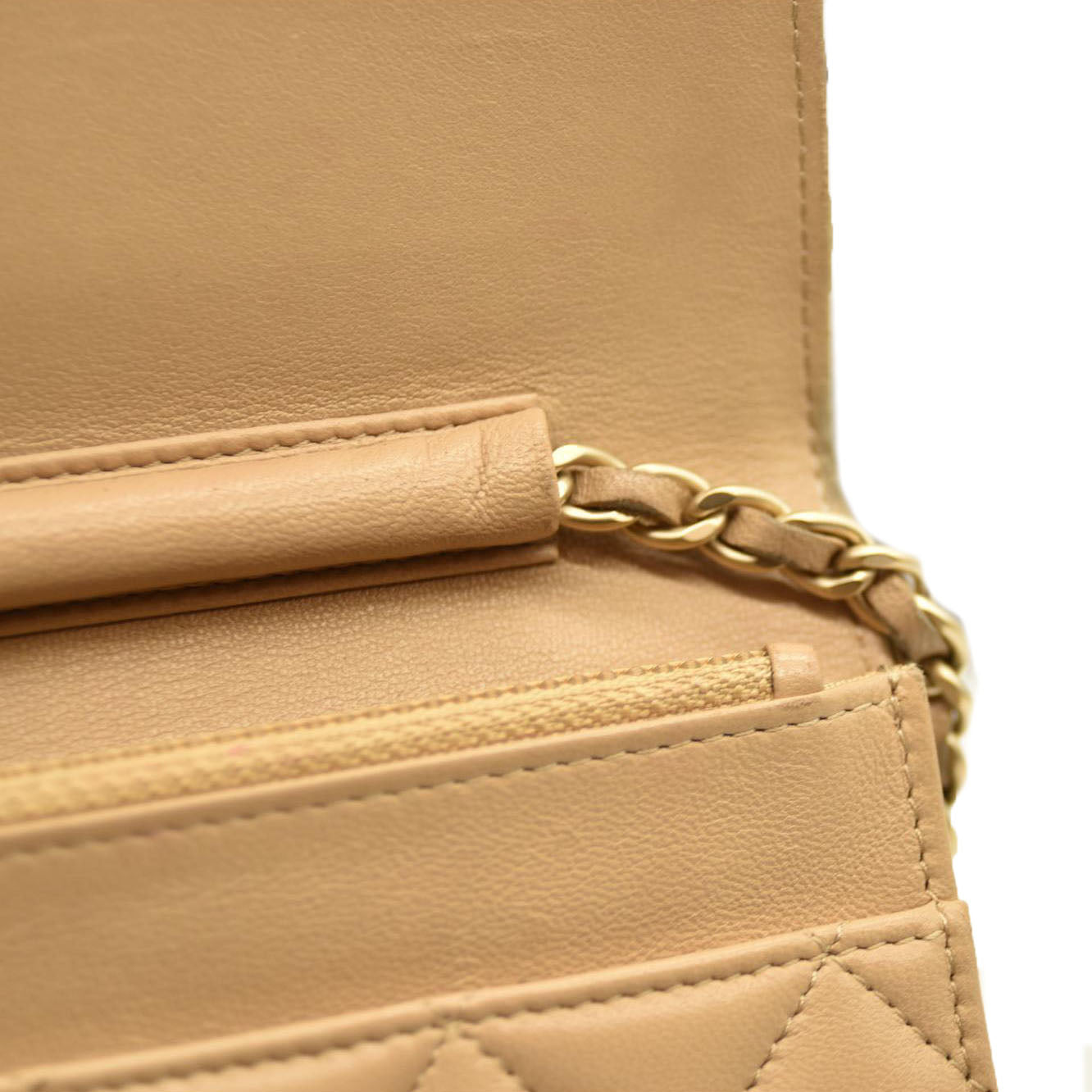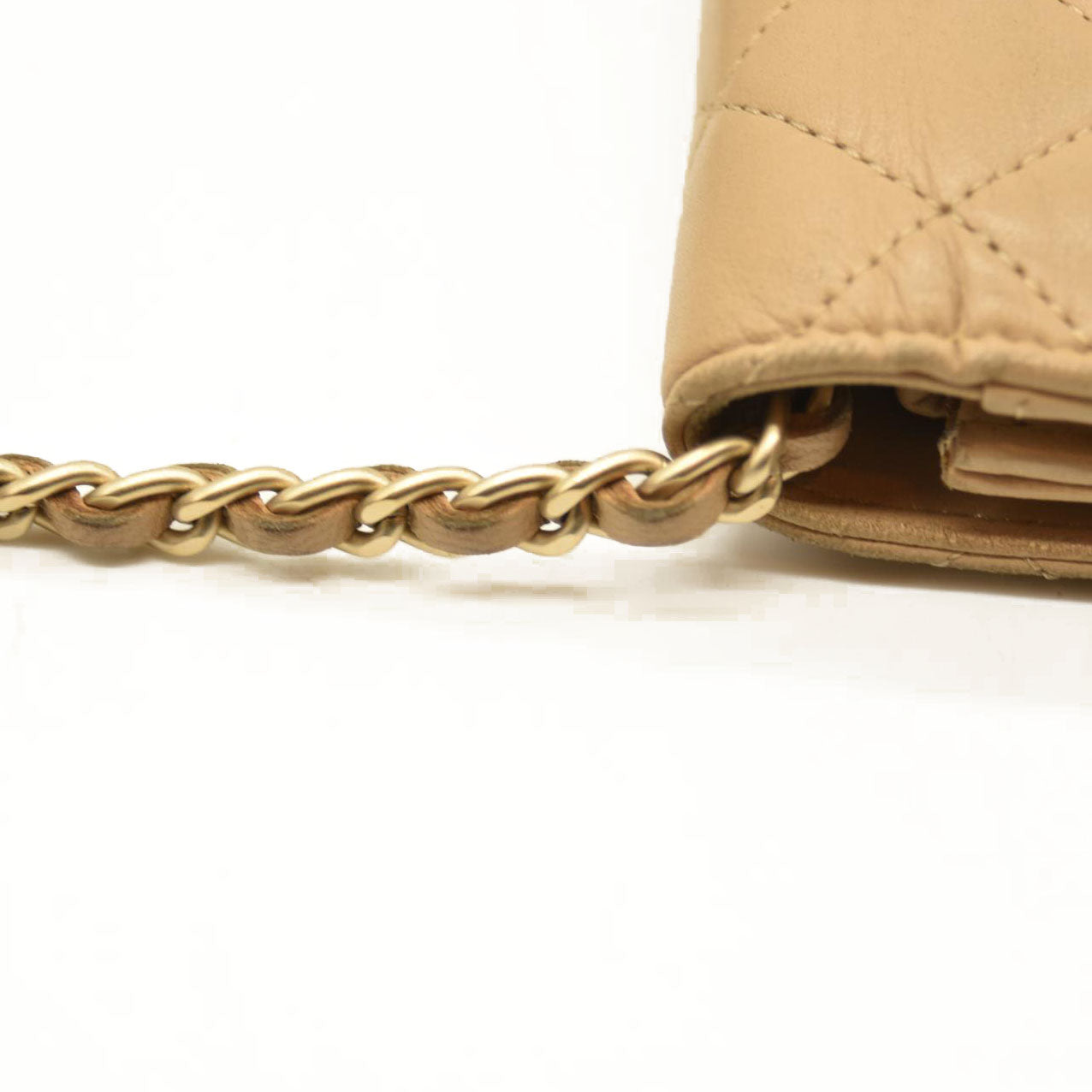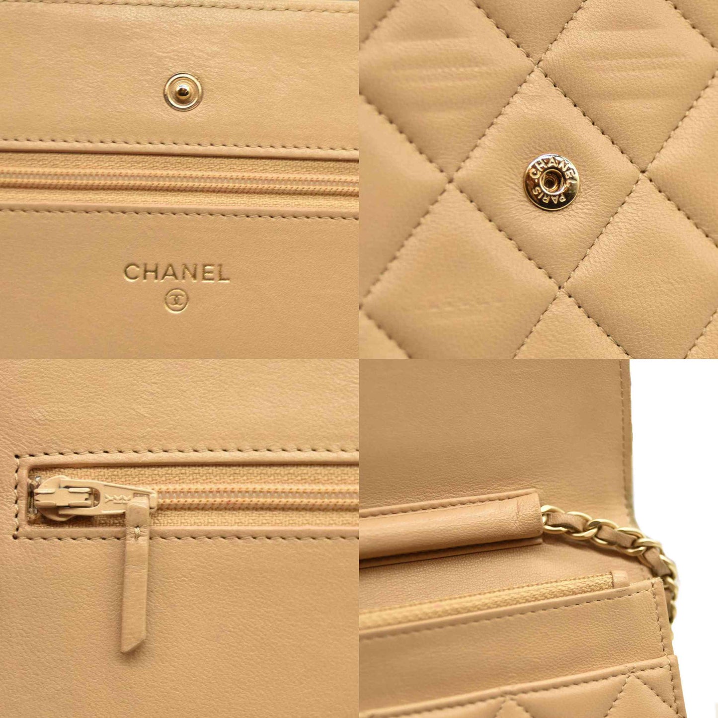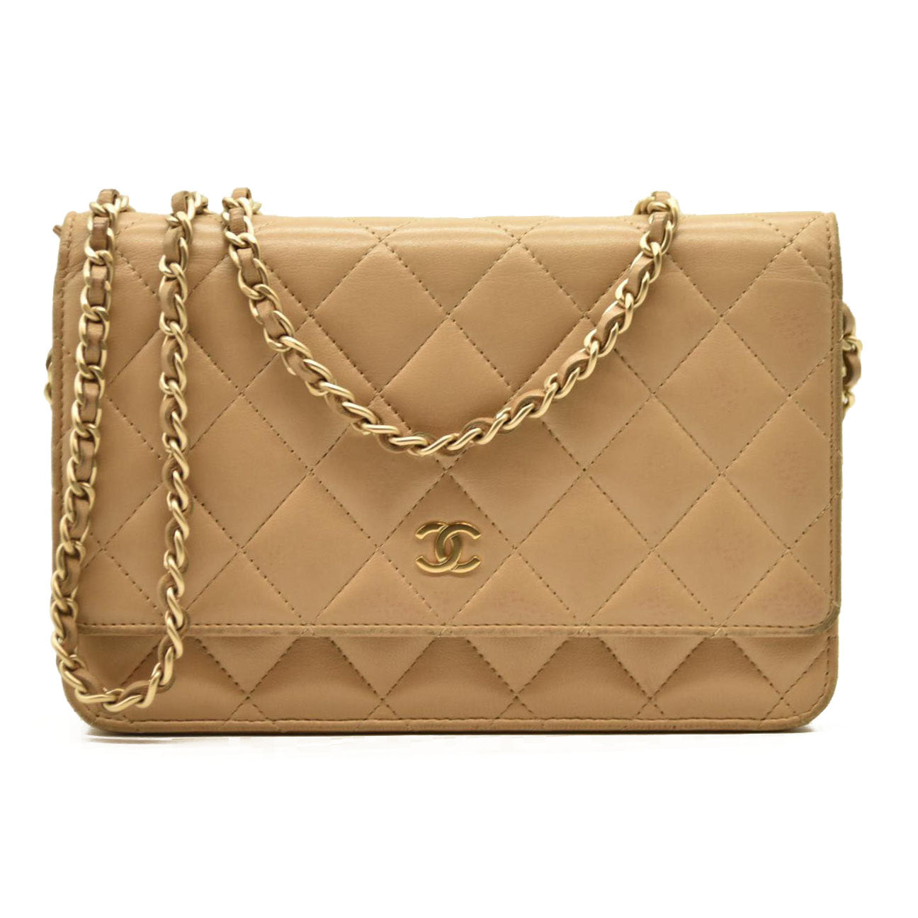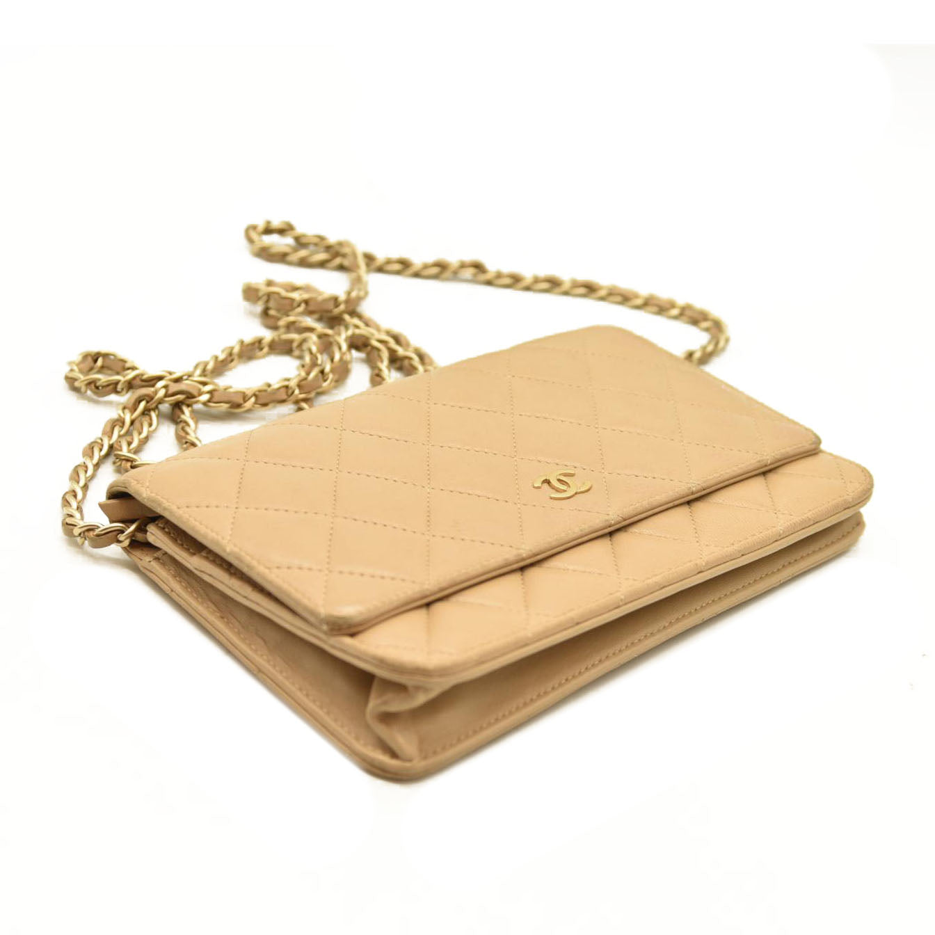 Chanel Cloudy Pearly Goatskin Quilted Wallet on Chain WOC Beige 18*