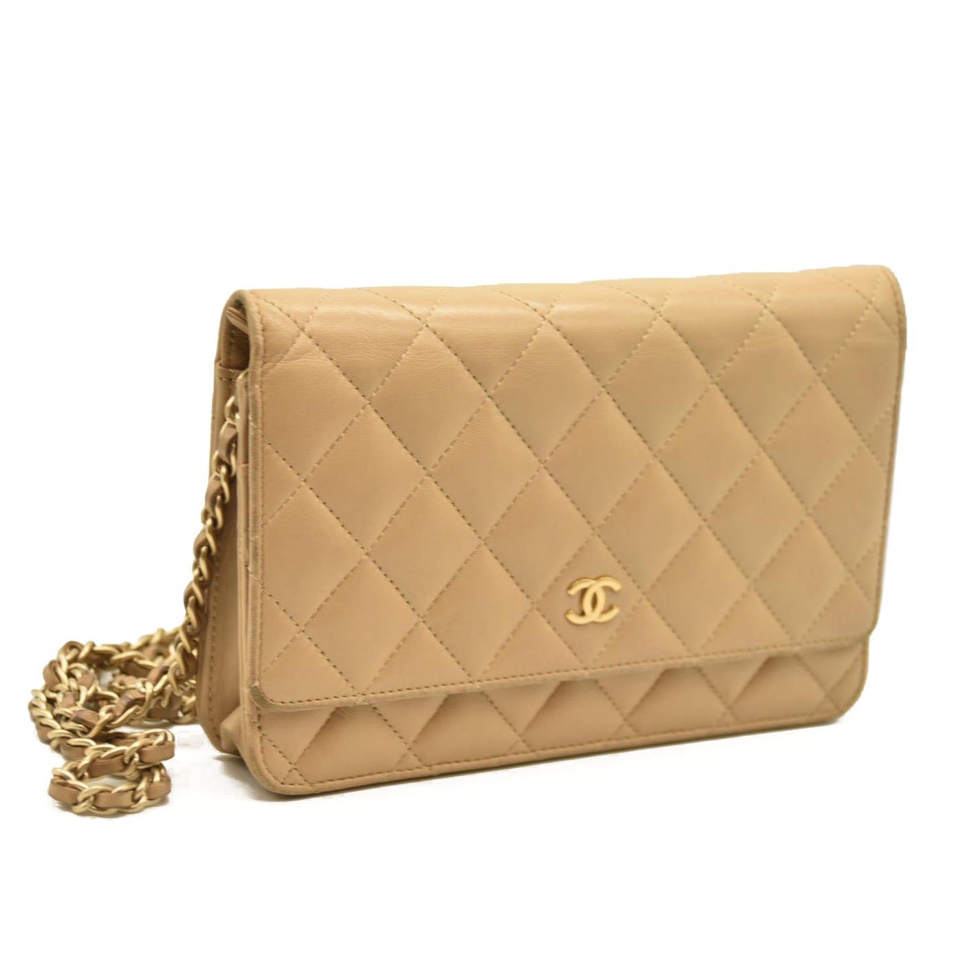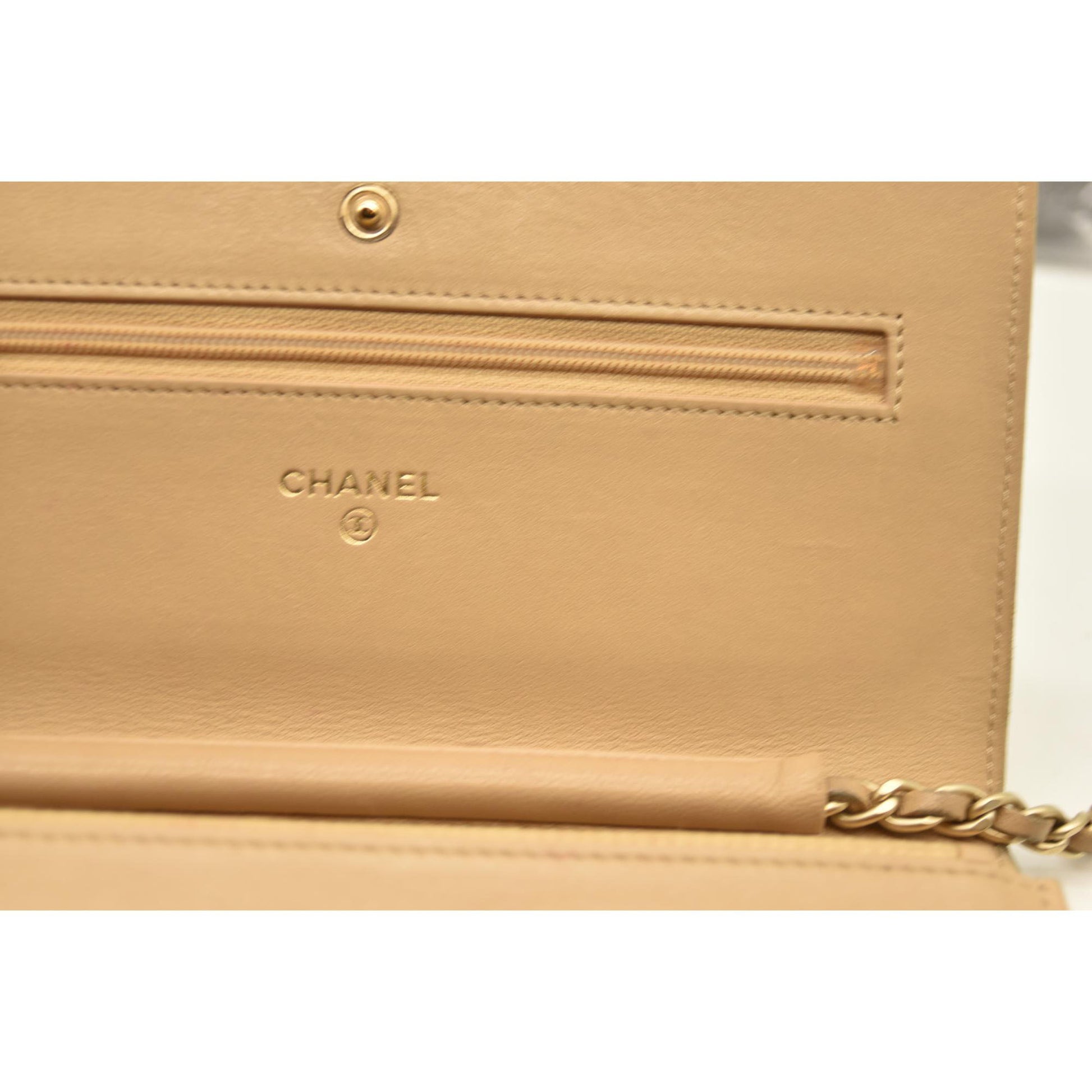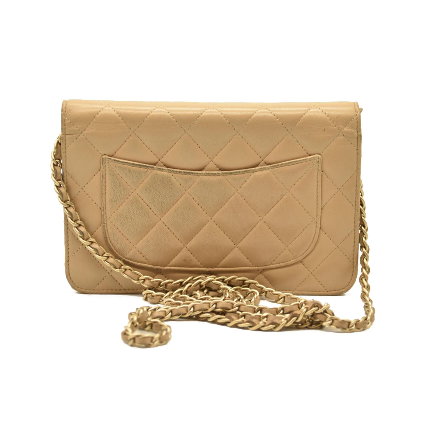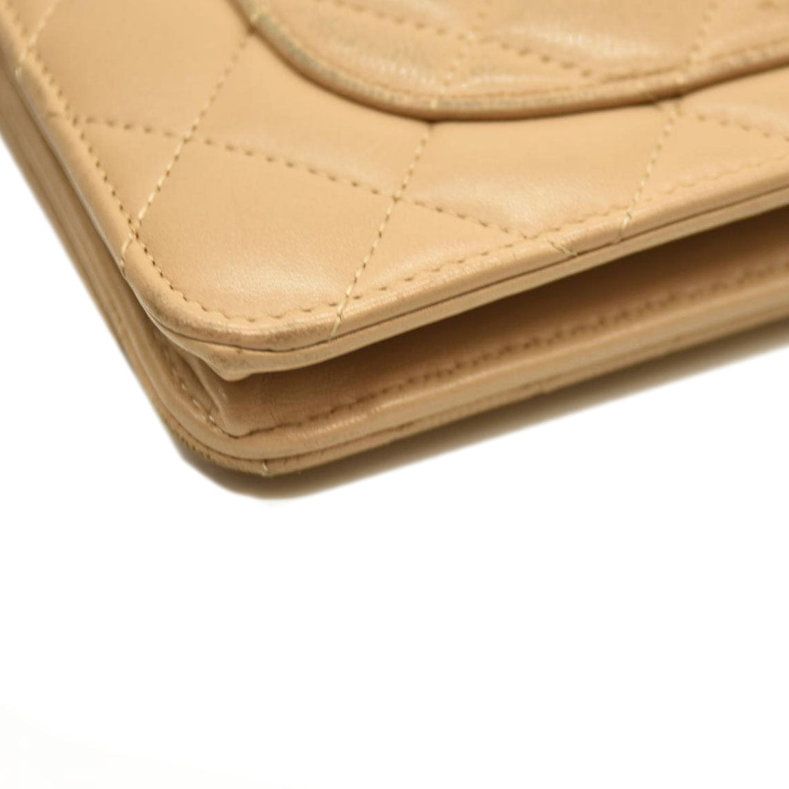 Chanel Cloudy Pearly Goatskin Quilted Wallet on Chain WOC Beige 18*