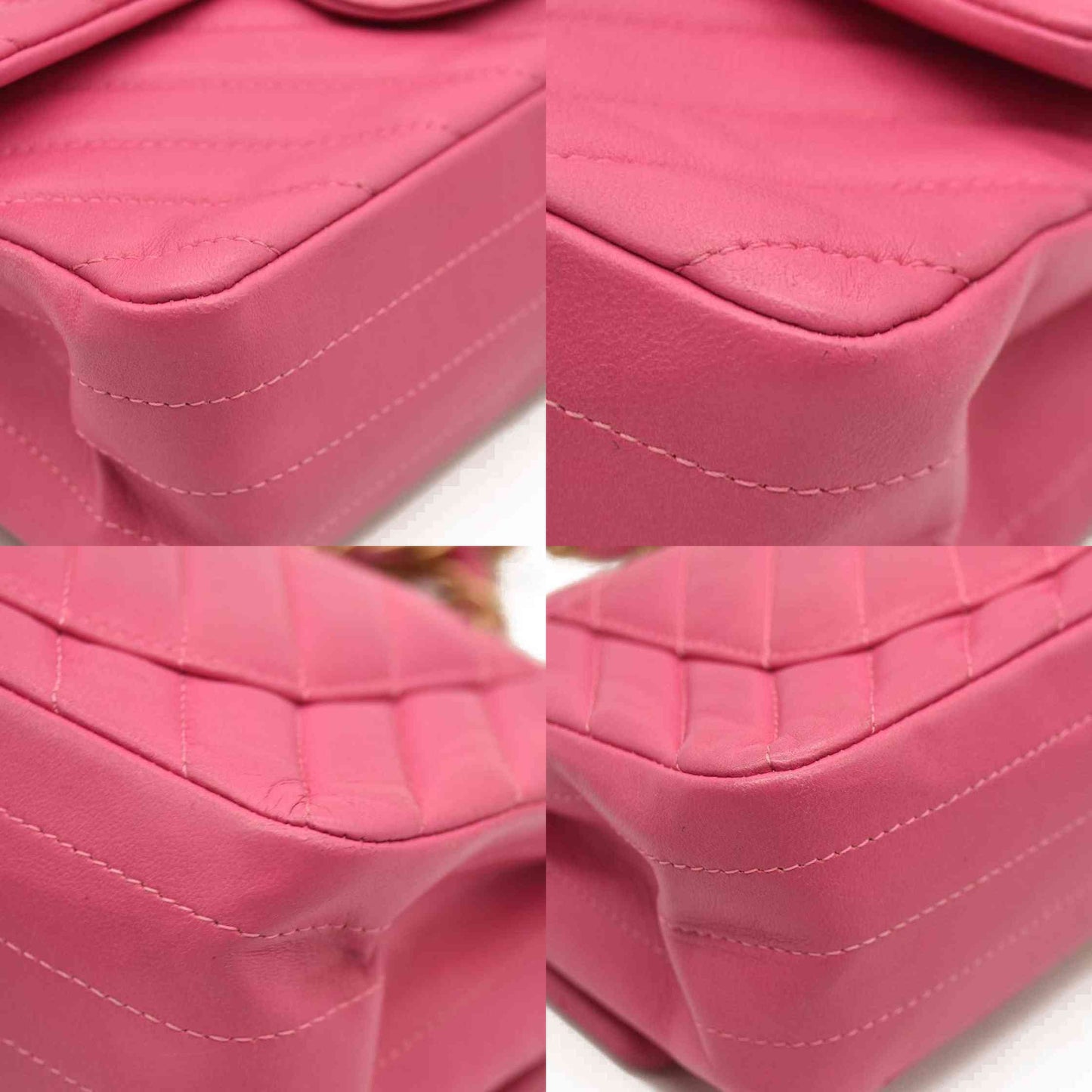 Chanel Lambskin Chevron Quilted Mini Rectangular Flap Dark Pink 21*