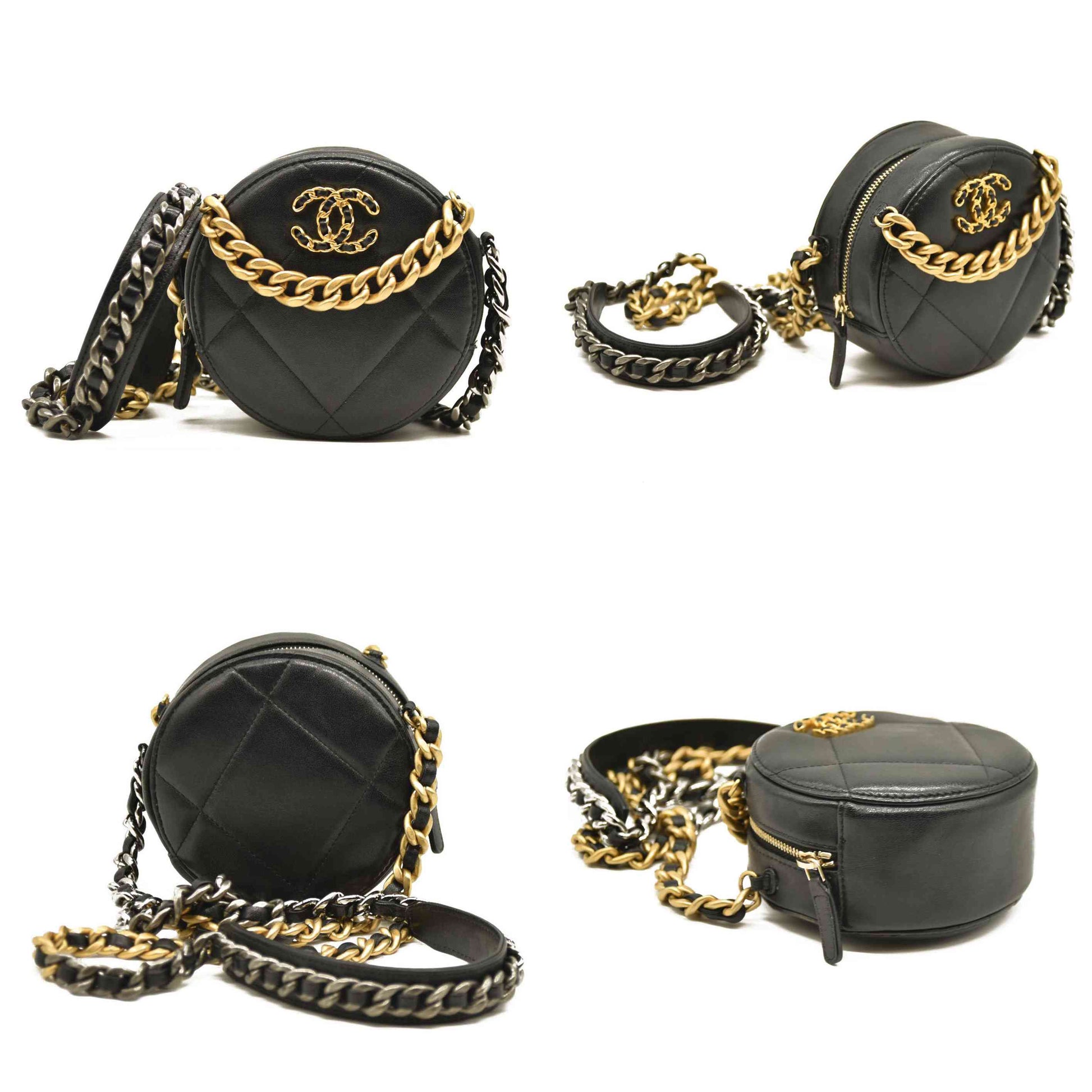Chanel Lambskin Quilted Chanel 19 Round Clutch With Chain Black 31*