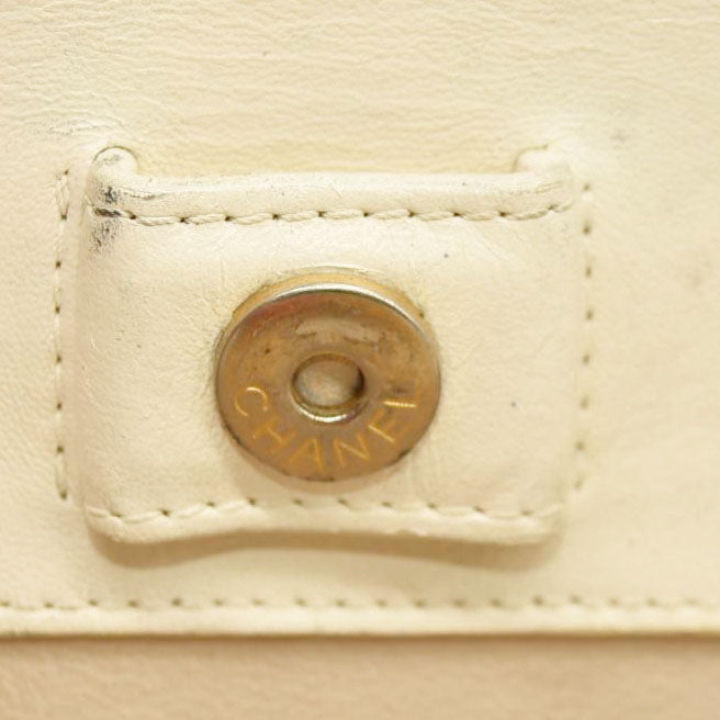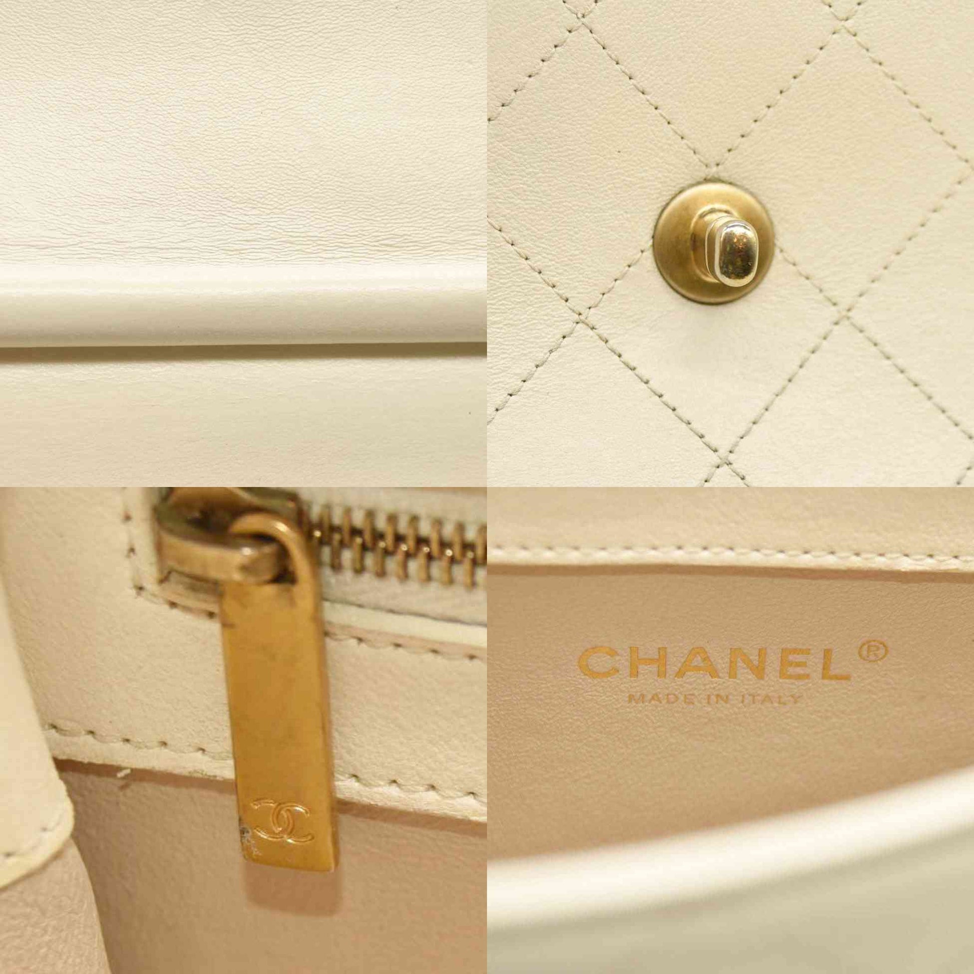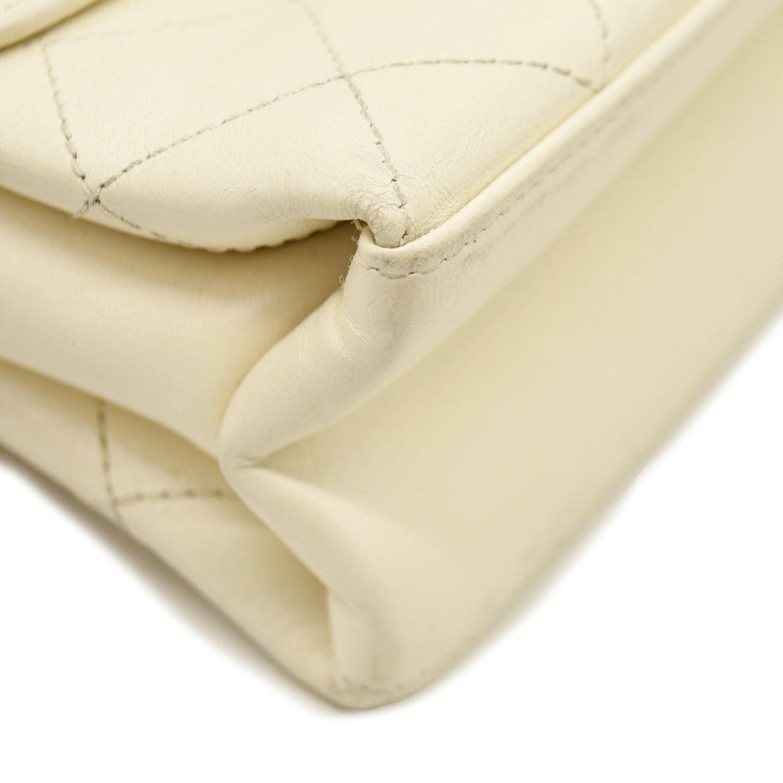 This is an authentic CHANEL Lambskin Quilted Coco Luxe Top Handle Flap in White. This chic shoulder bag is crafted of diamond-quilted calfskin leather in white. The bag features an aged gold bar frame at the top, with a rolled leather top handle and a matching gold chain-link shoulder strap. The front flap opens with a classic CC turn-lock to a partitioned beige fabric interior with zipper and patch pockets.