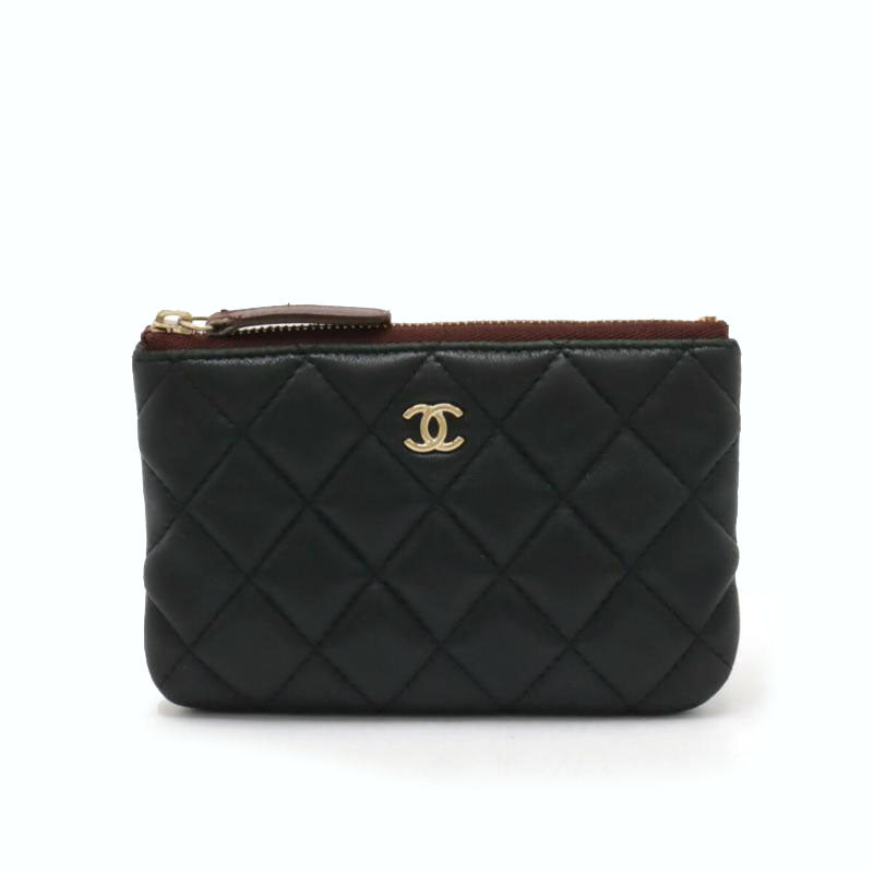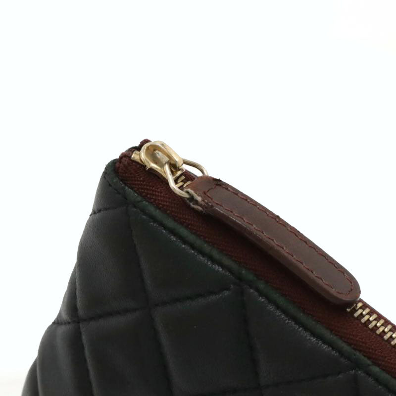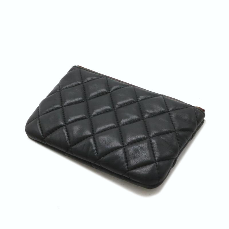 This is an authentic CHANEL Lambskin Quilted Small Cosmetic Case in Black. This chic clutch is crafted of diamond quilted lambskin leather in black with a small Chanel CC logo in silver. The top zipper opens to a burgundy quilted nylon interior.