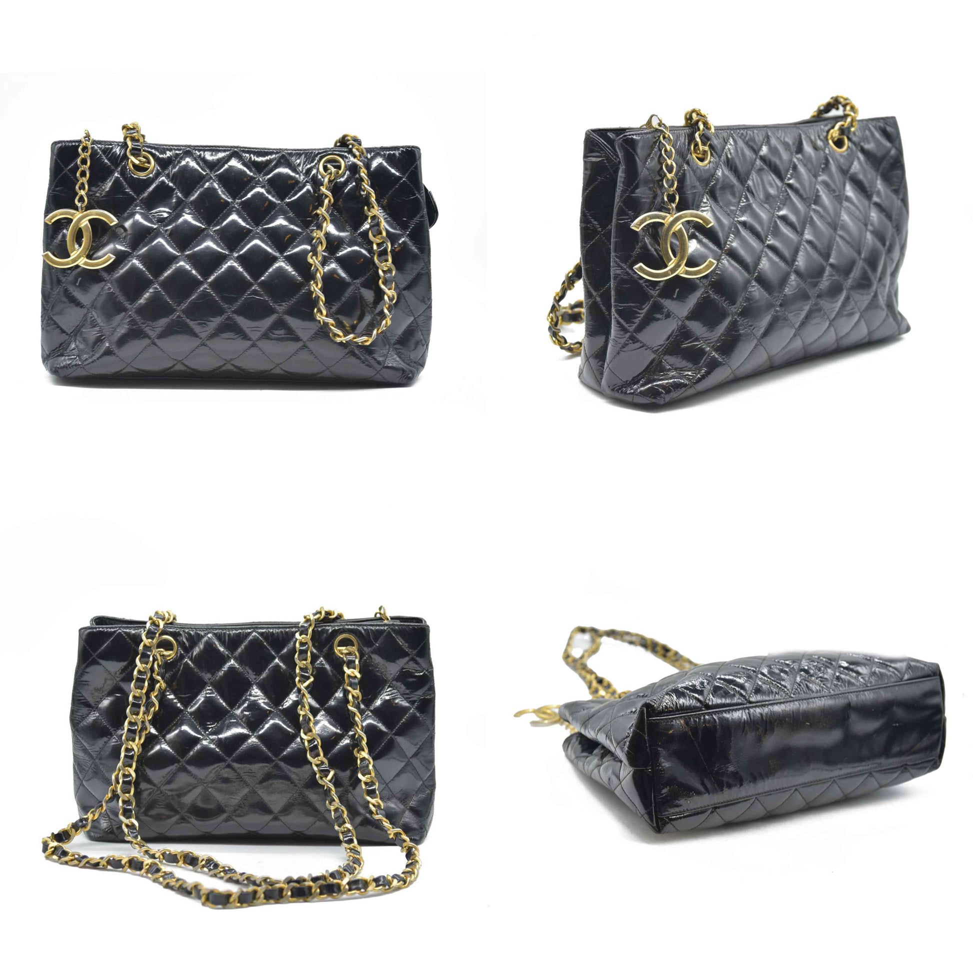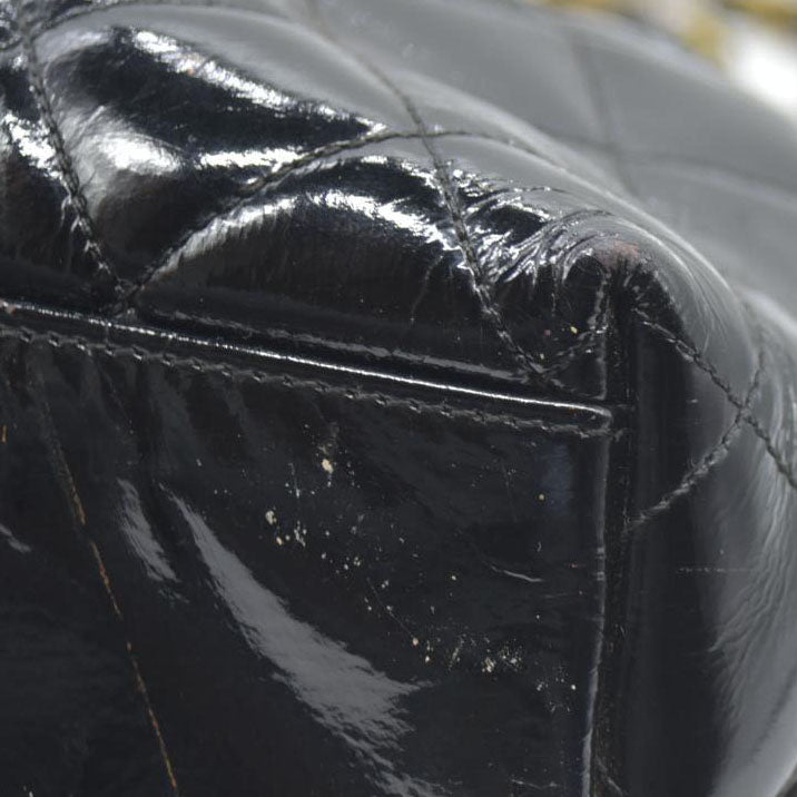 CHANEL Matelasse Chain Shoulder Bag Patent leather Black Gold CC