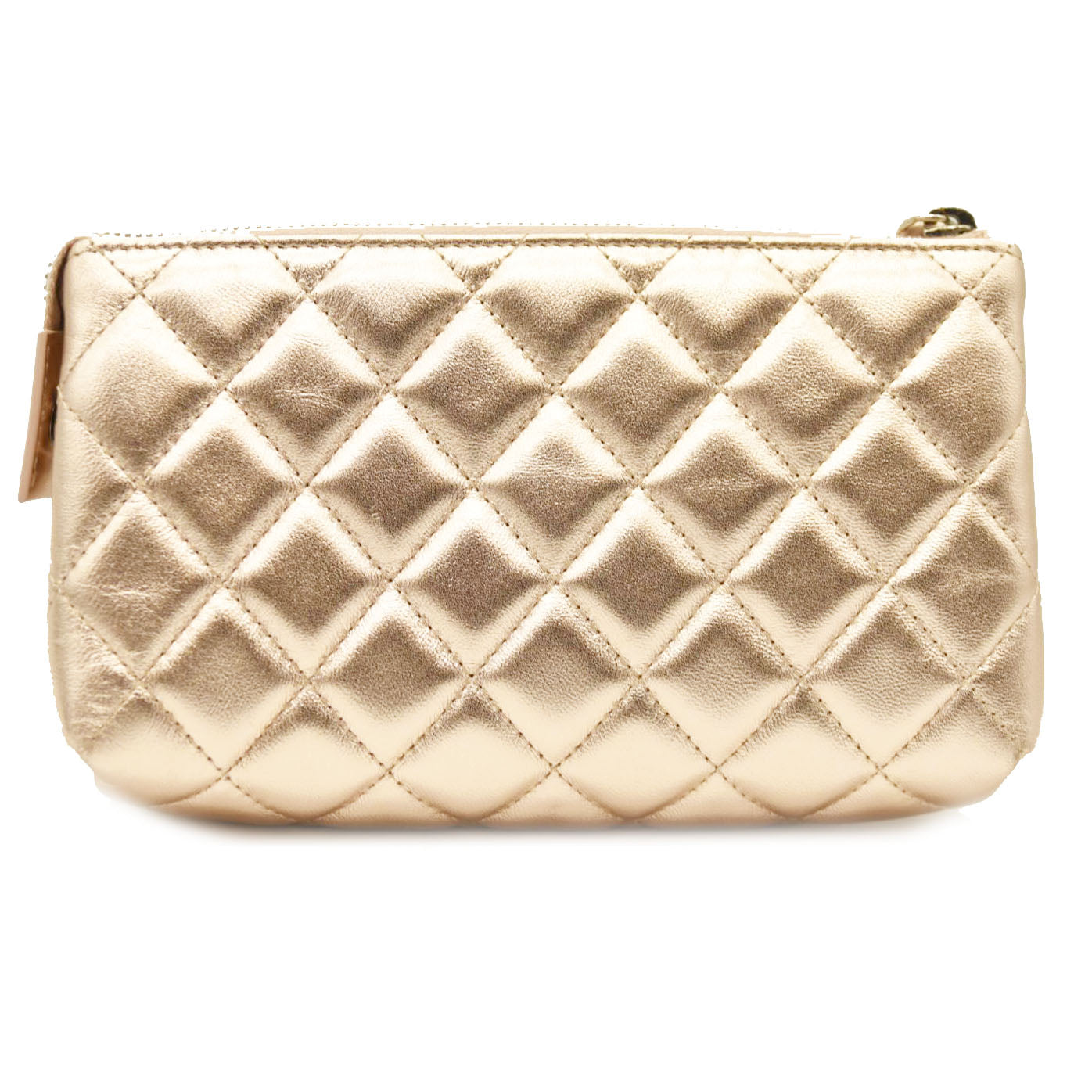 Chanel Metallic Lambskin Quilted Cosmetic Pouch Gold