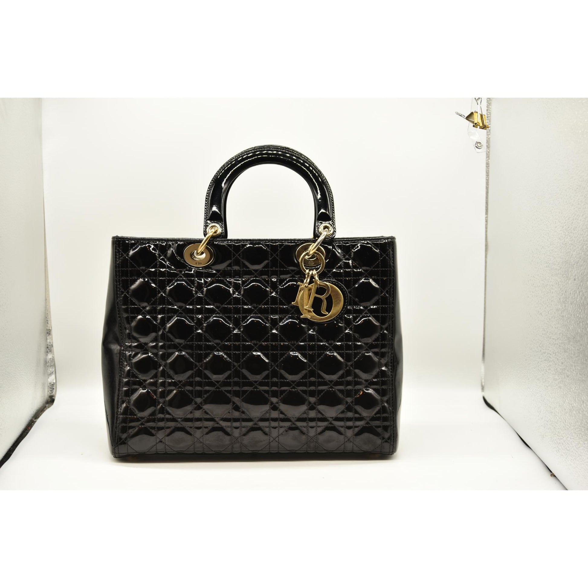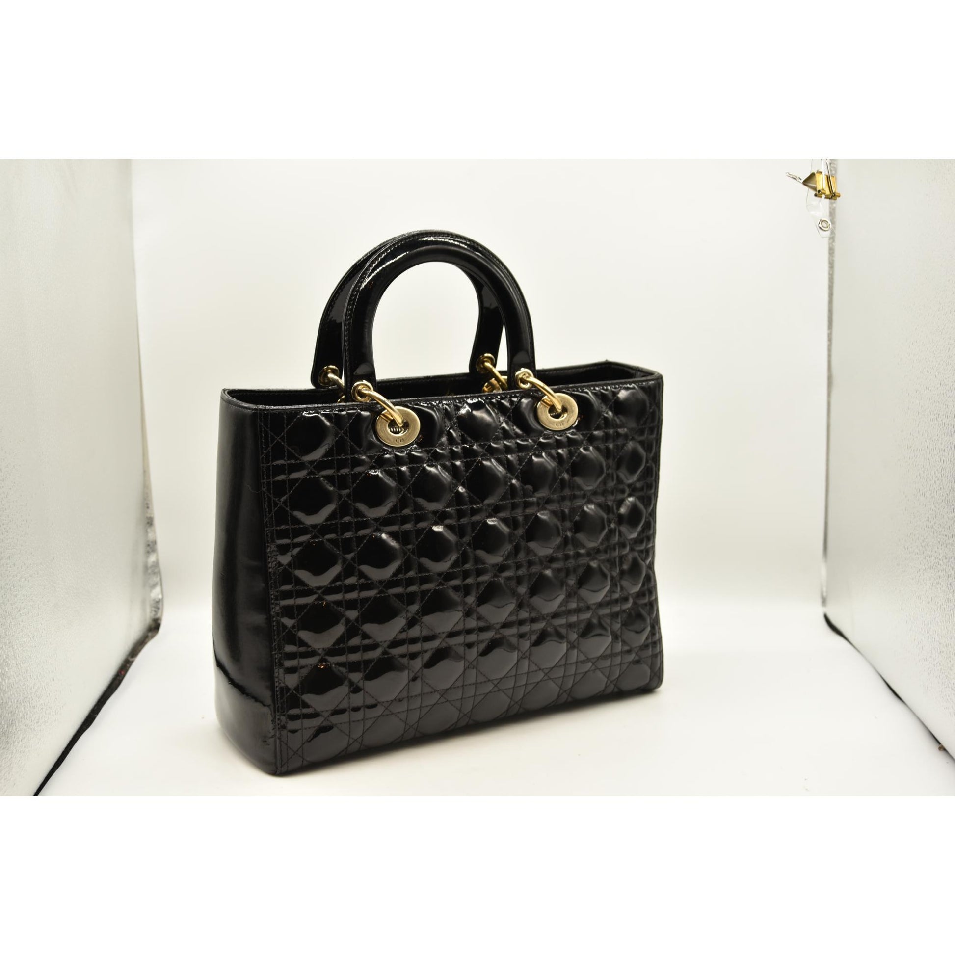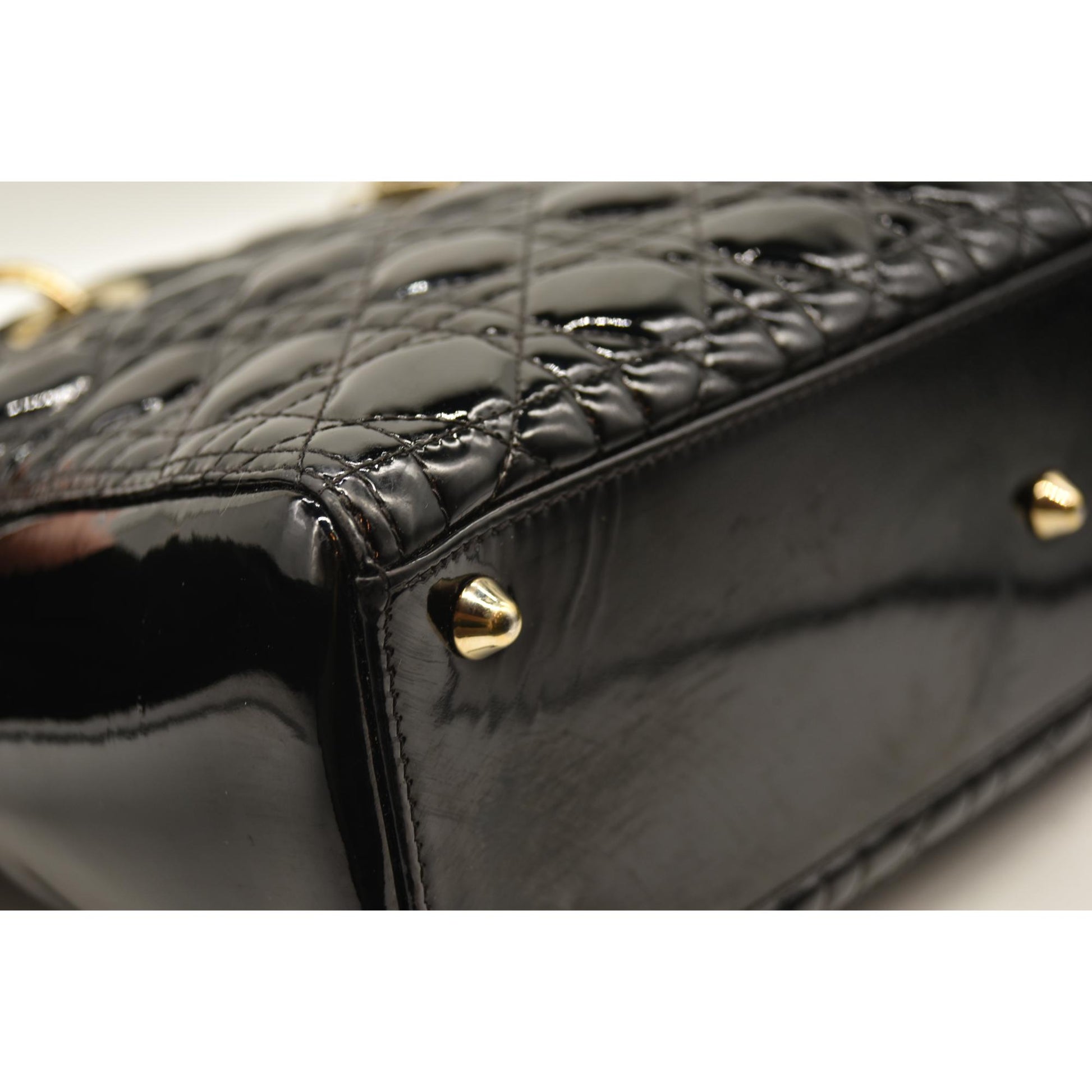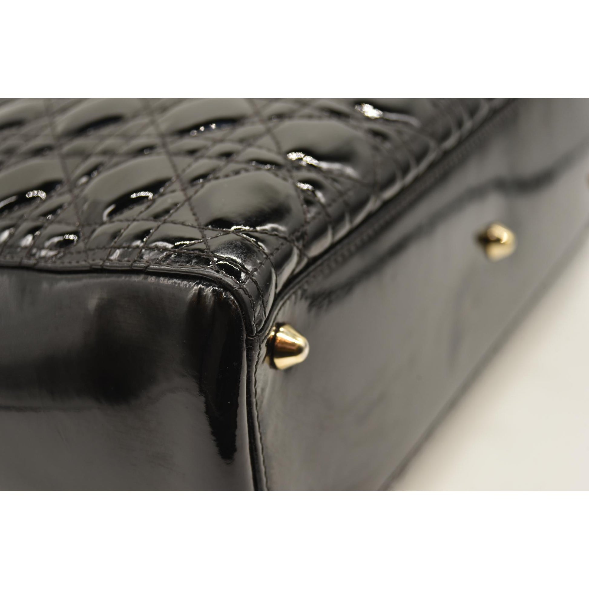 Christian Dior Crinkled Patent Cannage Large Lady Dior Black