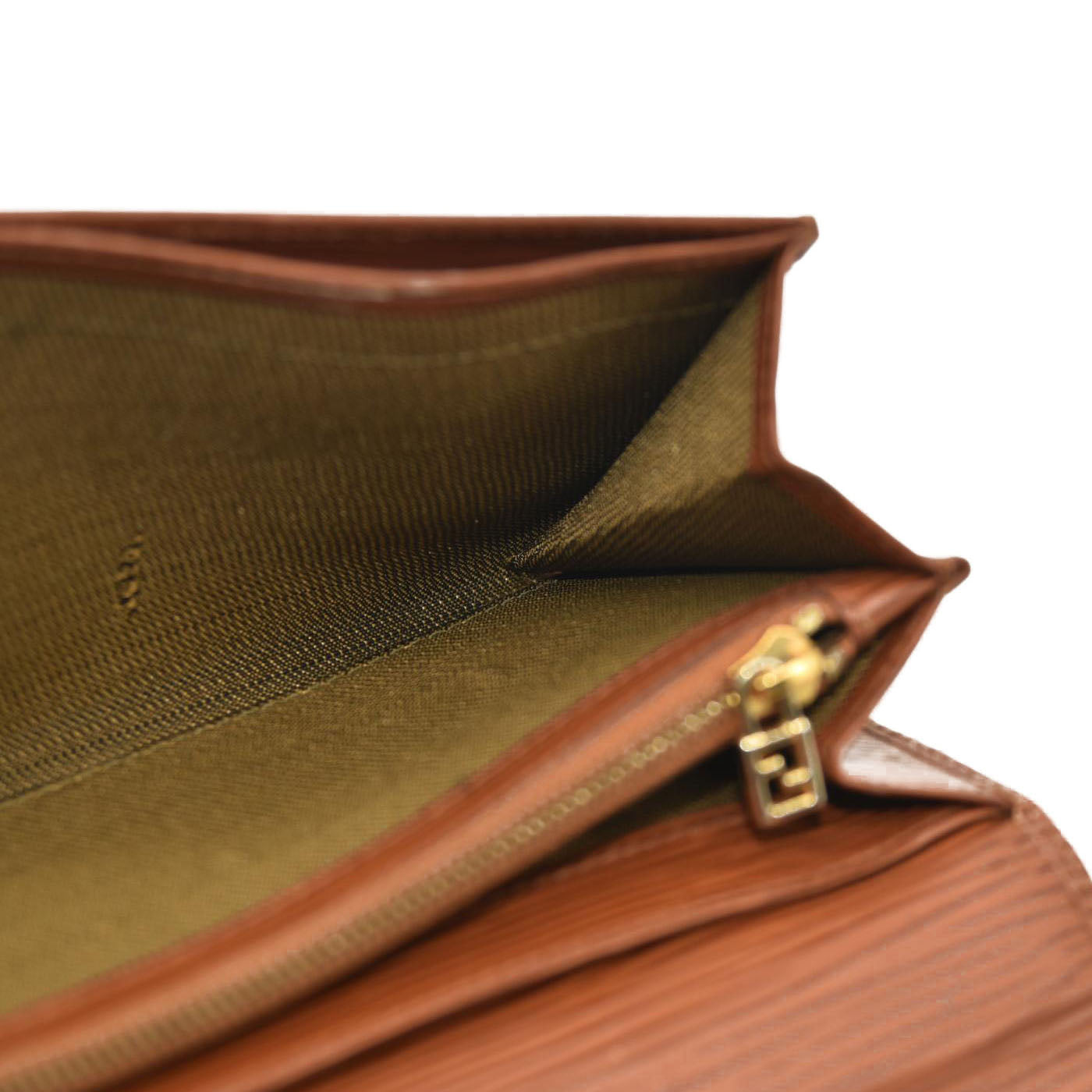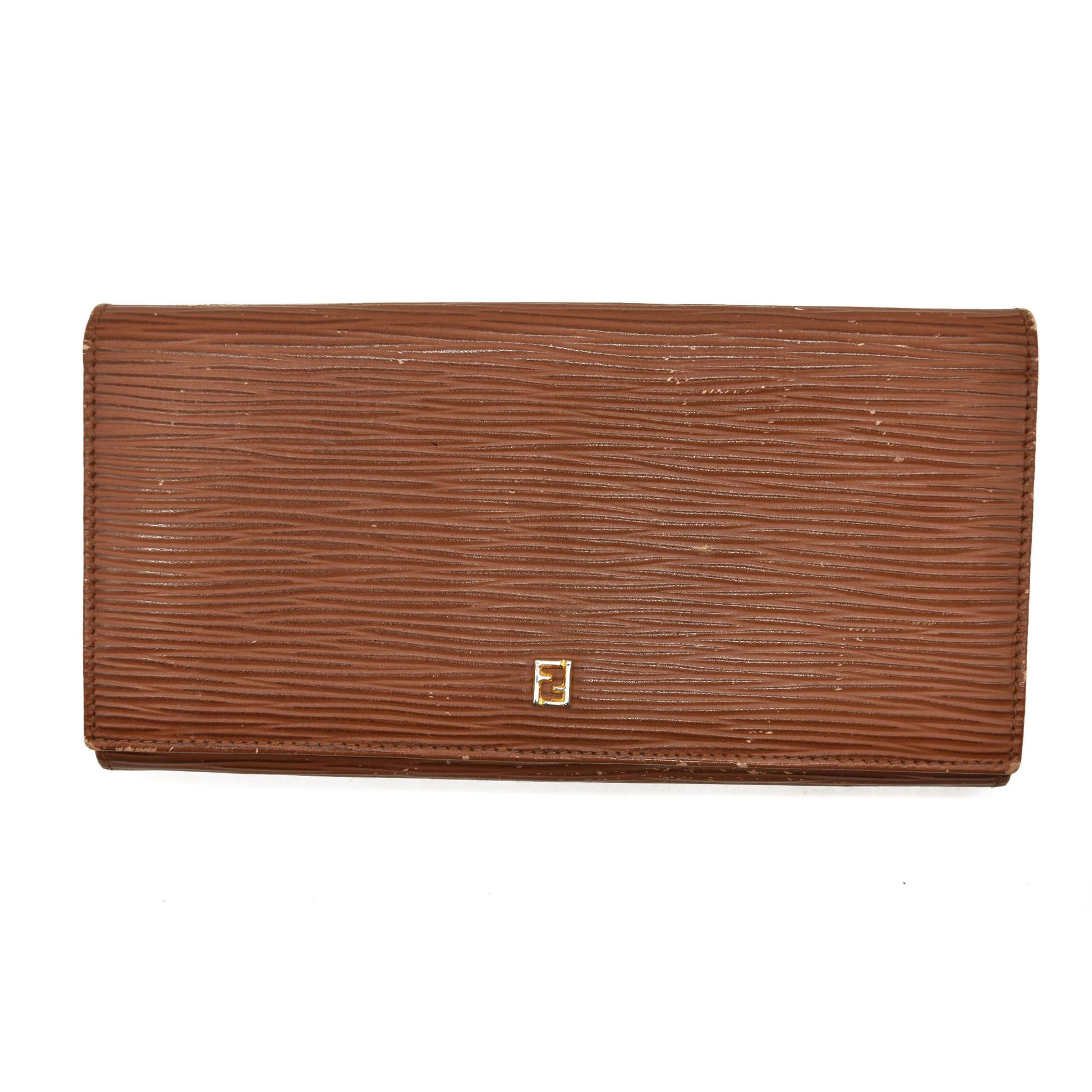 This is an authentic FENDI Vintage Long Wallet Leather in Brown. This stunning wallet is crafted of epi leather in brown. The wallet has a single flap that opens to a matching leather interior with a long pocket, 6 card slot pannels, bill compartments, and a zipped pocket.