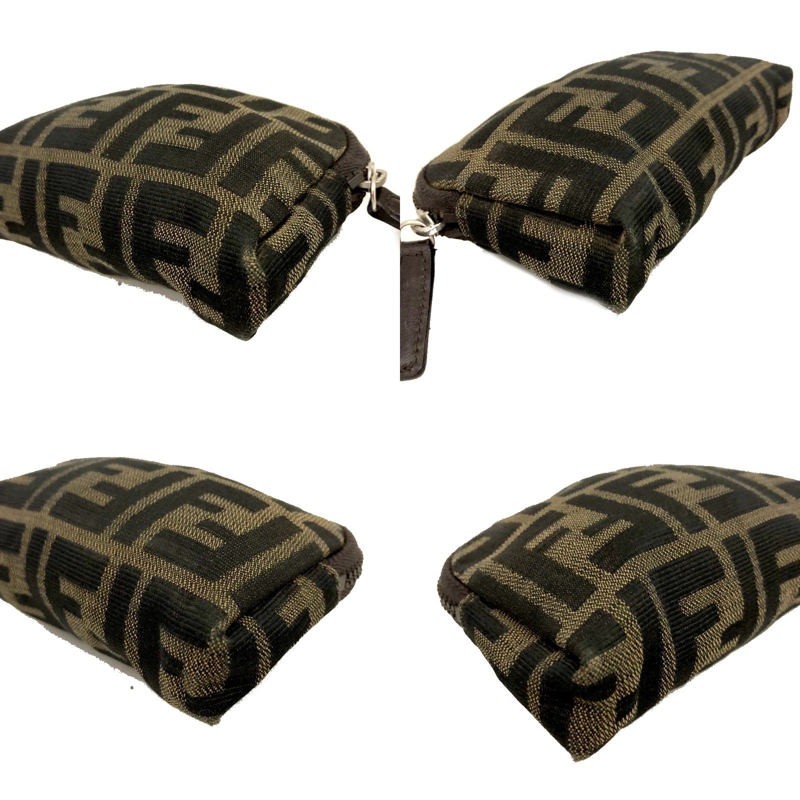 FENDI Zucca Canvas Cosmetic Pouch Bag Khaki