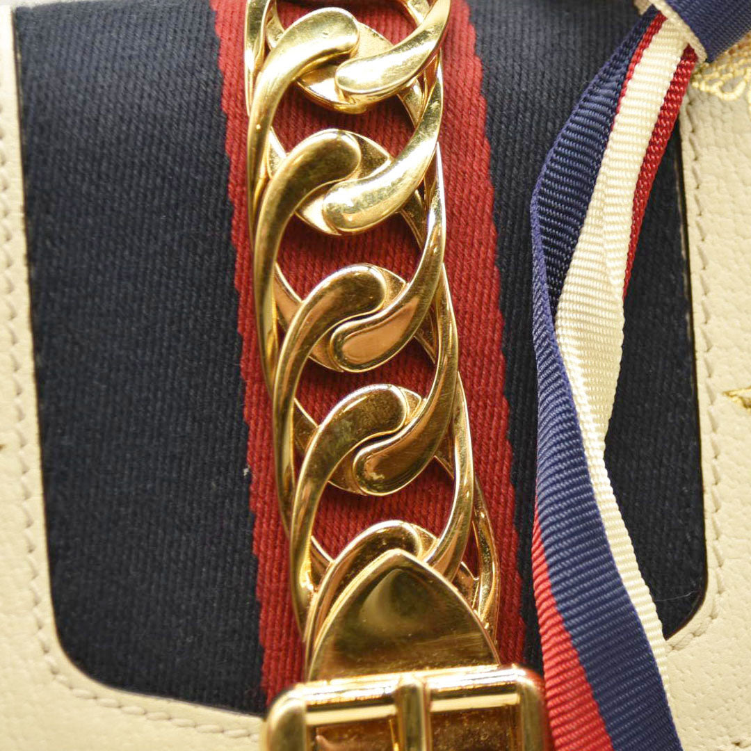 Gucci Calfskin Small Sylvie Shoulder Bag Off White