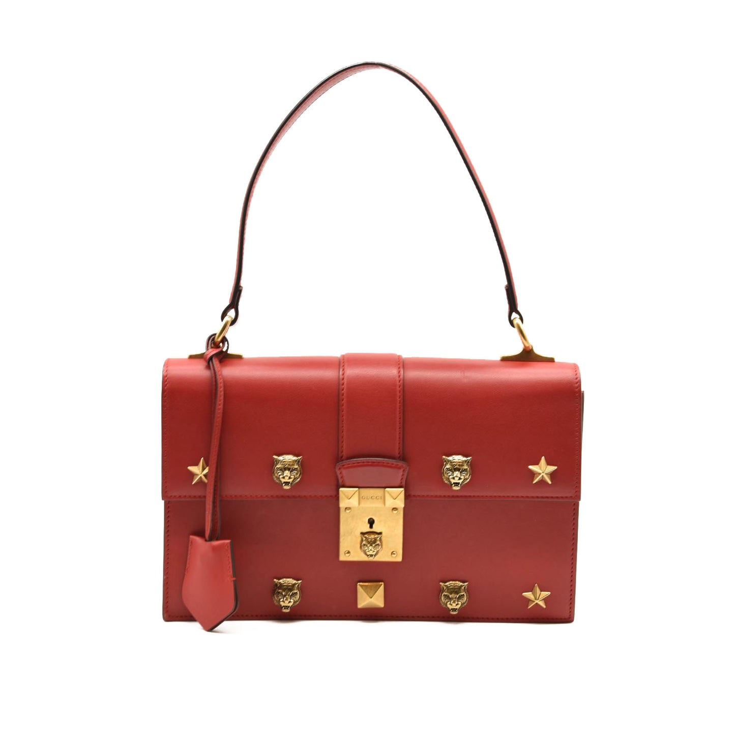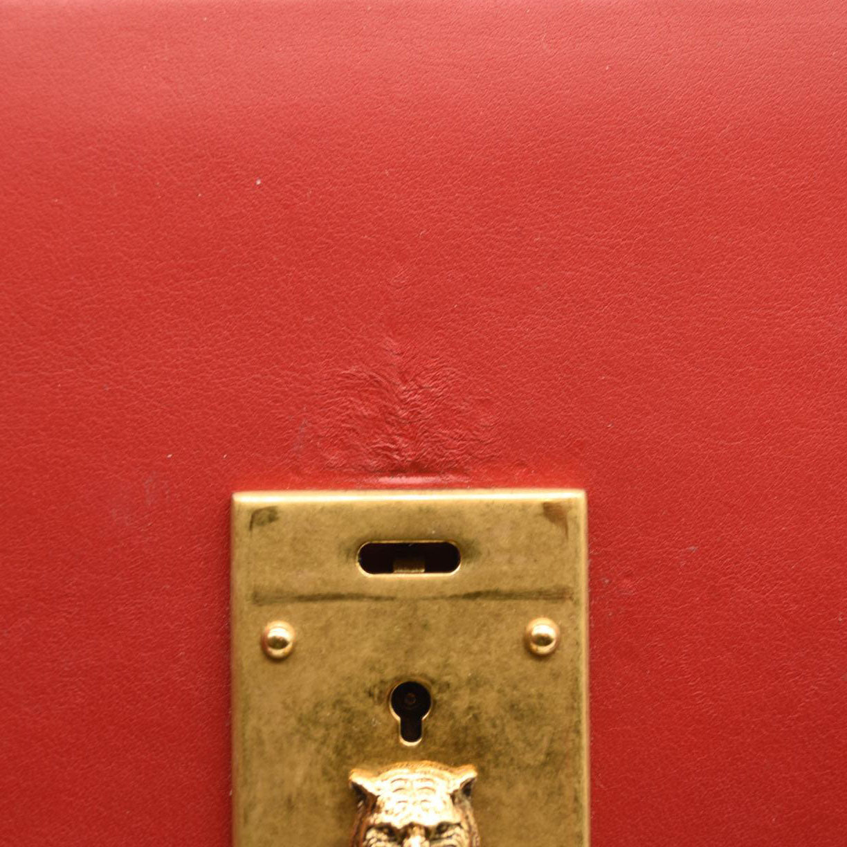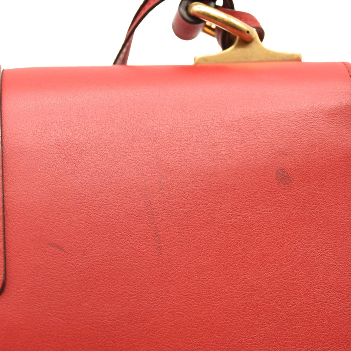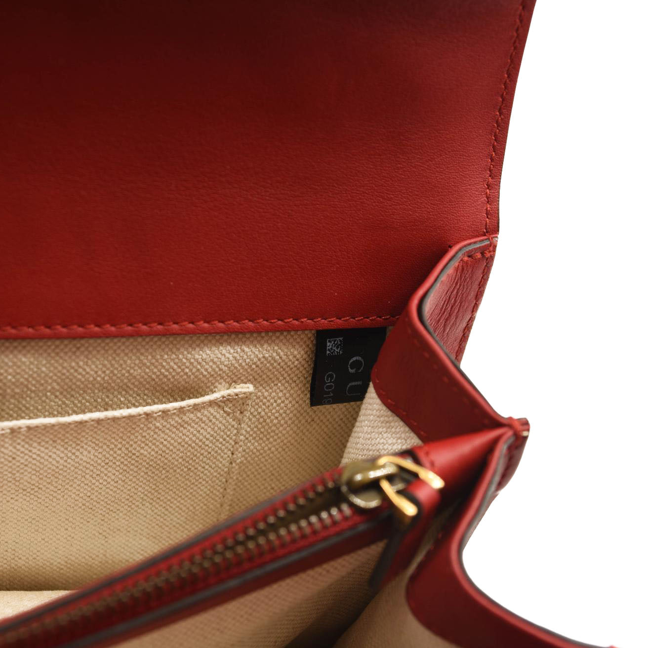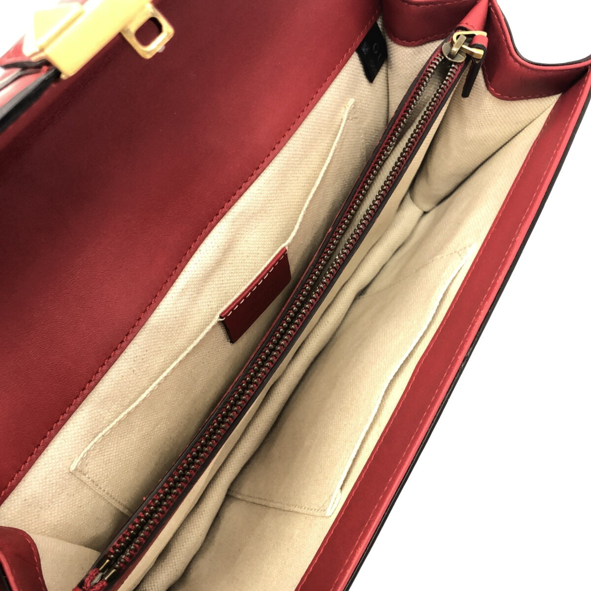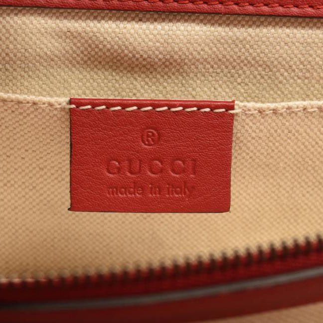 GUCCI Catlock Satchel Handbag Red Gold Leather
