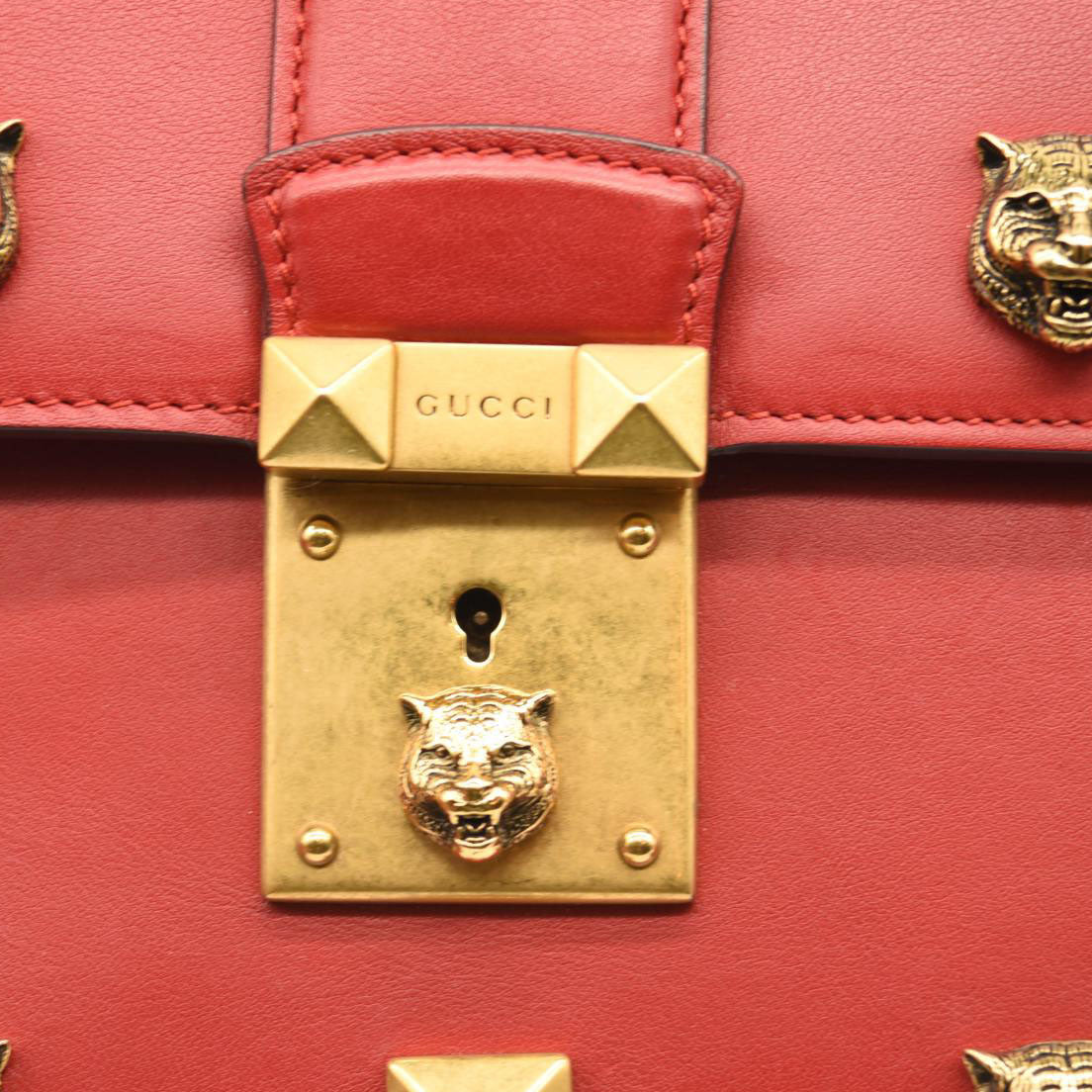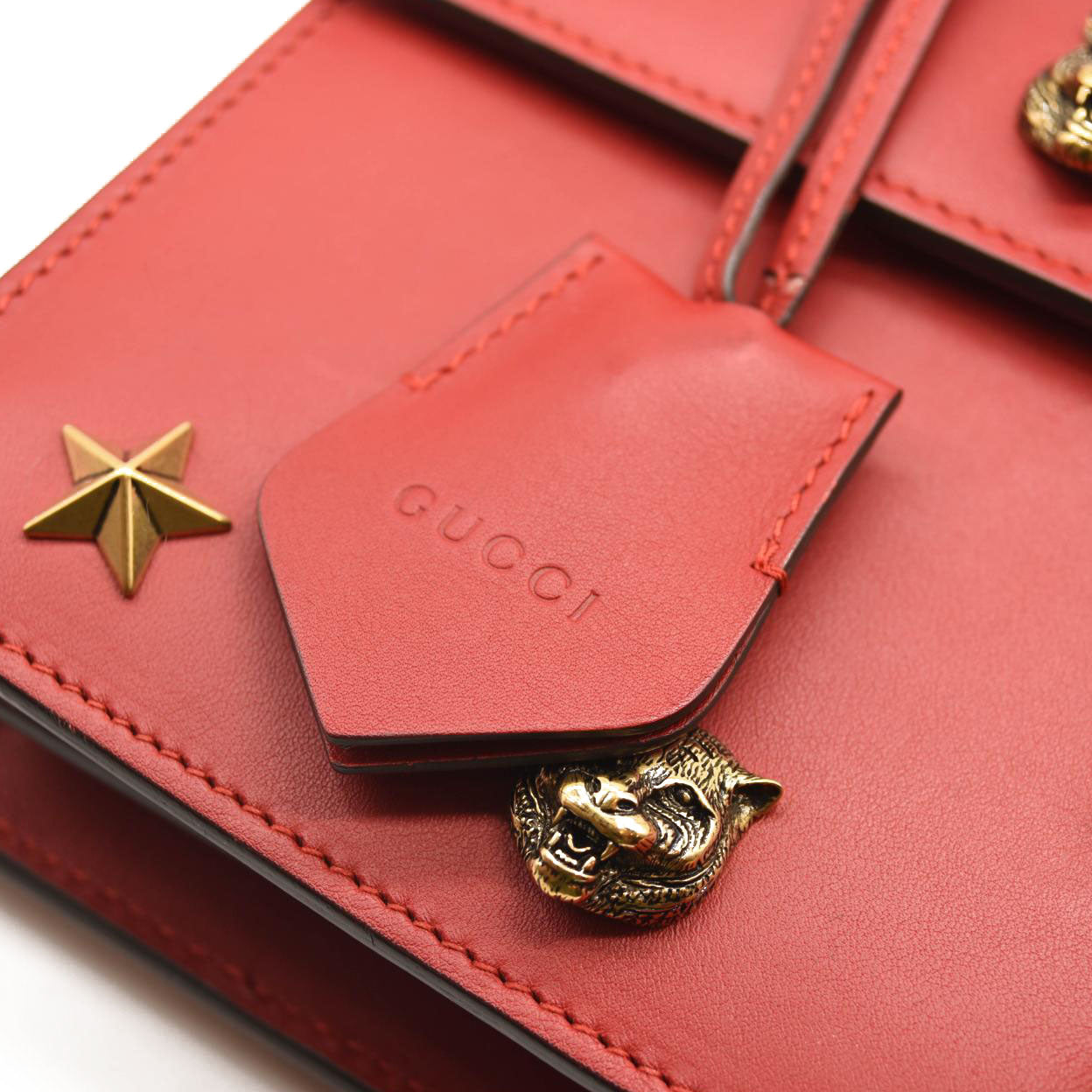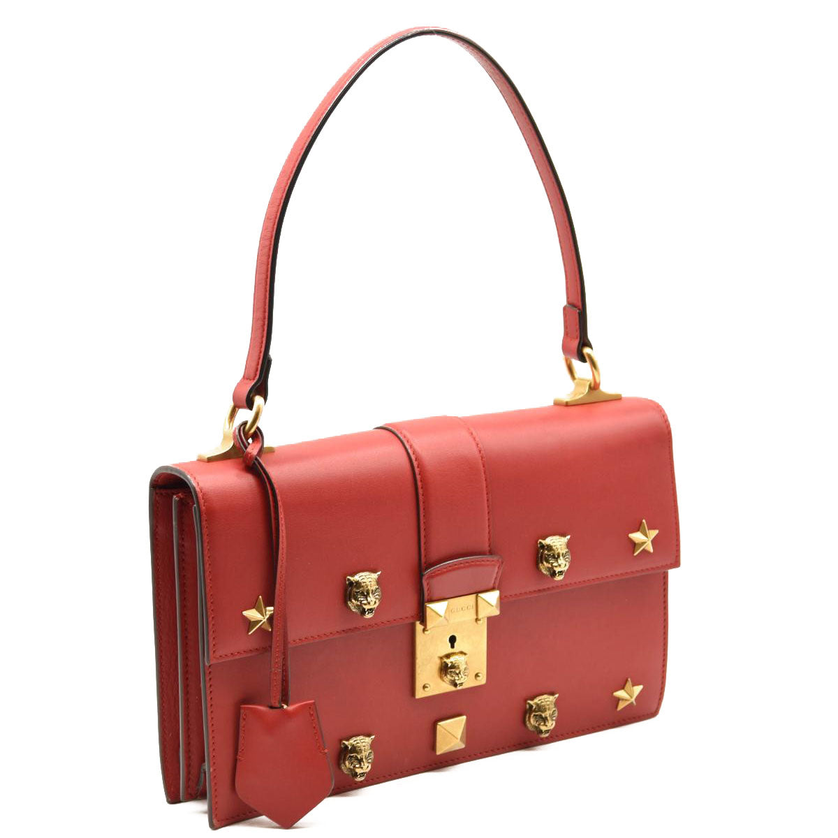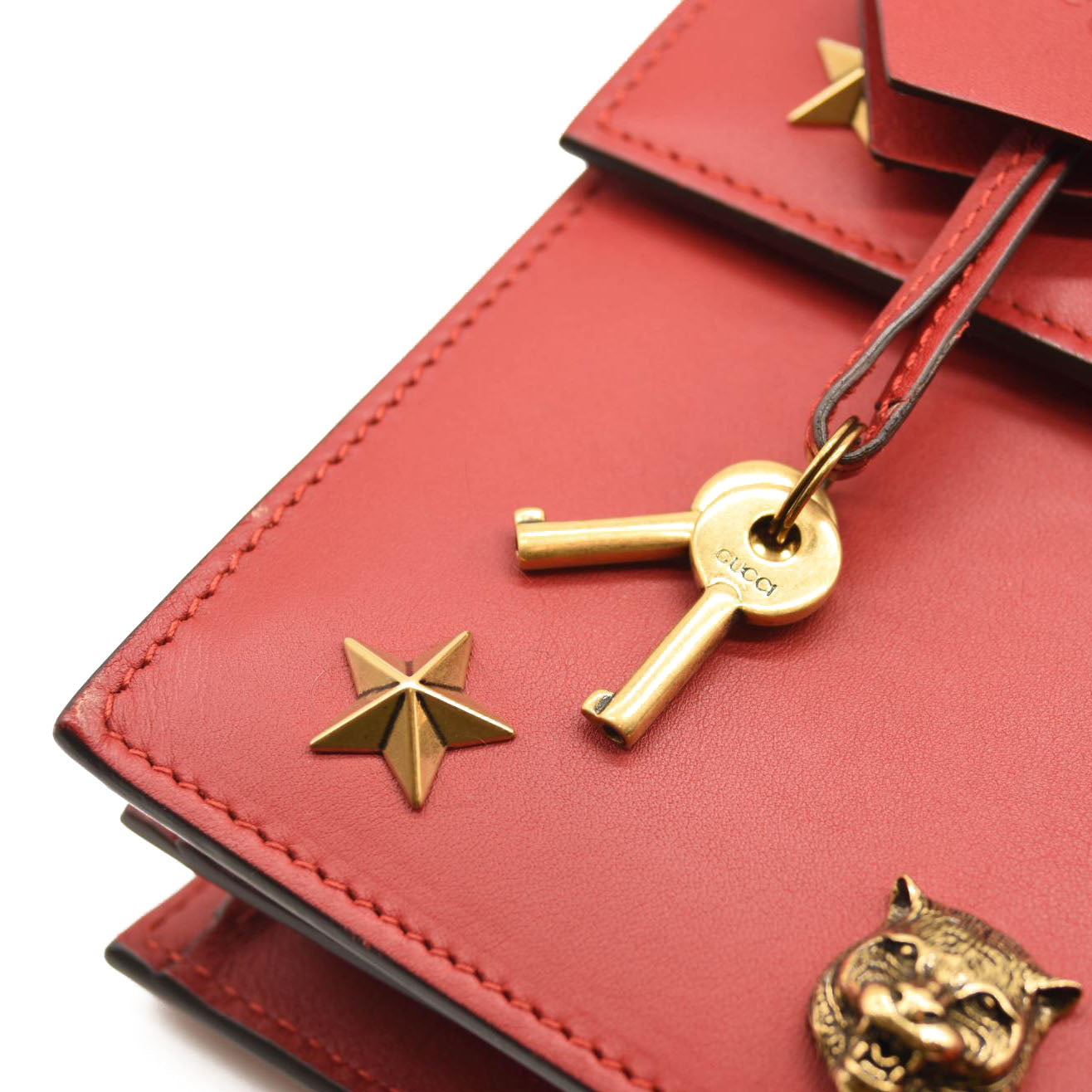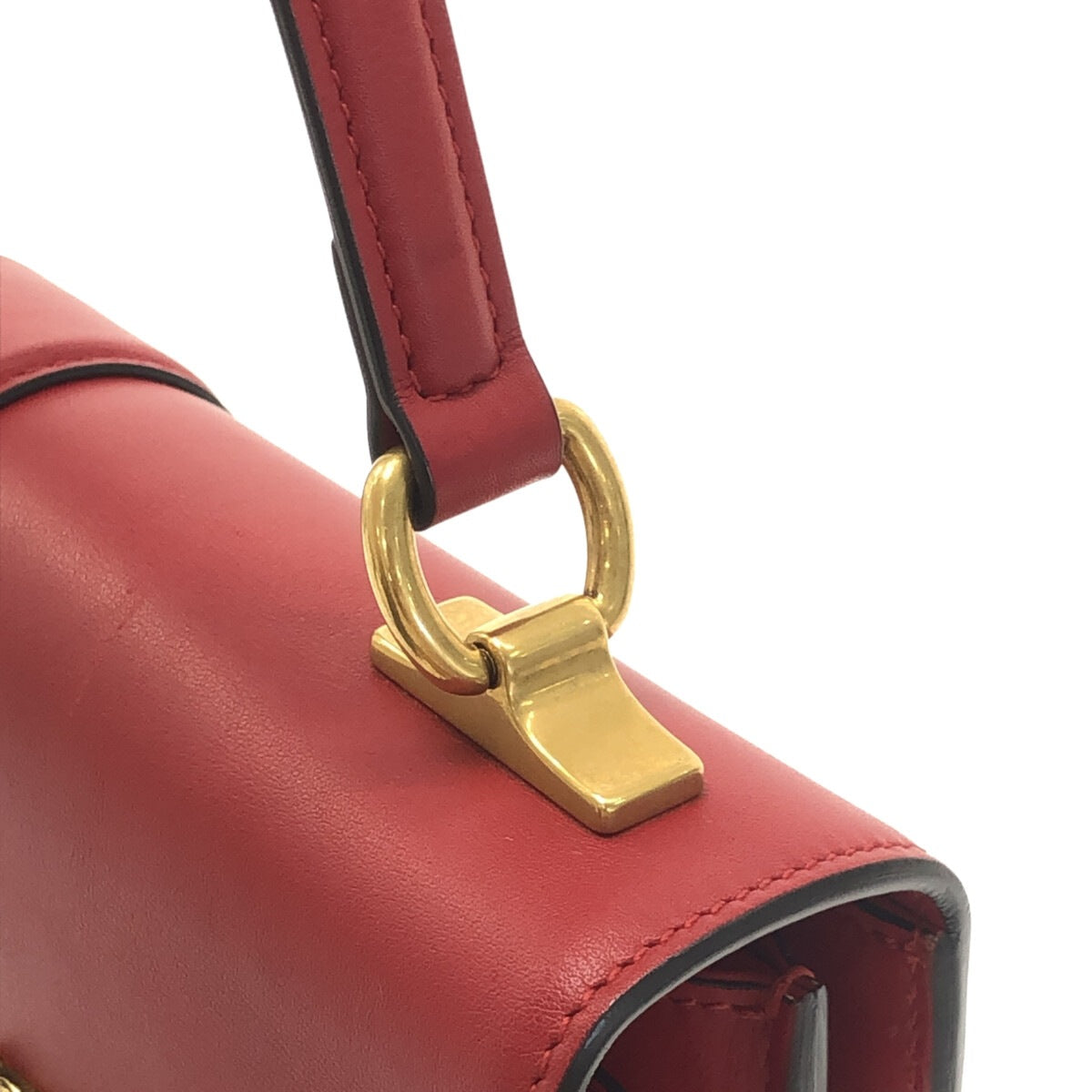 GUCCI Catlock Satchel Handbag Red Gold Leather