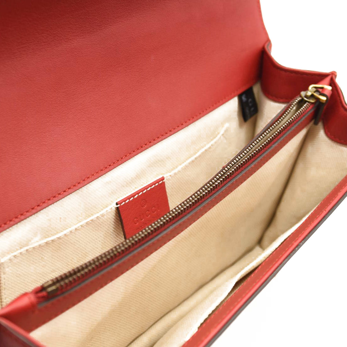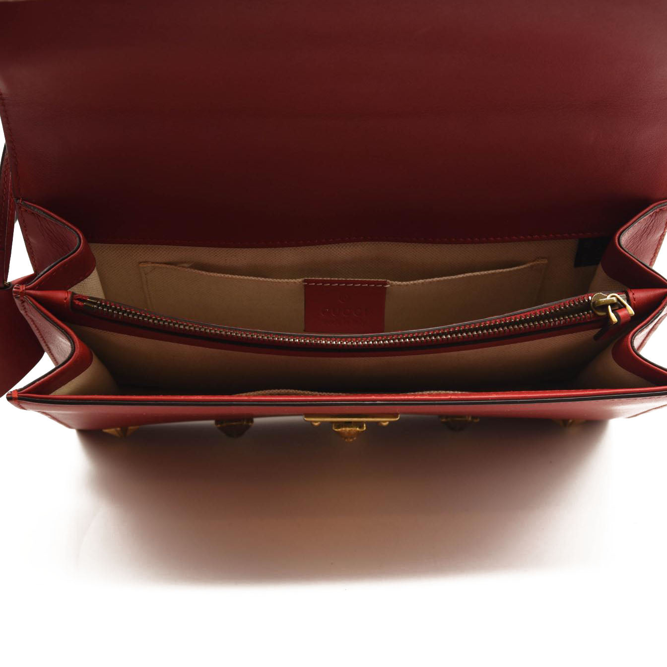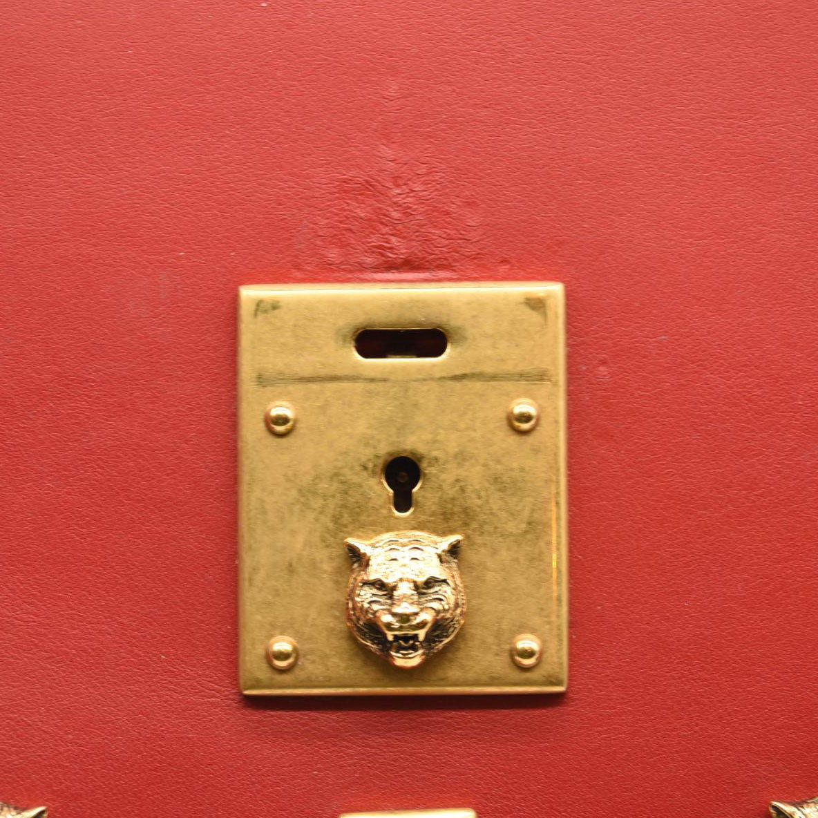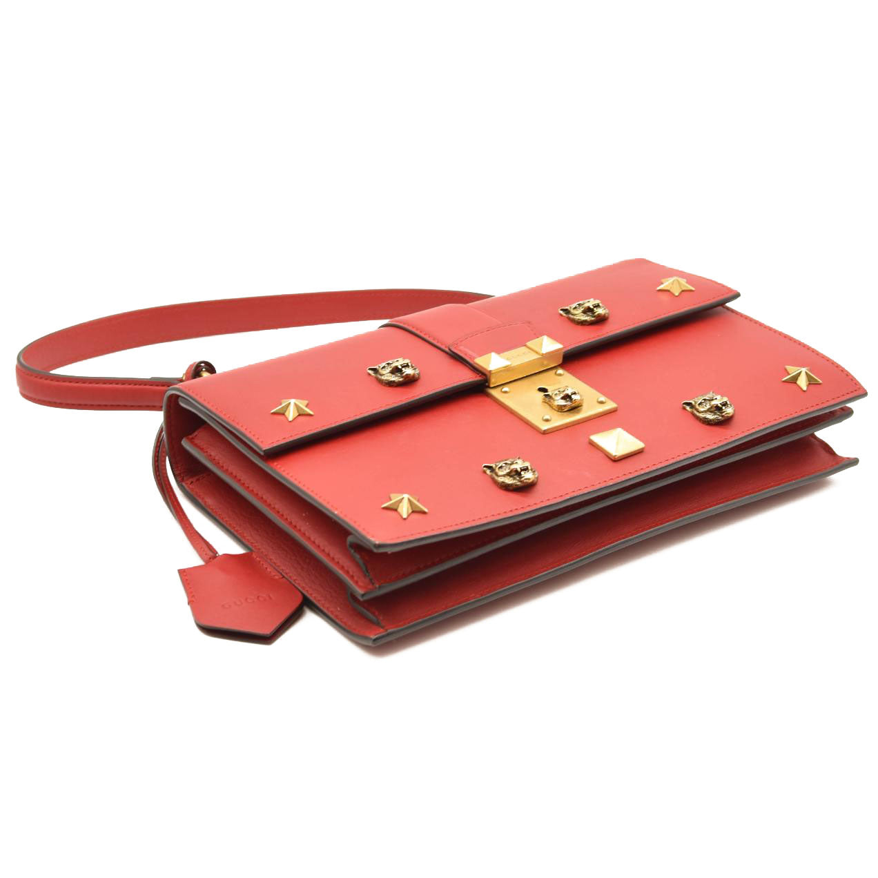 GUCCI Catlock Satchel Handbag Red Gold Leather