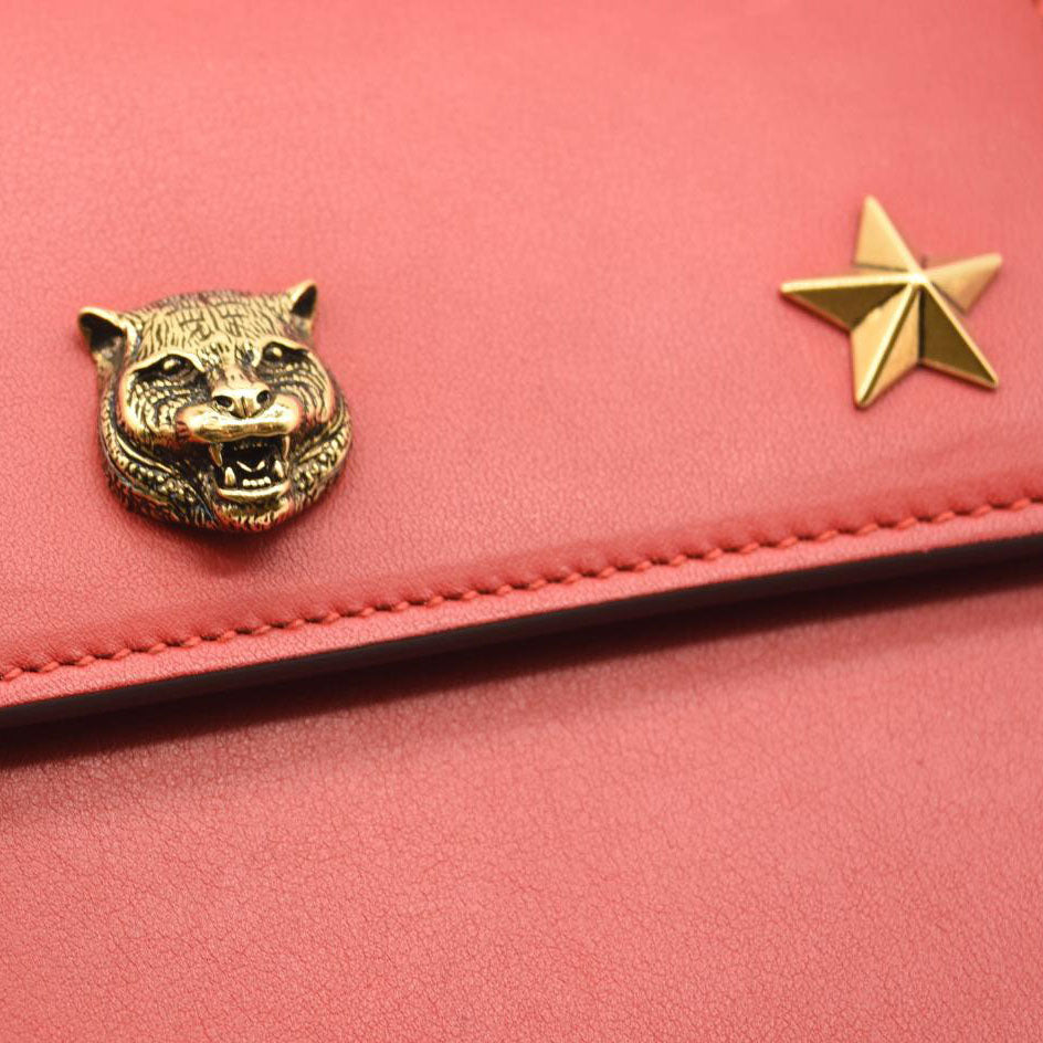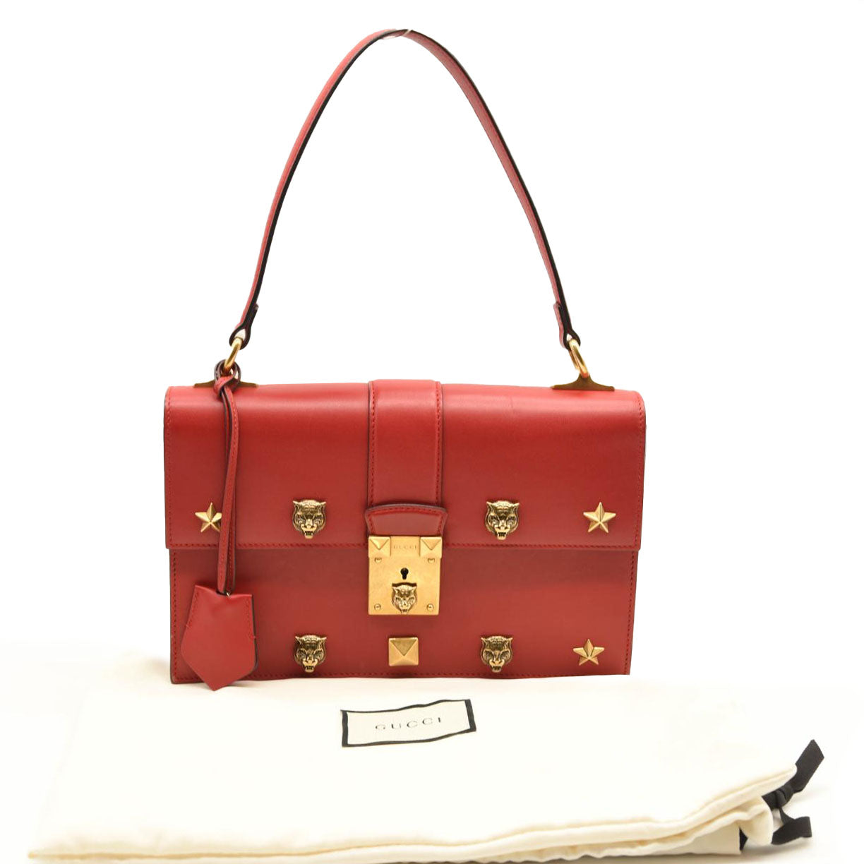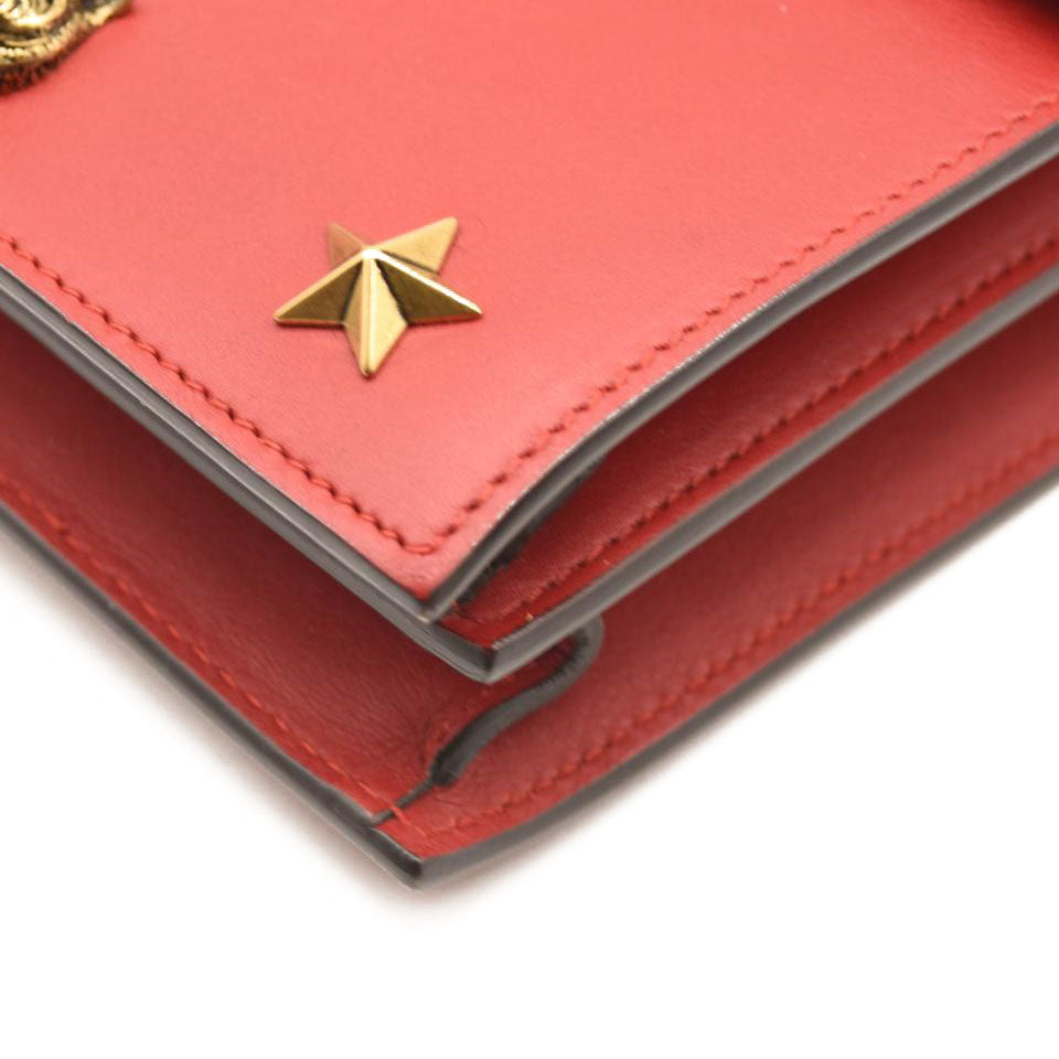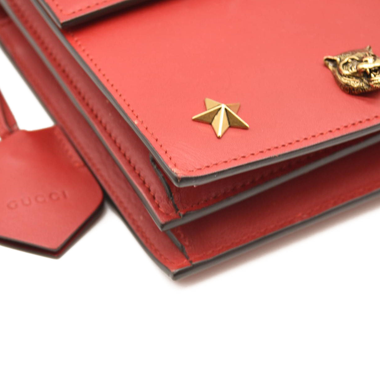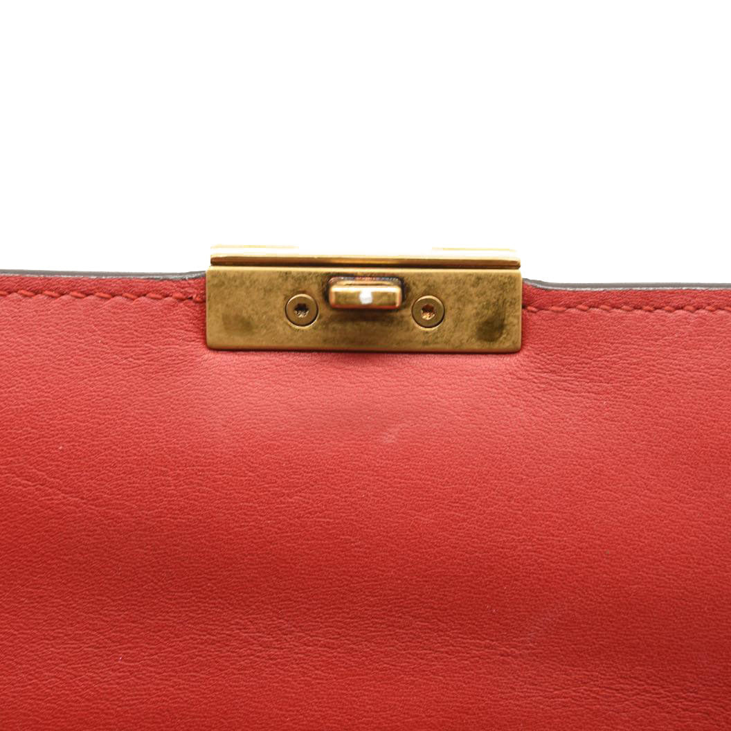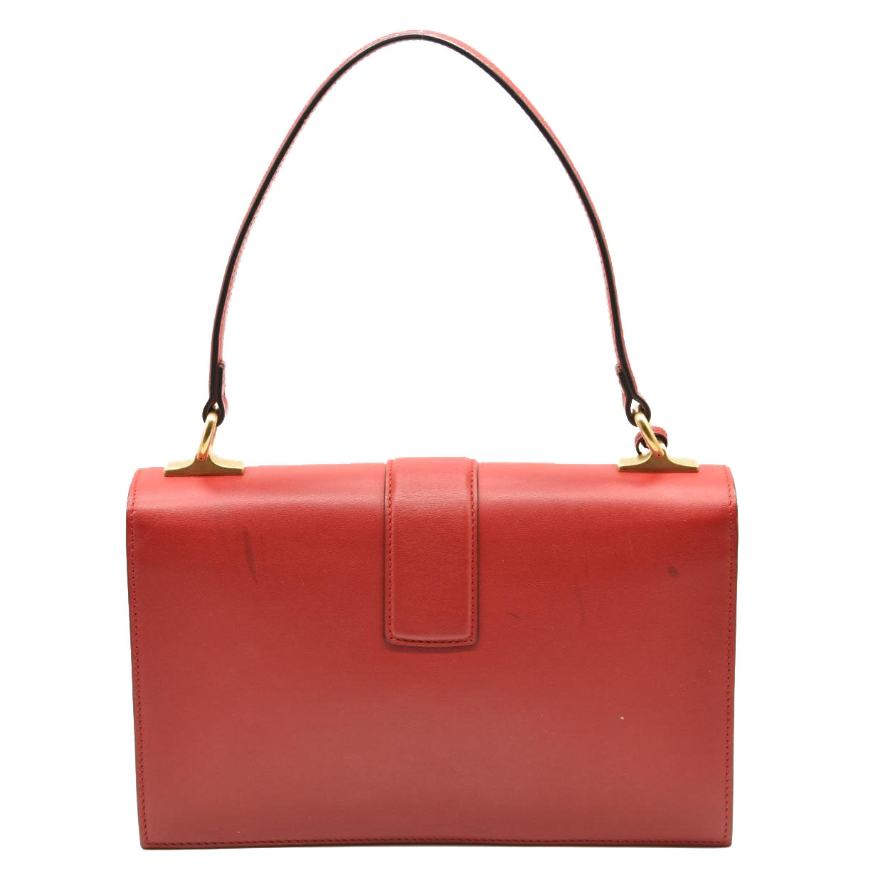 GUCCI Catlock Satchel Handbag Red Gold Leather