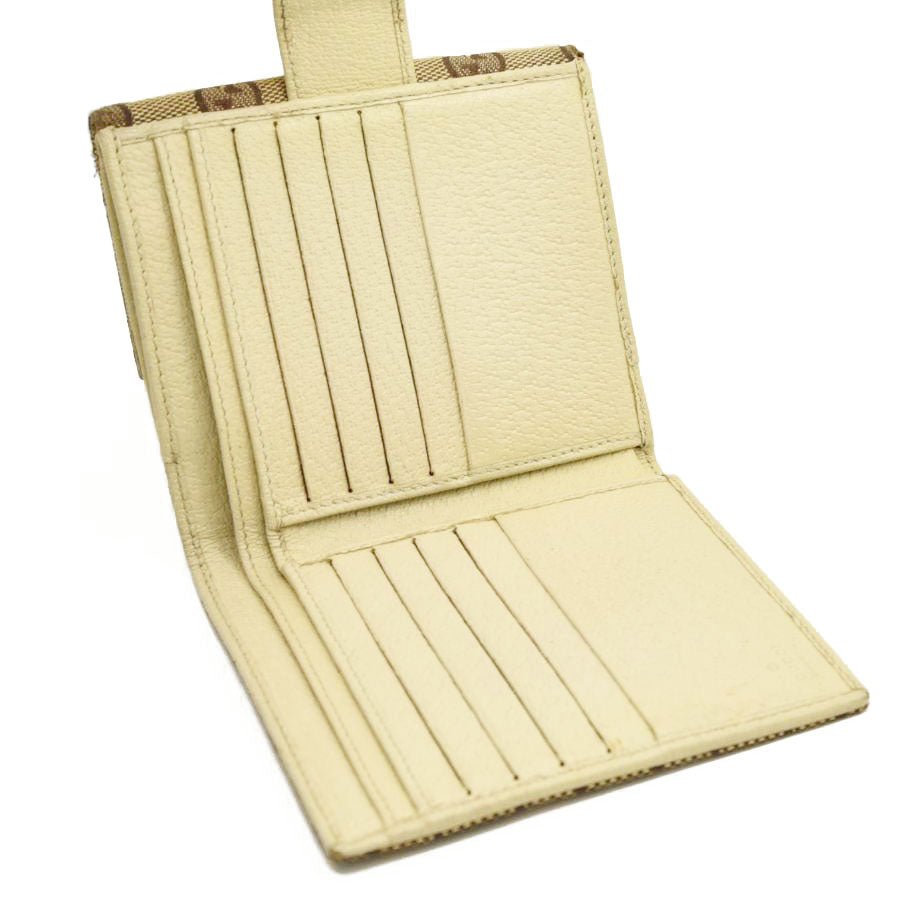 GUCCI GG Logo Canvas Leather Bifold Wallet Beige