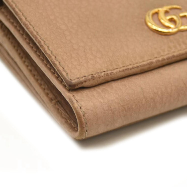 GUCCI GG Marmont Leather Compact Trifold Wallet Beige
