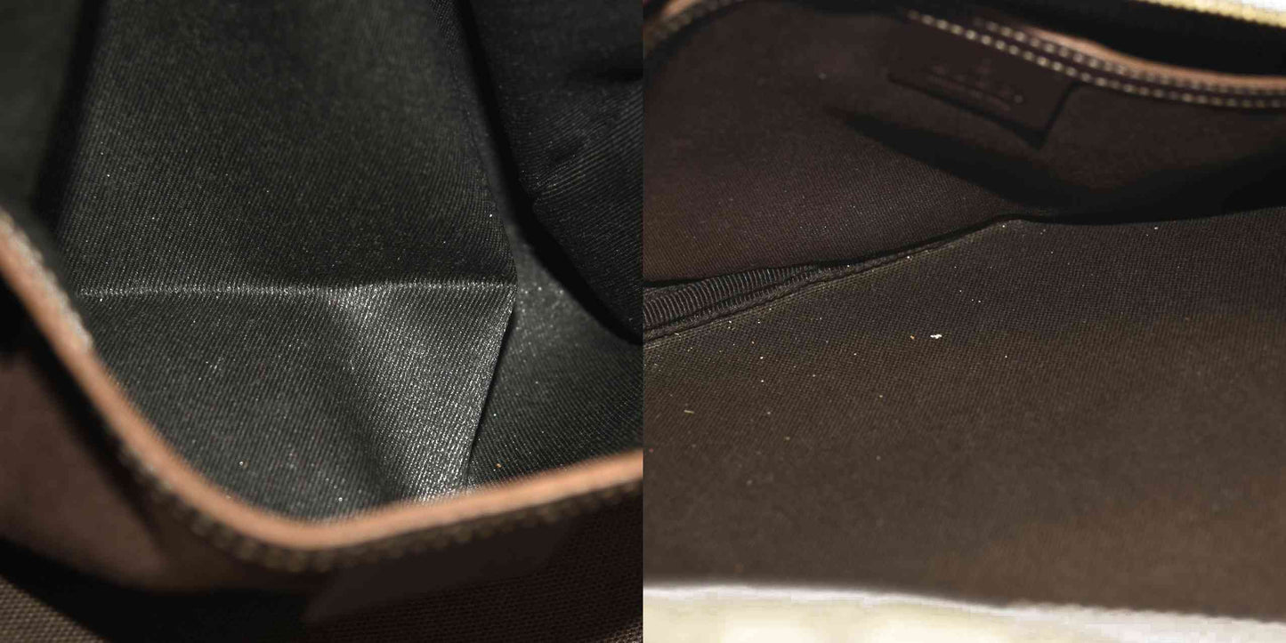 [Outside] overall : large scratches / slight dirt marks bottom : obvious rubbing on corners but not torn strap : obvious rubbing on corners main opening : obvious rubbing and slightly torn