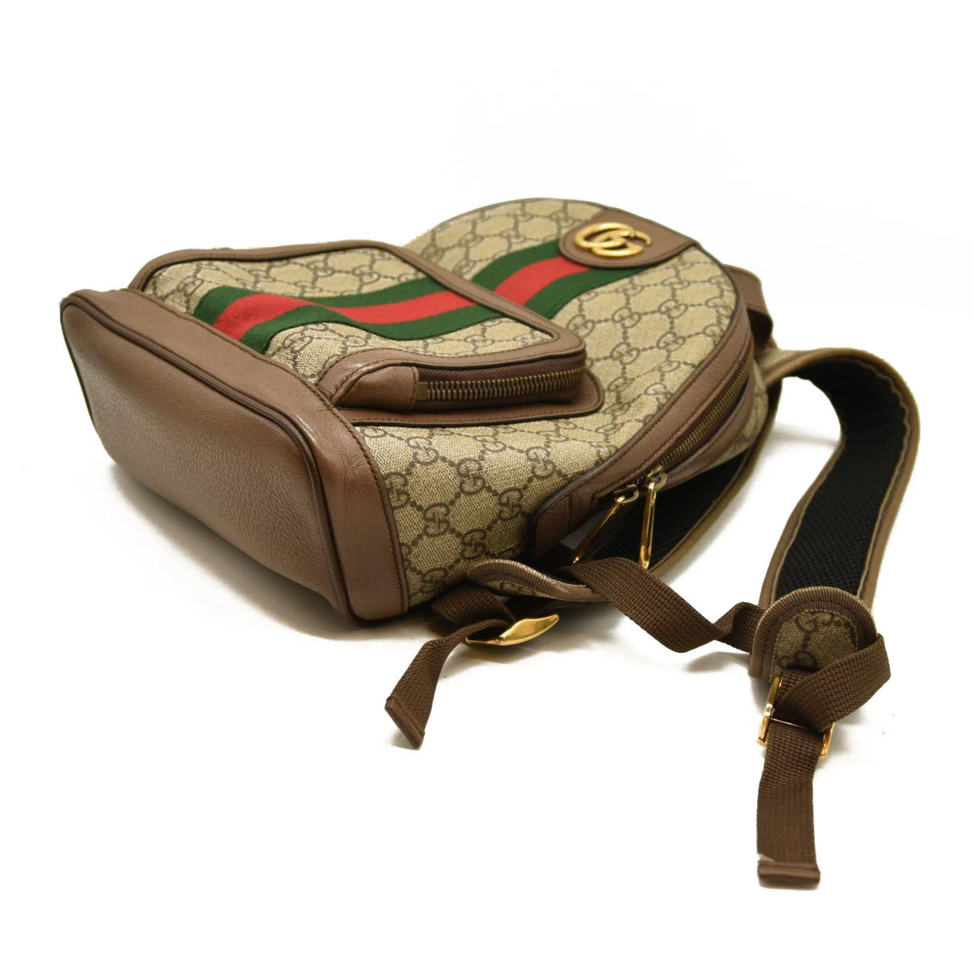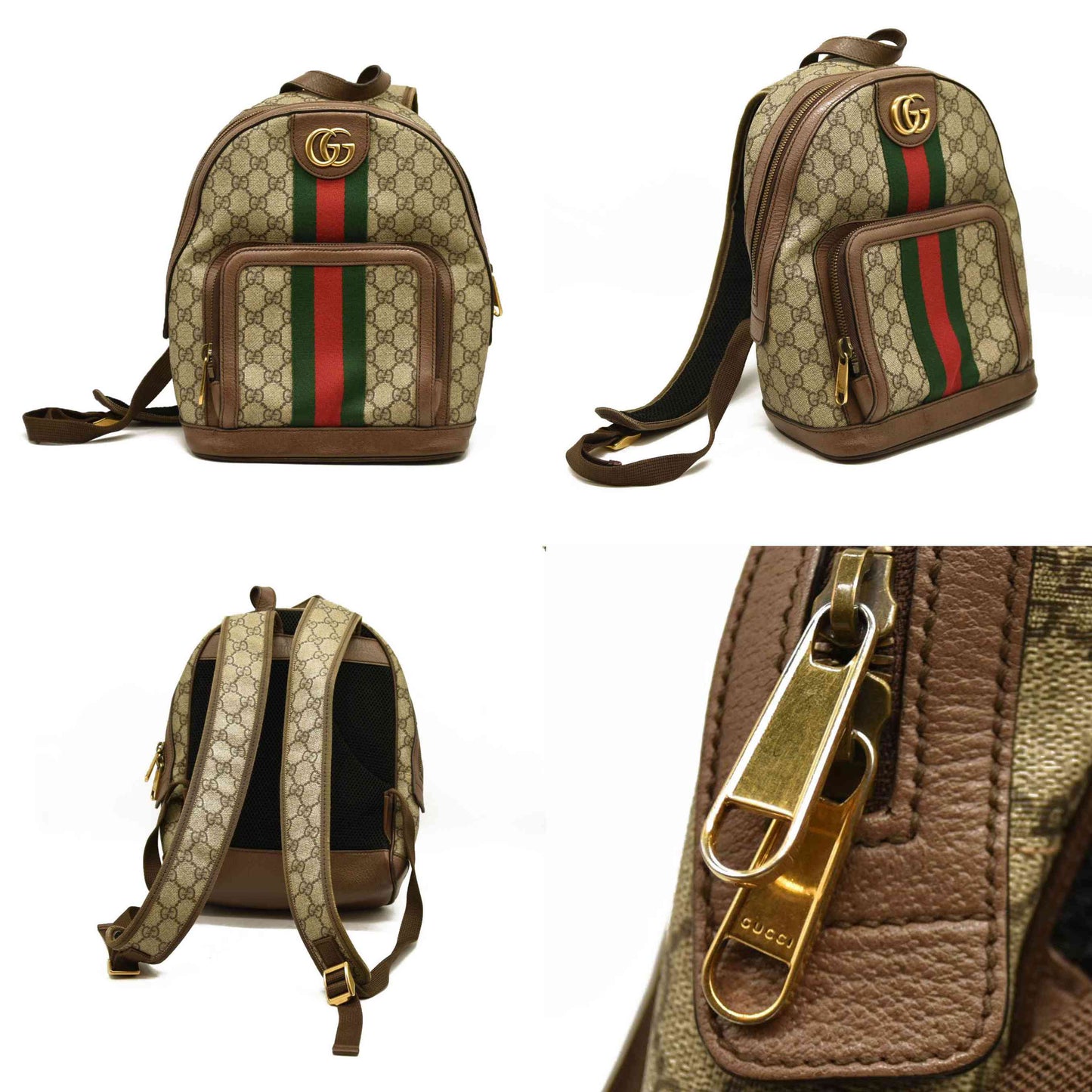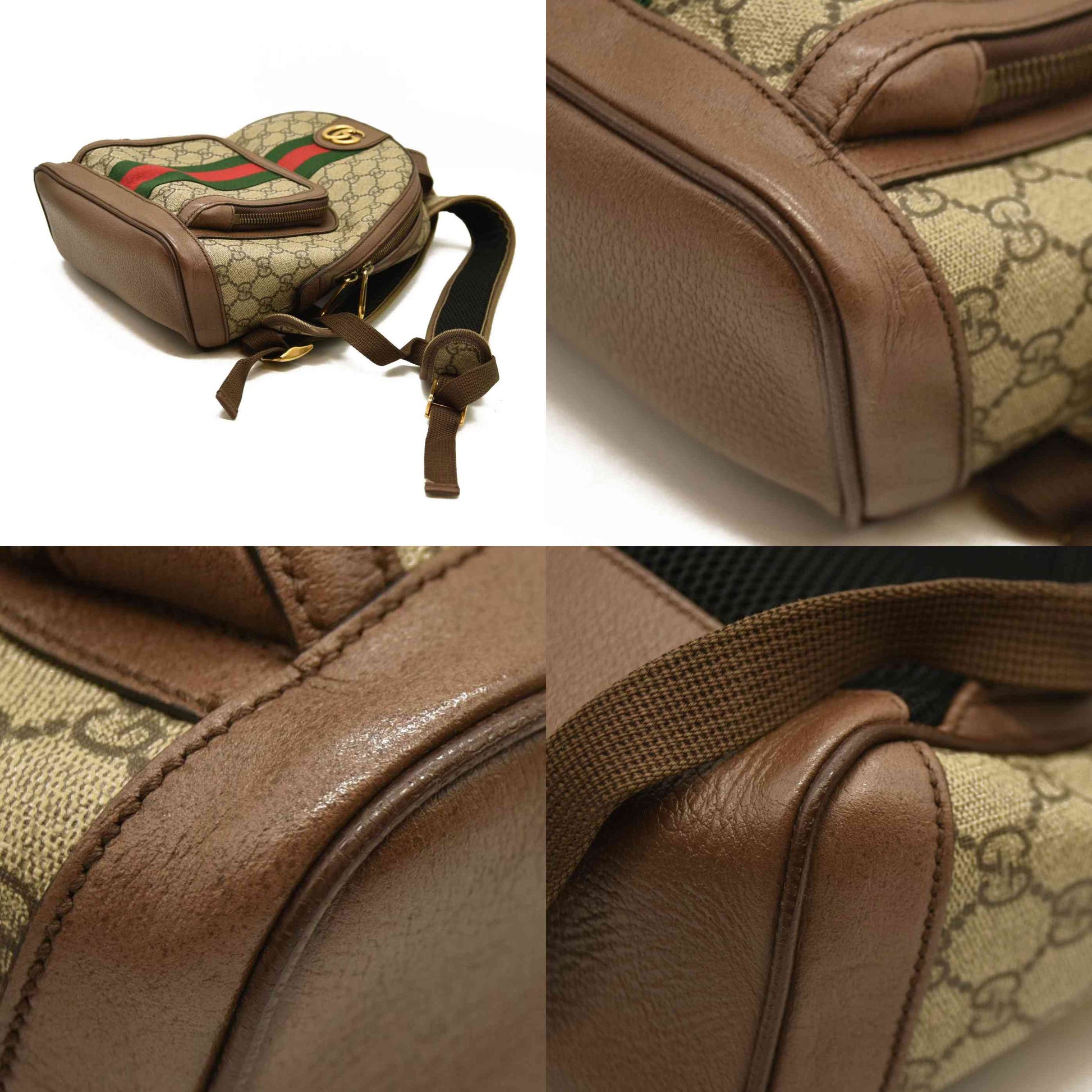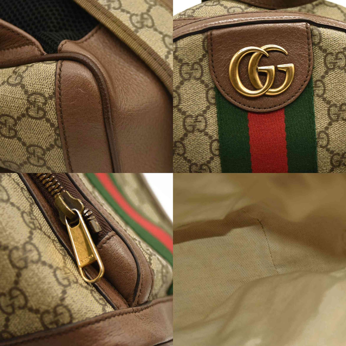 Gucci GG Supreme Monogram Calfskin Web Small Ophidia Day Backpack Beige Ebony New Acero