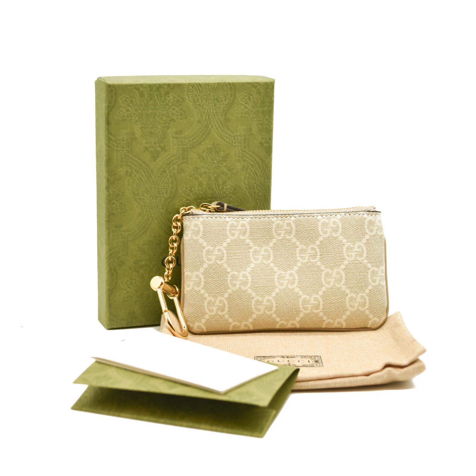 Gucci GG Supreme Monogram Key Case Ecru Grigio