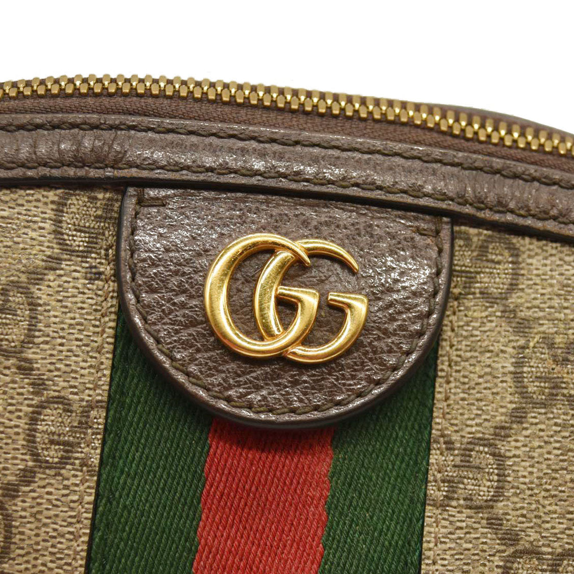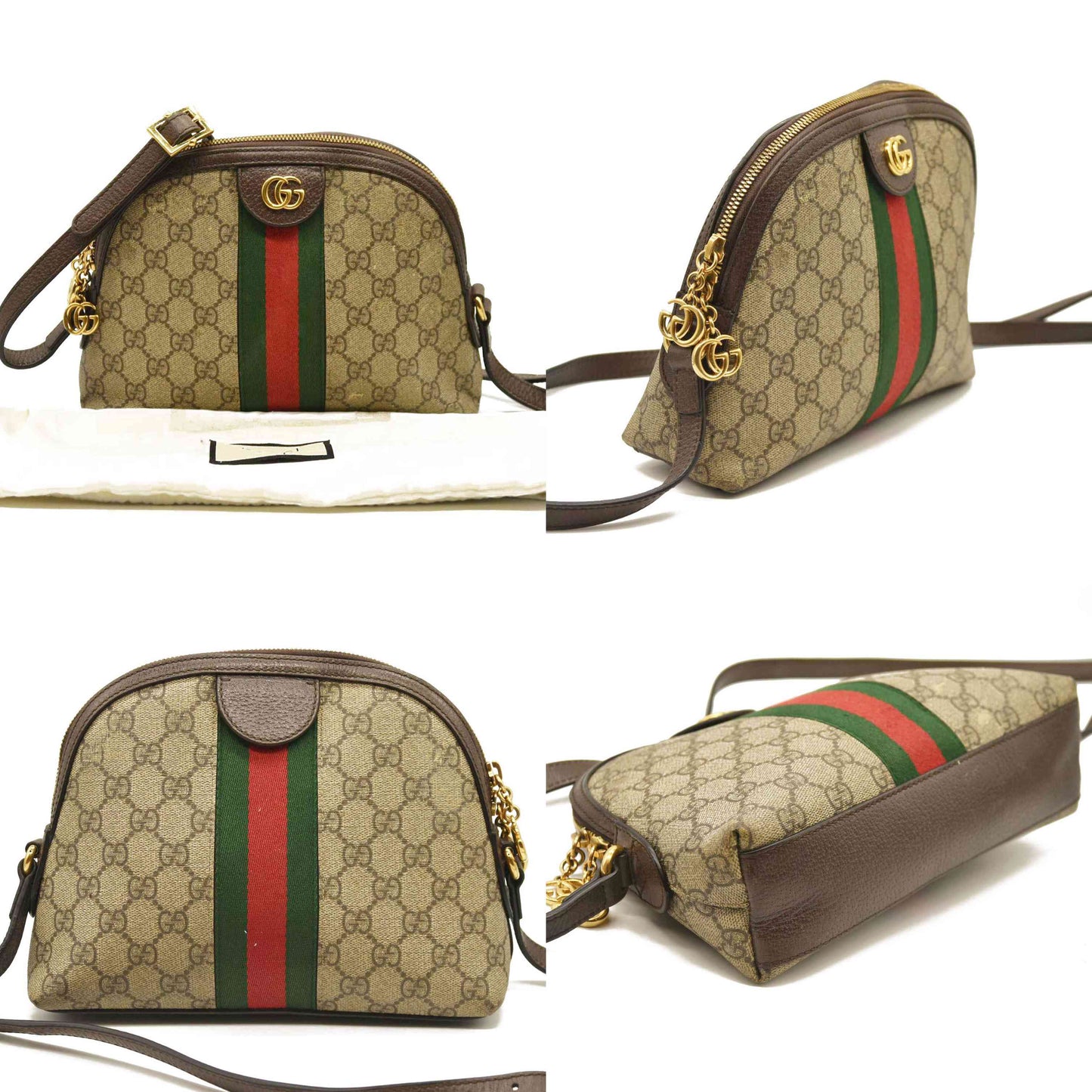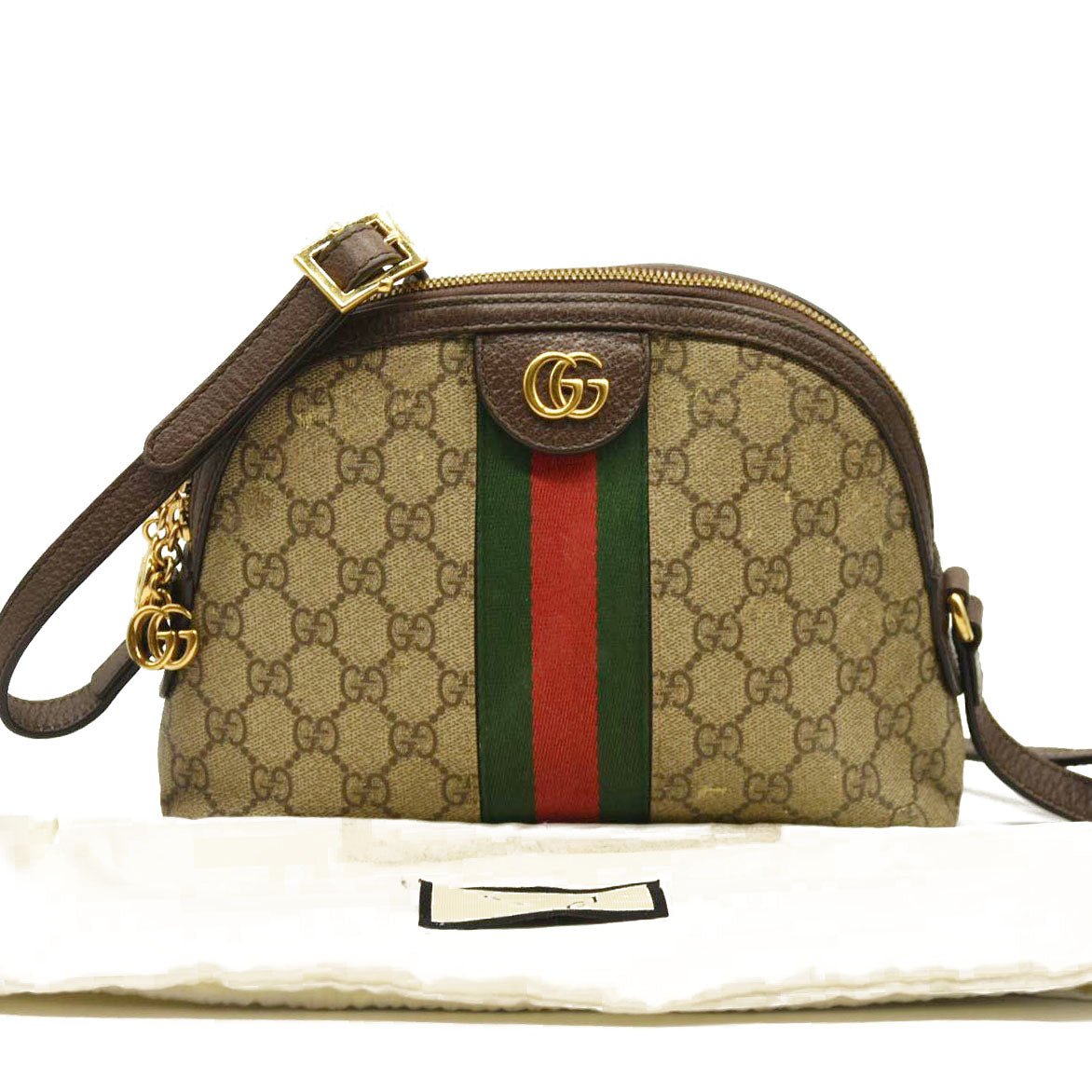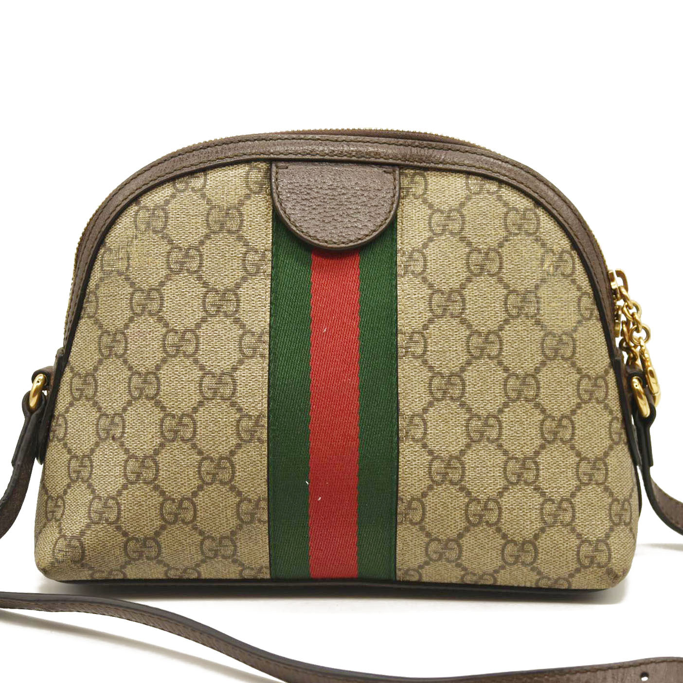 Gucci GG Supreme Monogram Textured Dollar Calfskin Web Small Ophidia Dome Shoulder Bag Beige Ebony New Acero