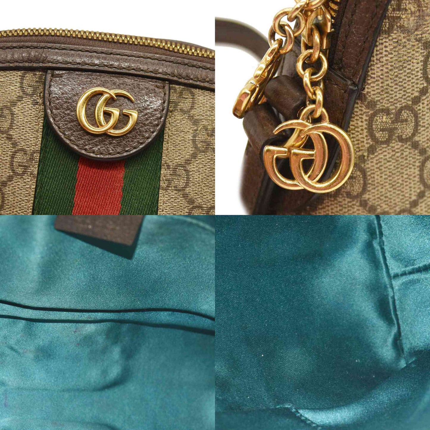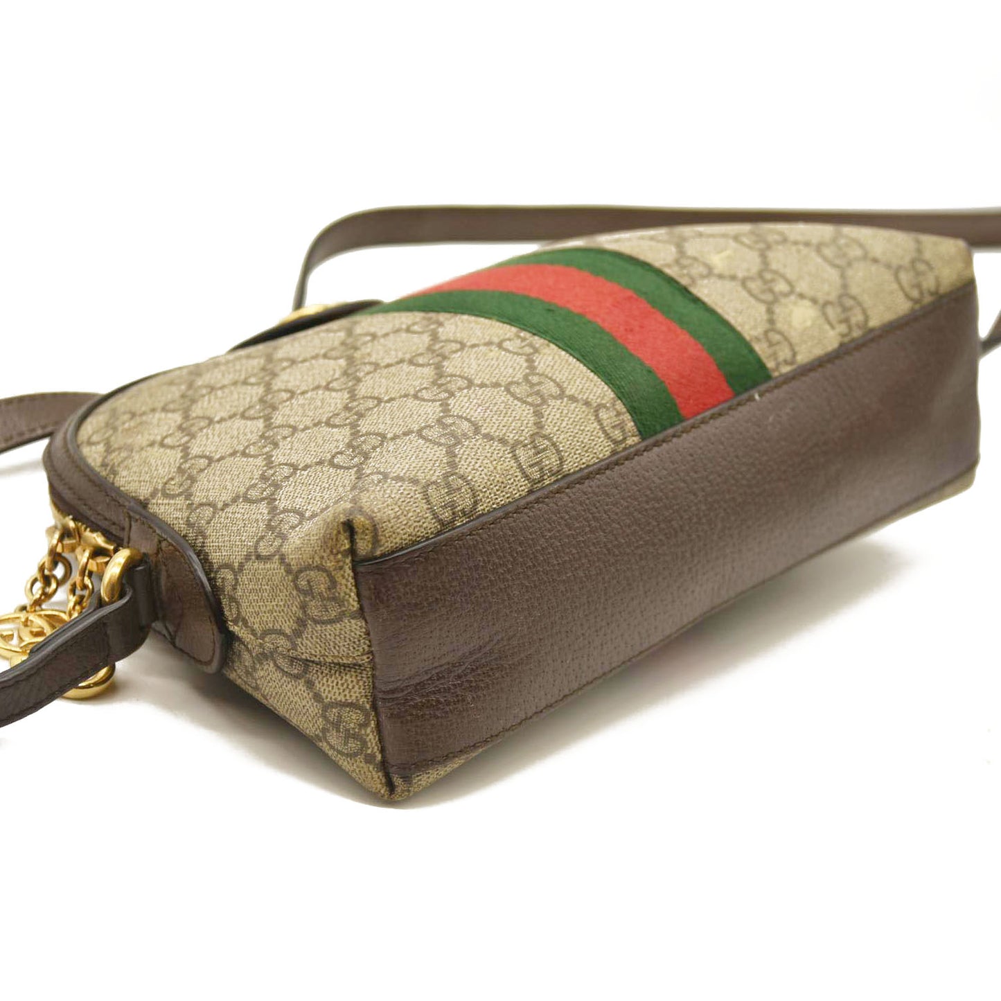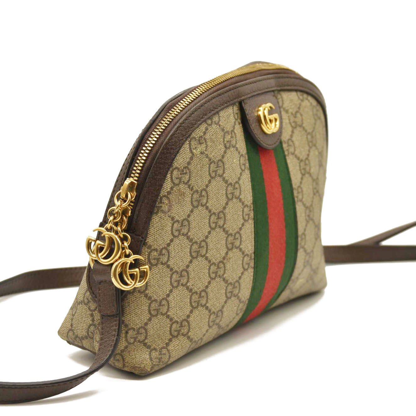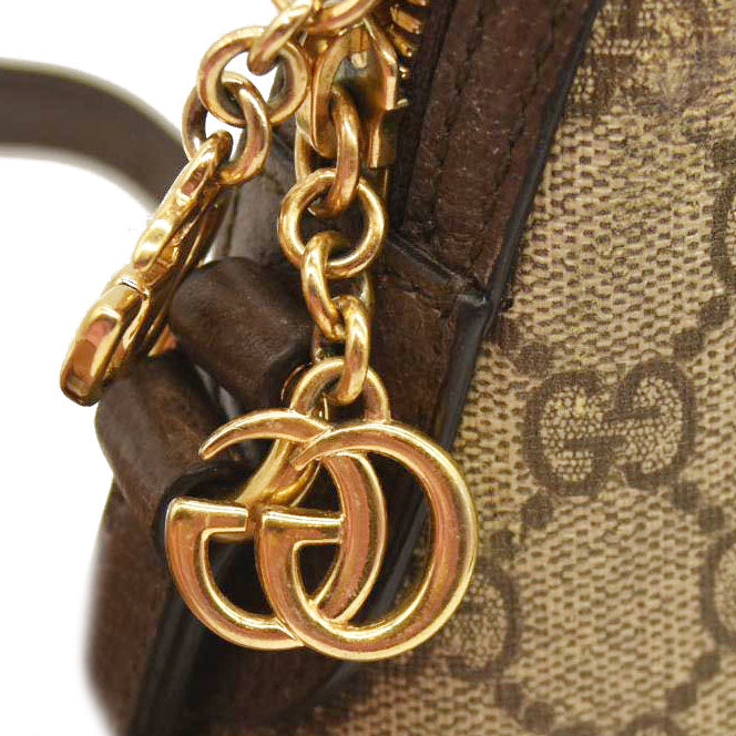 Gucci GG Supreme Monogram Textured Dollar Calfskin Web Small Ophidia Dome Shoulder Bag Beige Ebony New Acero