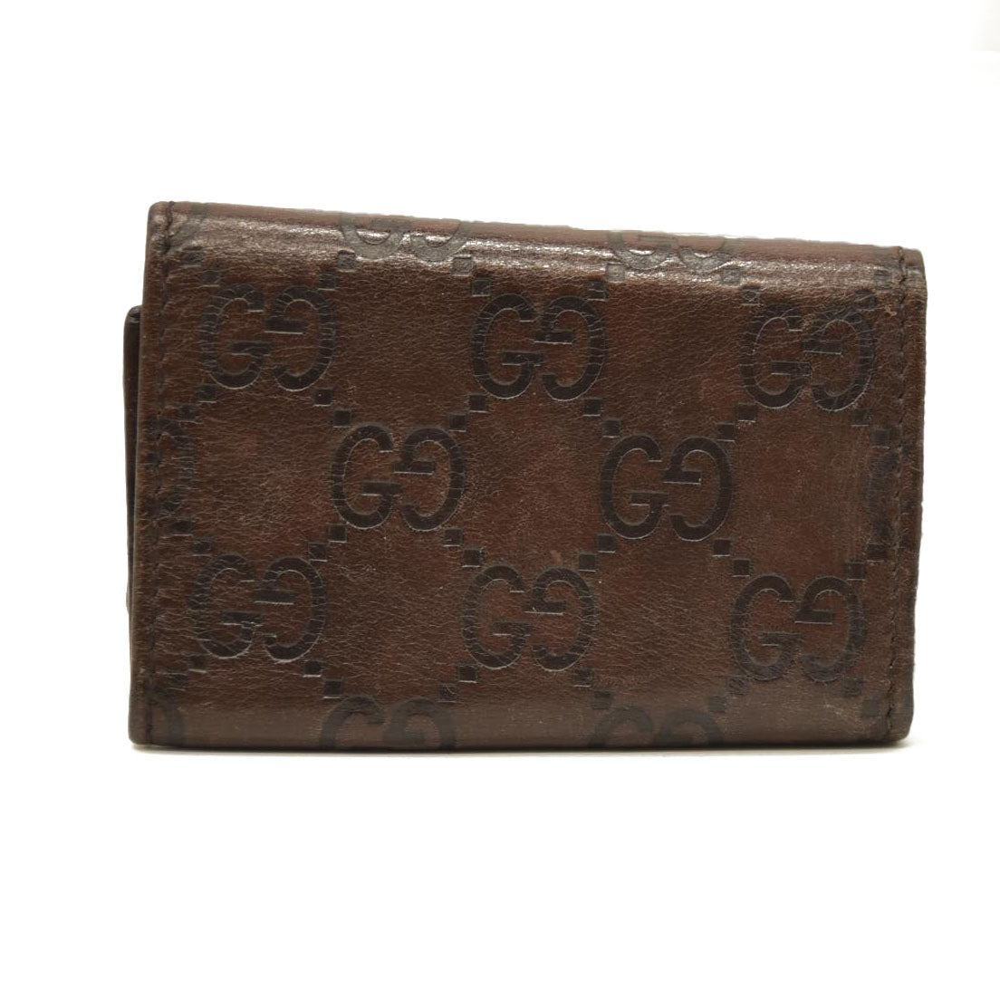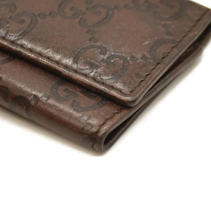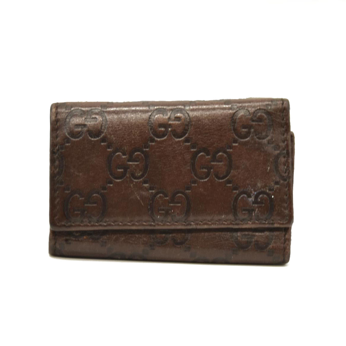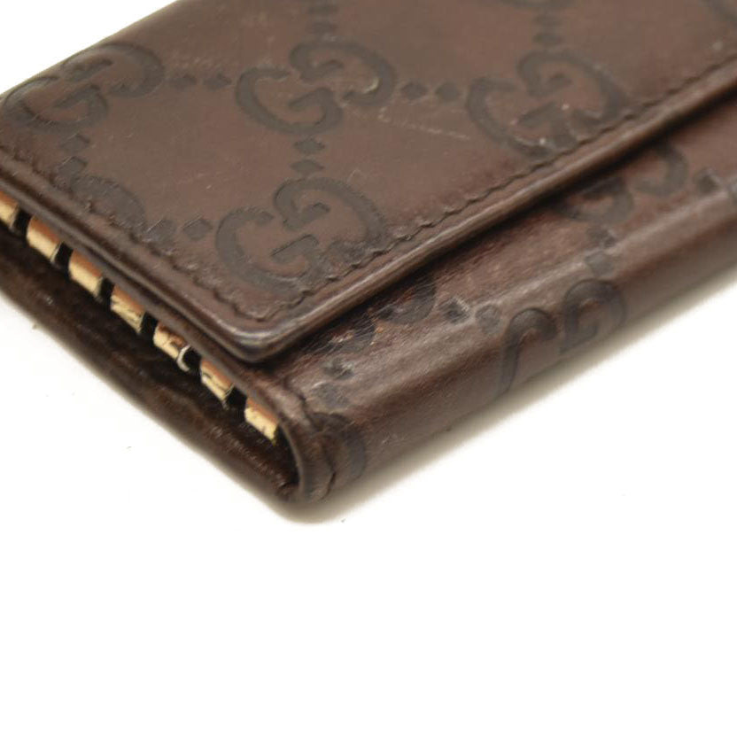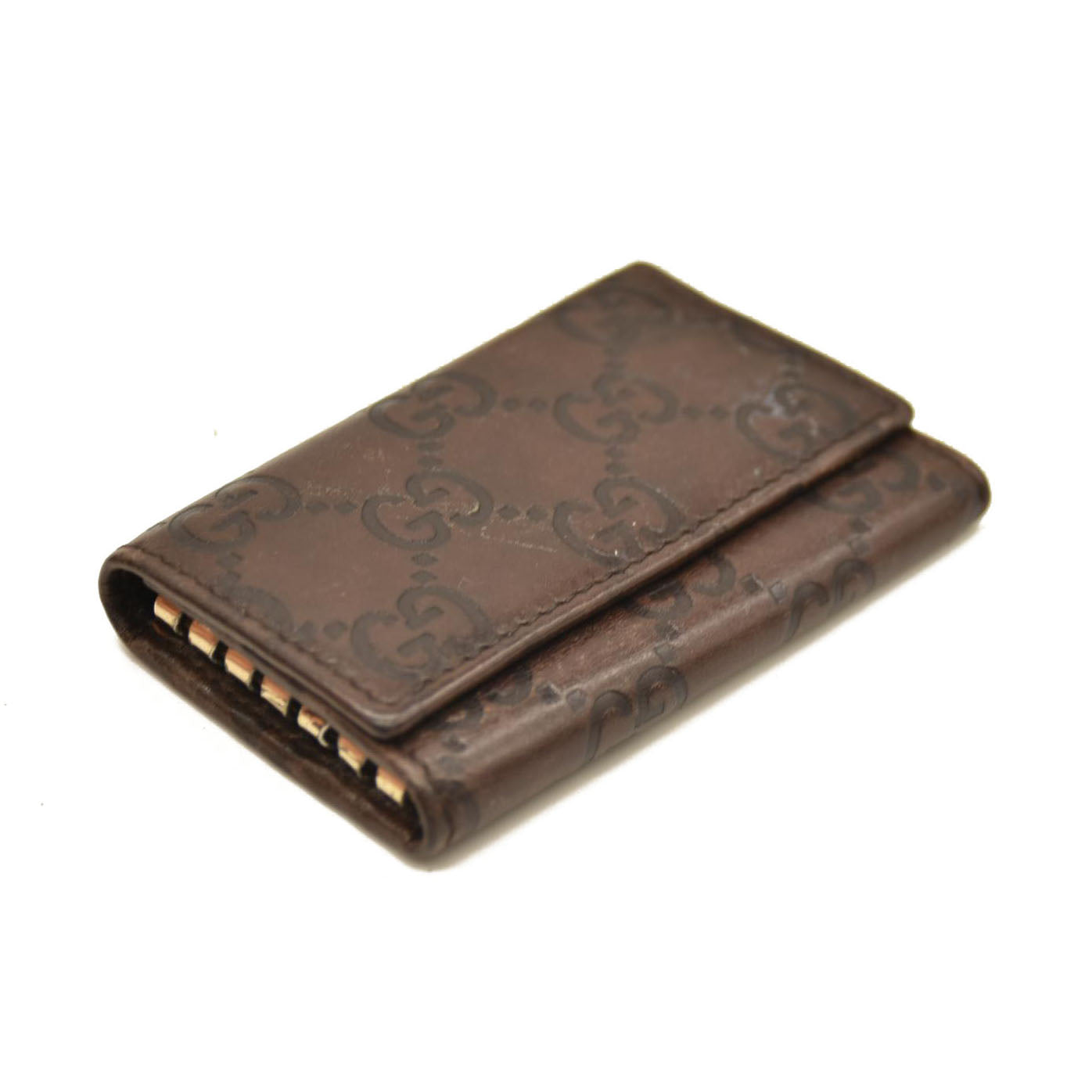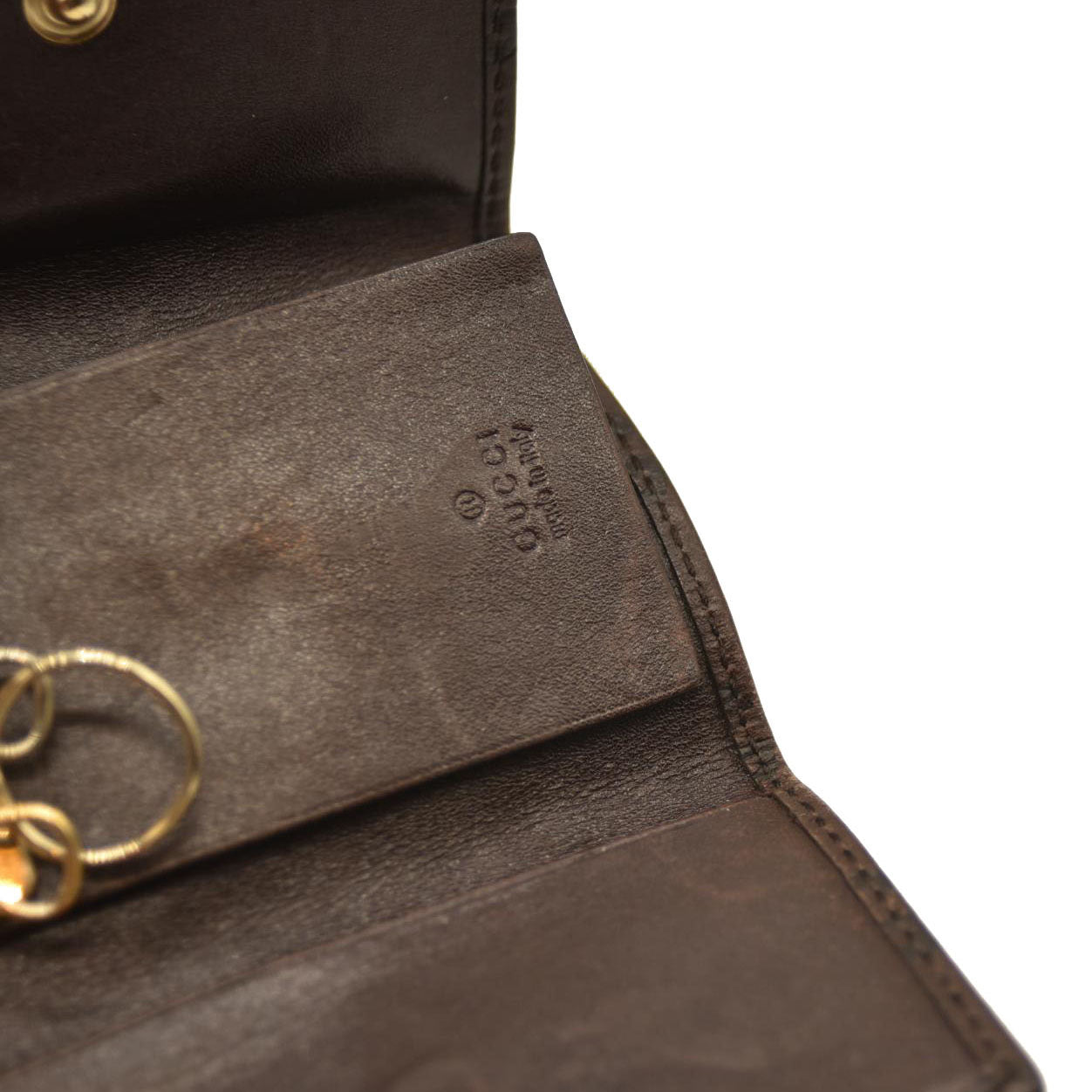This is an authentic GUCCI Guccissima 6 Key Holder Case in Brown. This case is crafted of brown Guccissima embossed leather. The hidden snap opens to a brown leather interior with six key rings and small pockets.